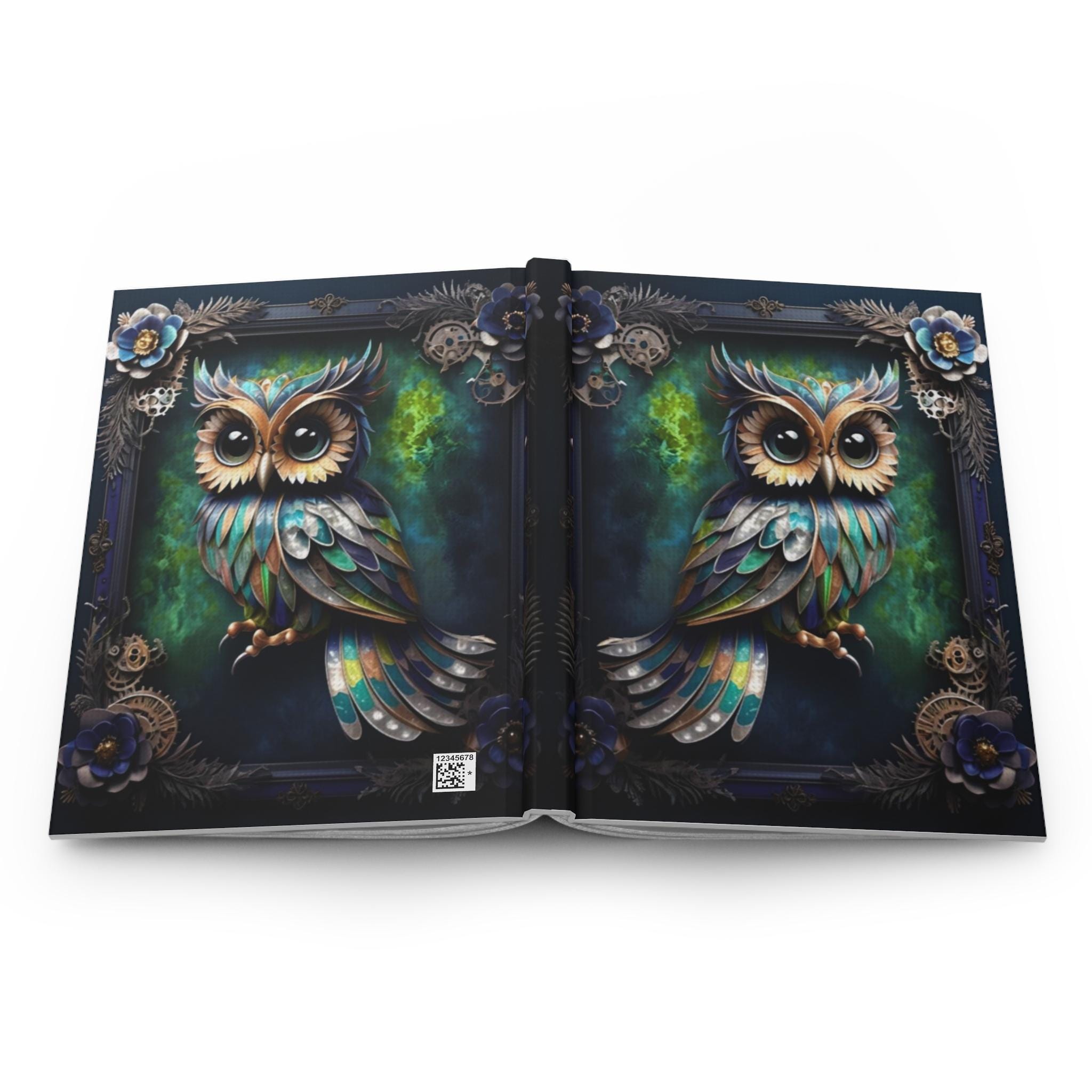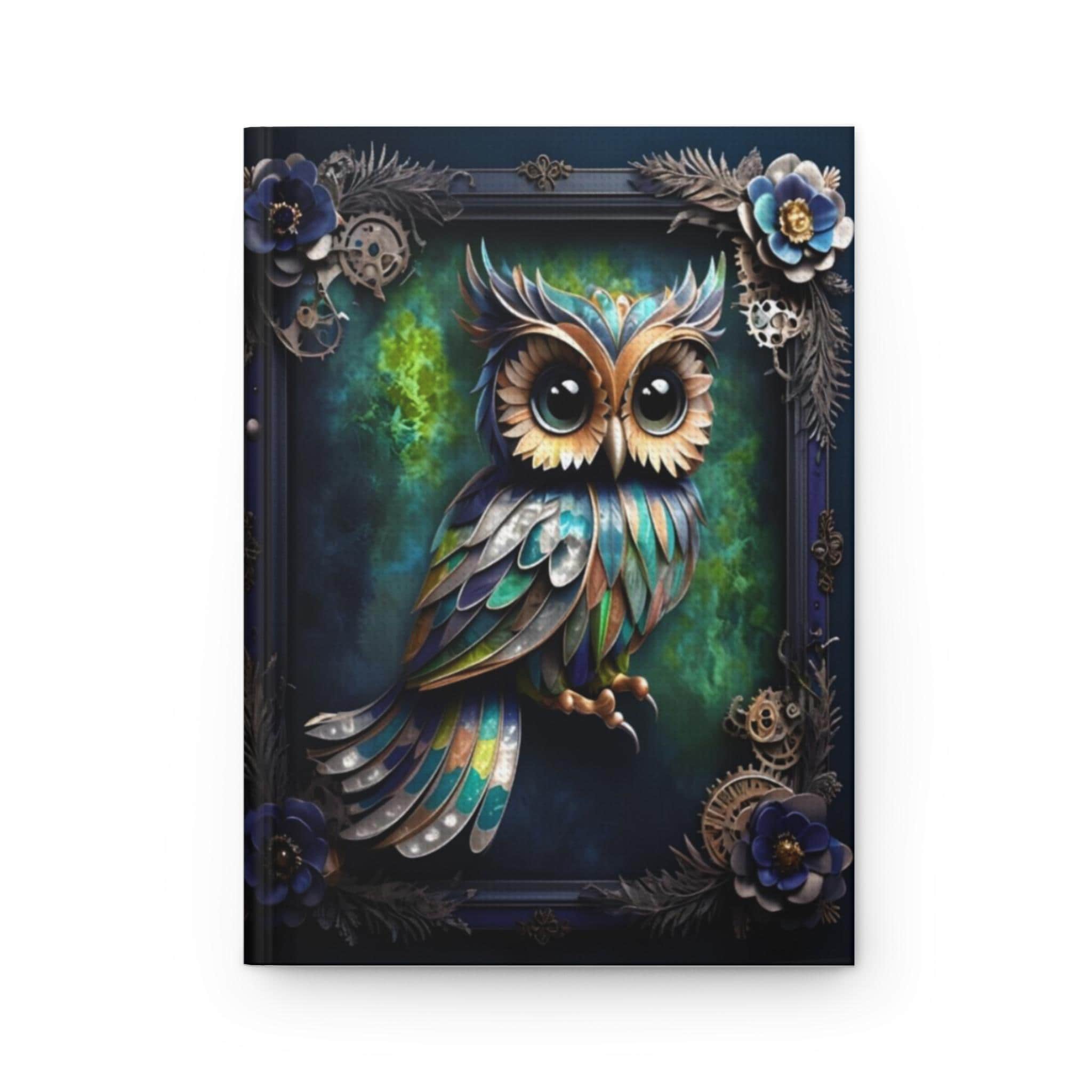 A vibrant steampunk Owl journal with a matte laminated cover, vibrant colors, perforated pages, casewrap binding, and a full wraparound print. Perfect for creative souls looking to jot down their thoughts and ideas in style. Ideal for writers, artists, students, and anyone who loves unique designs. Great for birthdays, holidays, and everyday use.