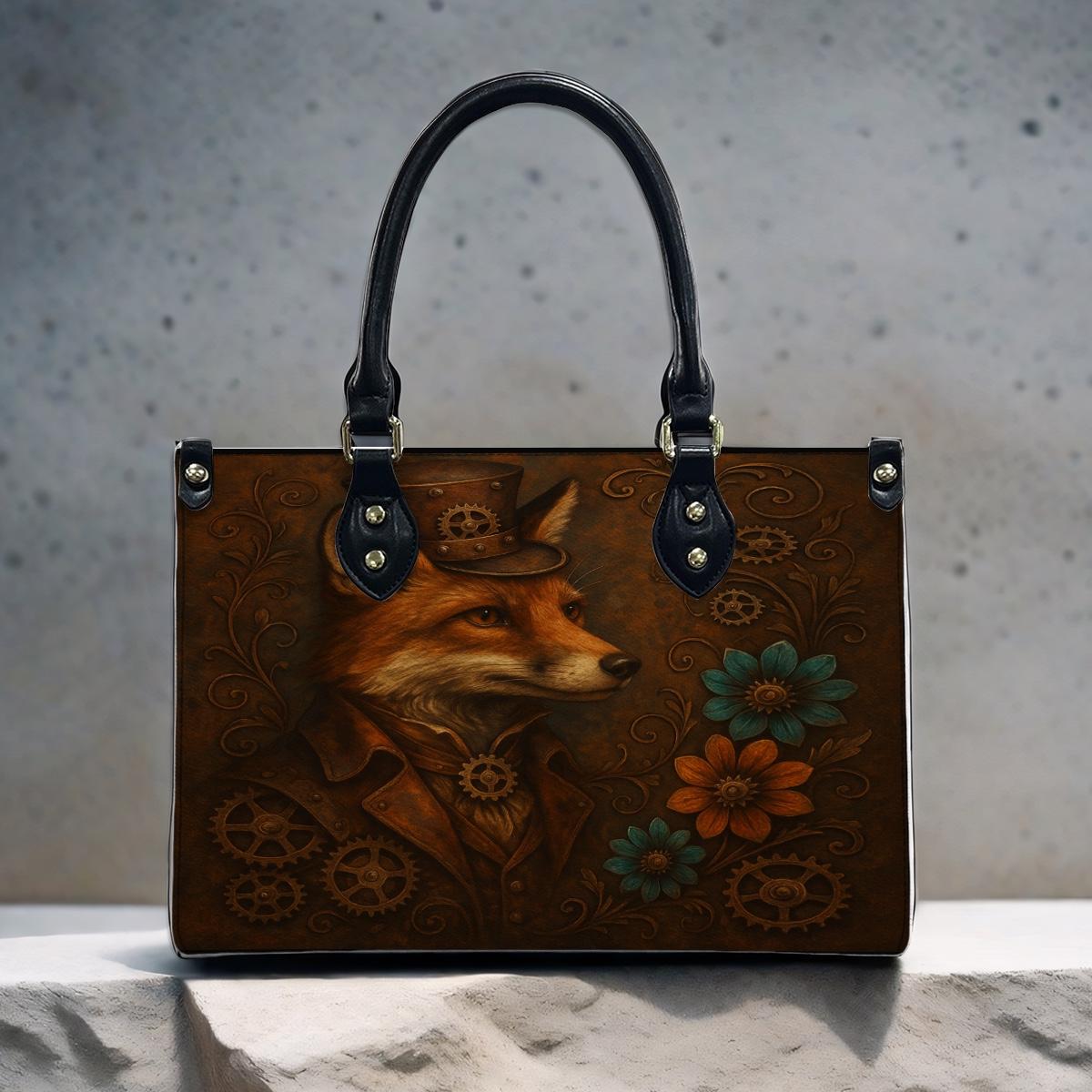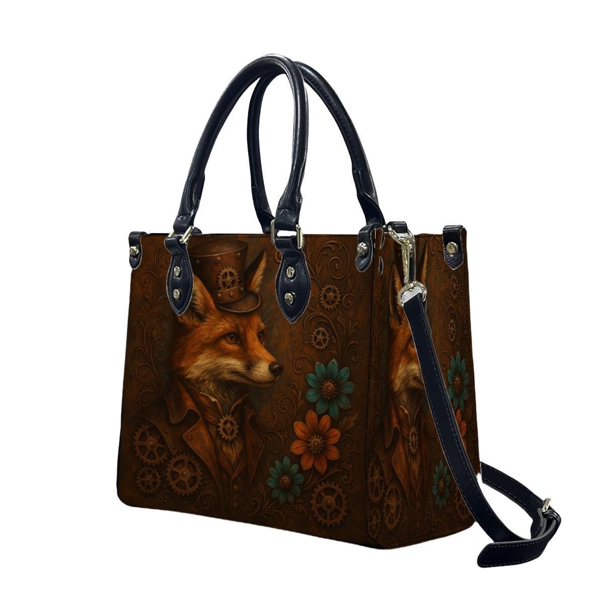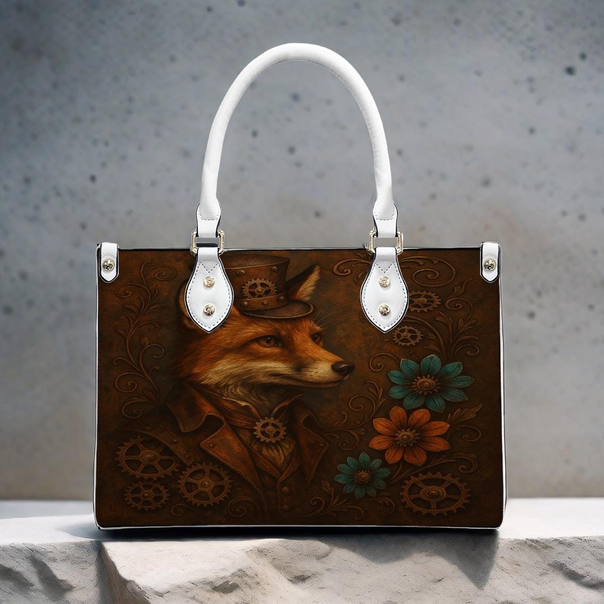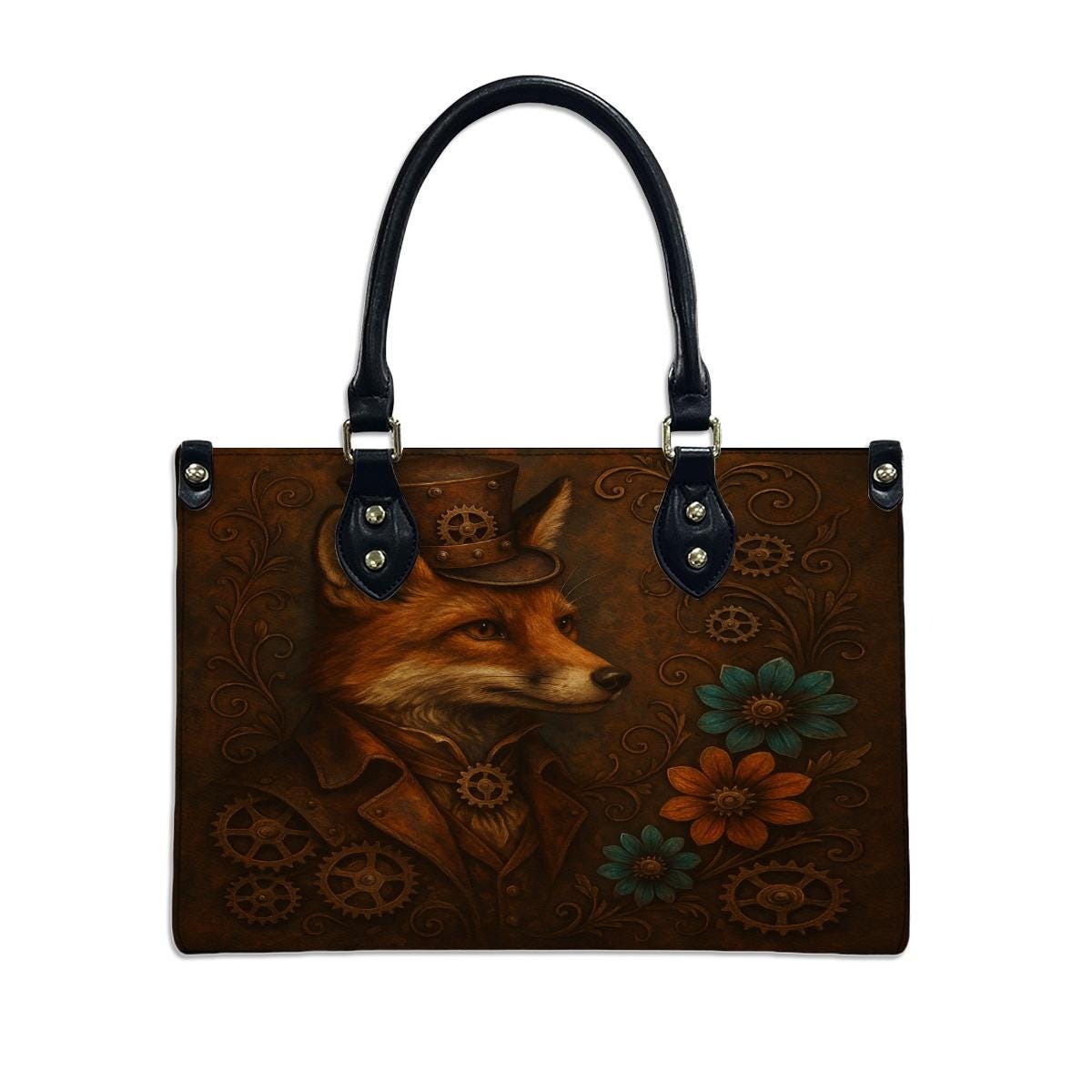 π Steampunk Fox Leather Handbag β PU Tote Bag β Crossbody Option β Vintage SteadfastDay Design