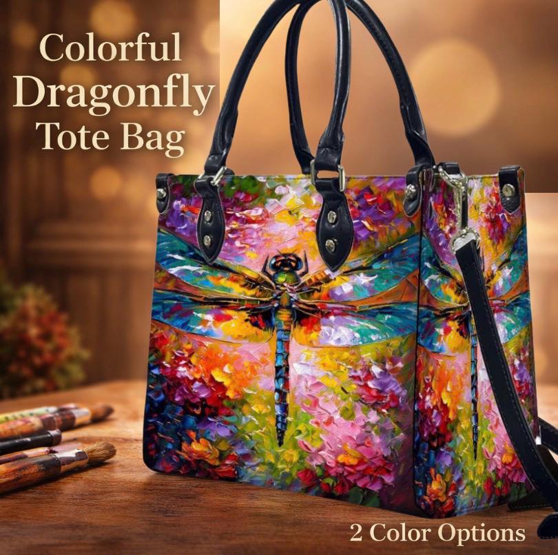 π Colorful Dragonfly Leather Handbag β Fantasy Art Tote β PU Leather Crossbody β Original SteadfastDay Design