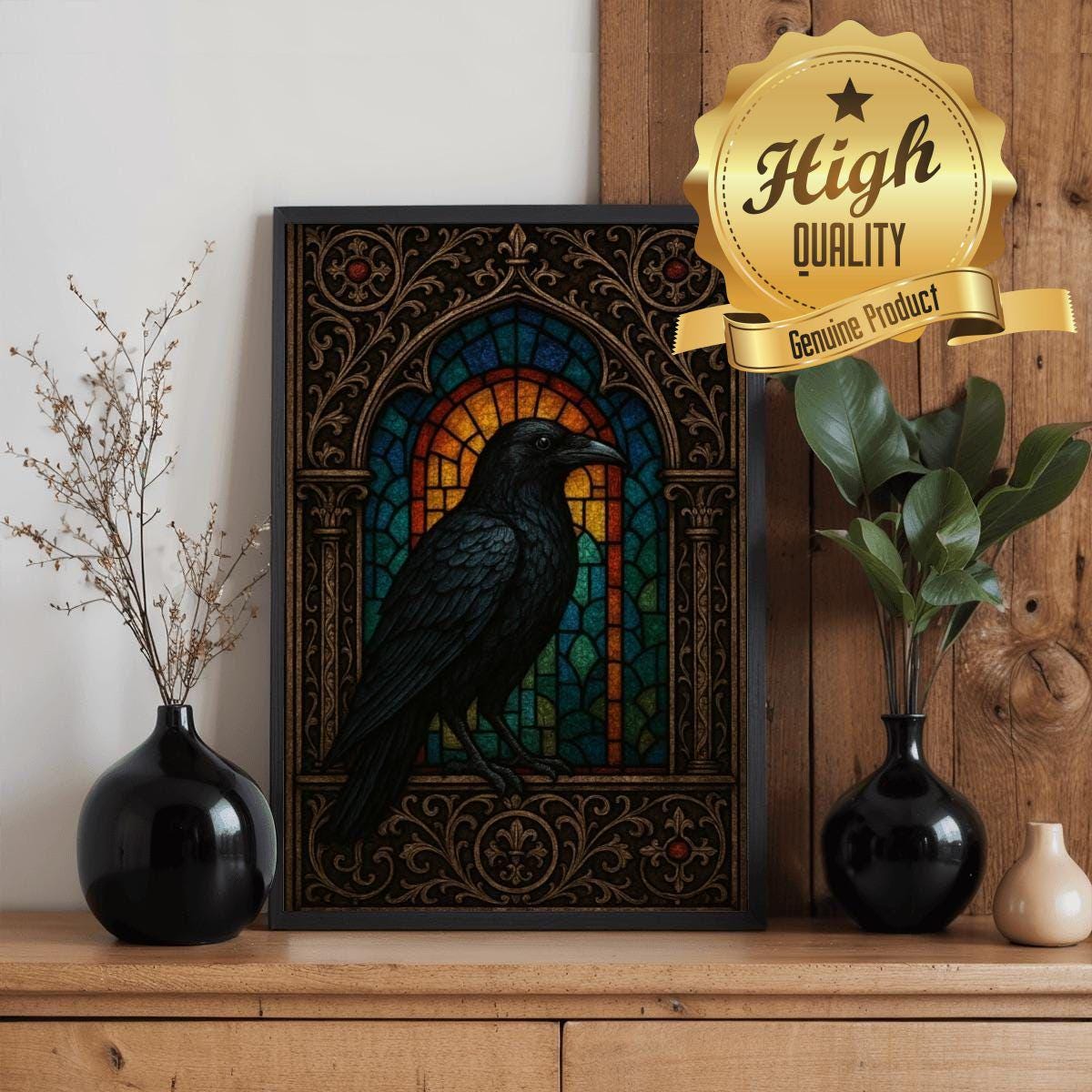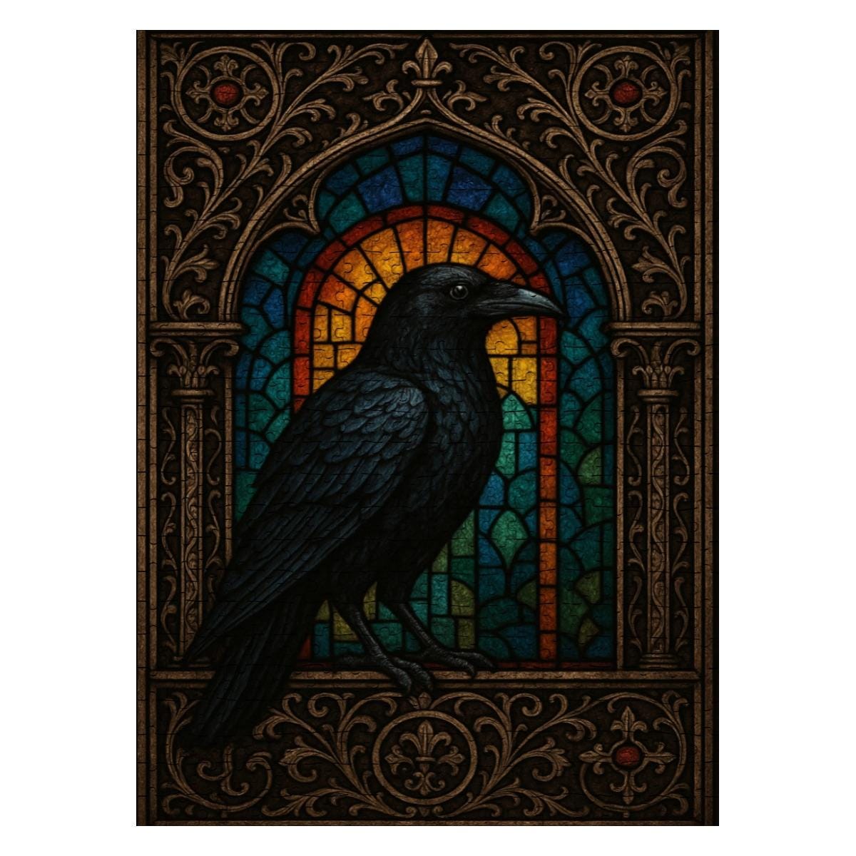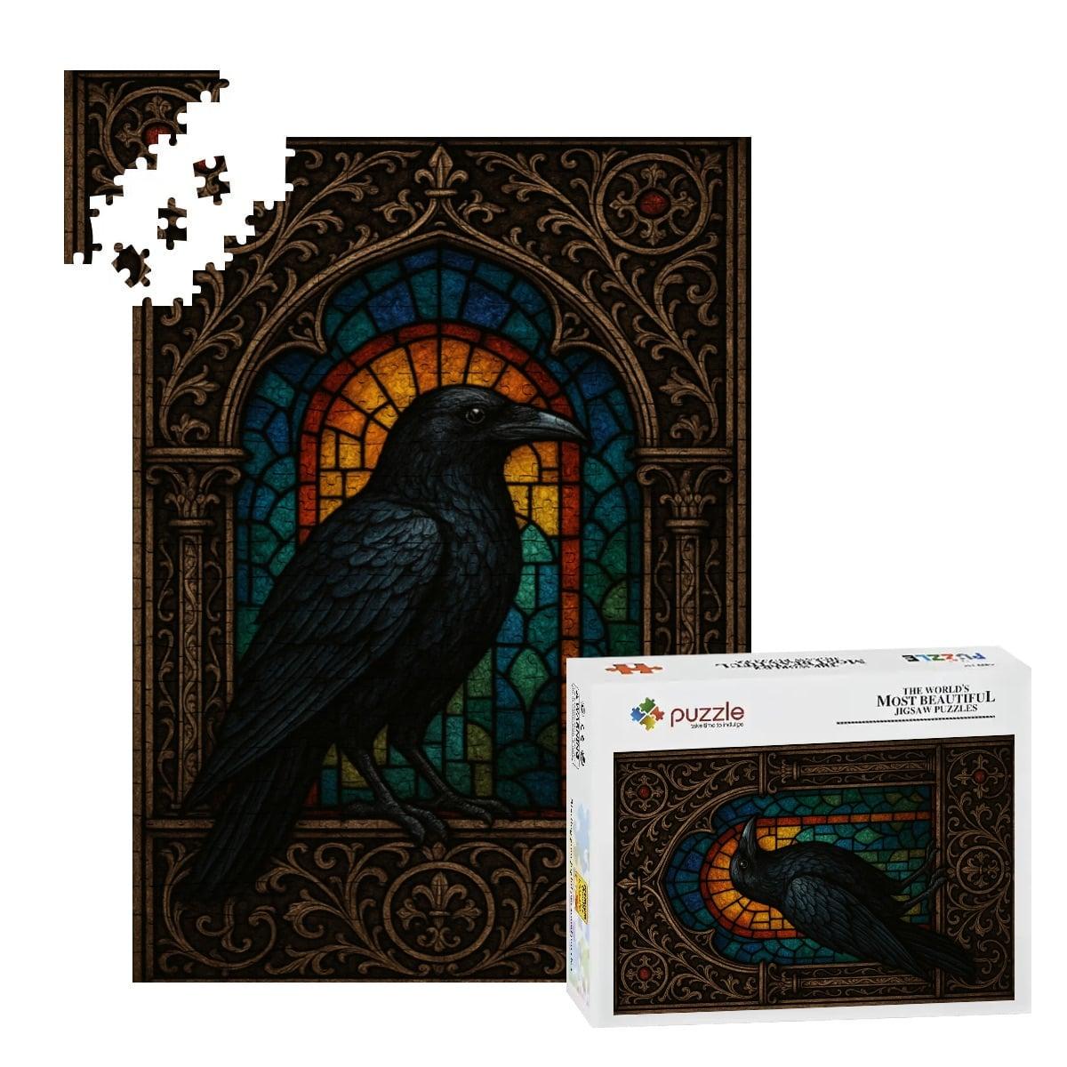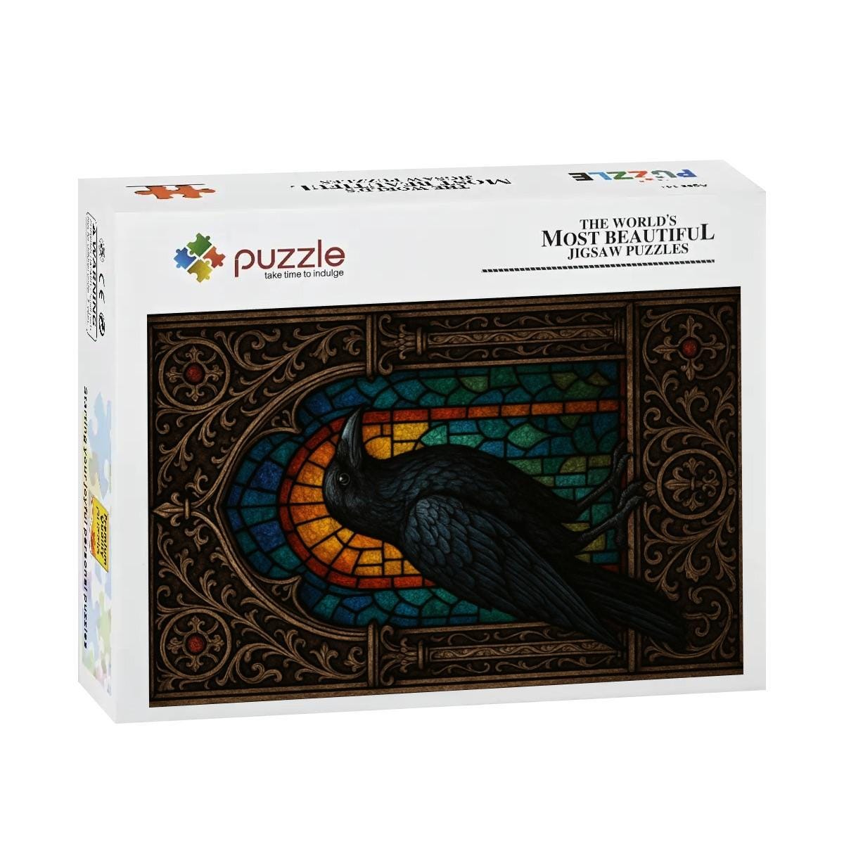 π§© Stained Glass Raven Wooden Jigsaw Puzzle (500 or 1000 Pieces)