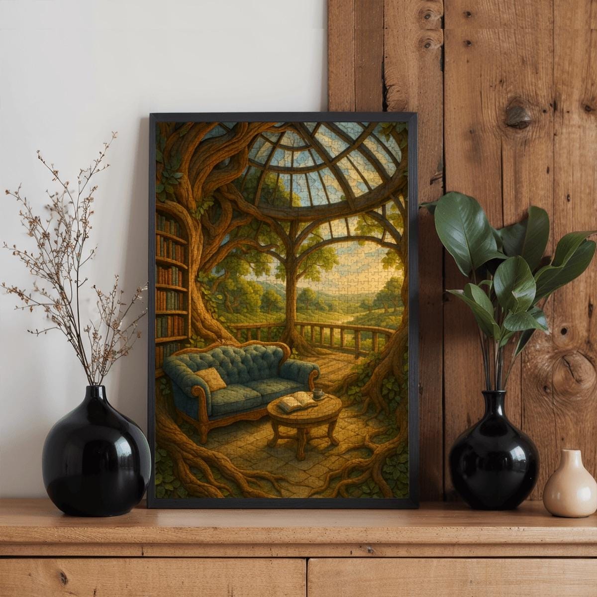 Enjoy a premium puzzle experience with this large-format wooden jigsaw puzzle, featuring the detailed Treehouse Lounge artwork. Designed for adults and experienced puzzlers, this puzzle combines visual beauty with a satisfying challenge and durable craftsmanship.