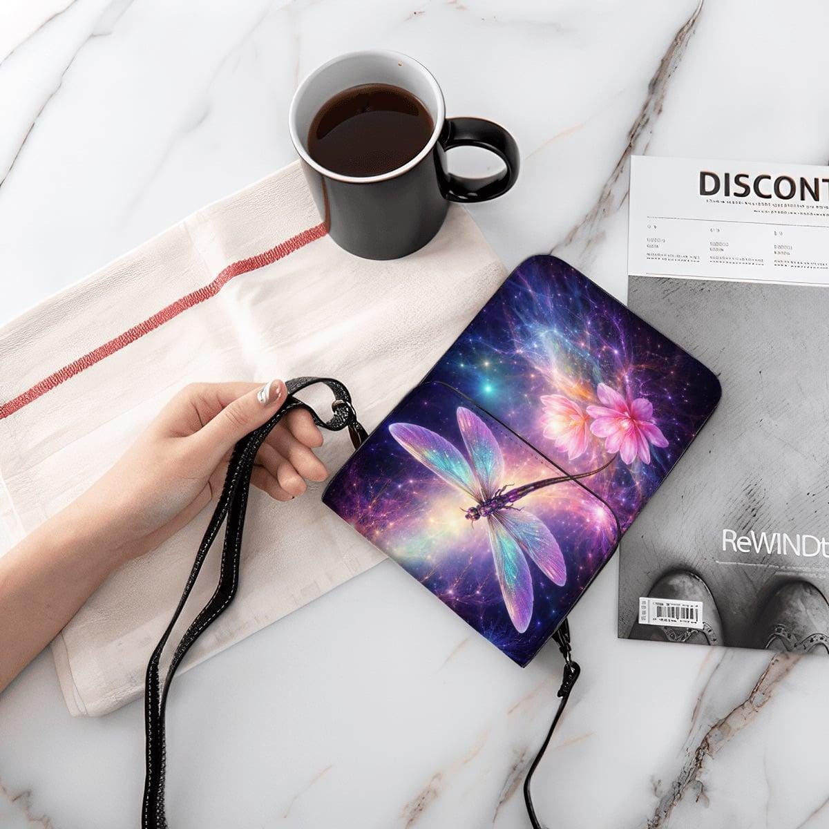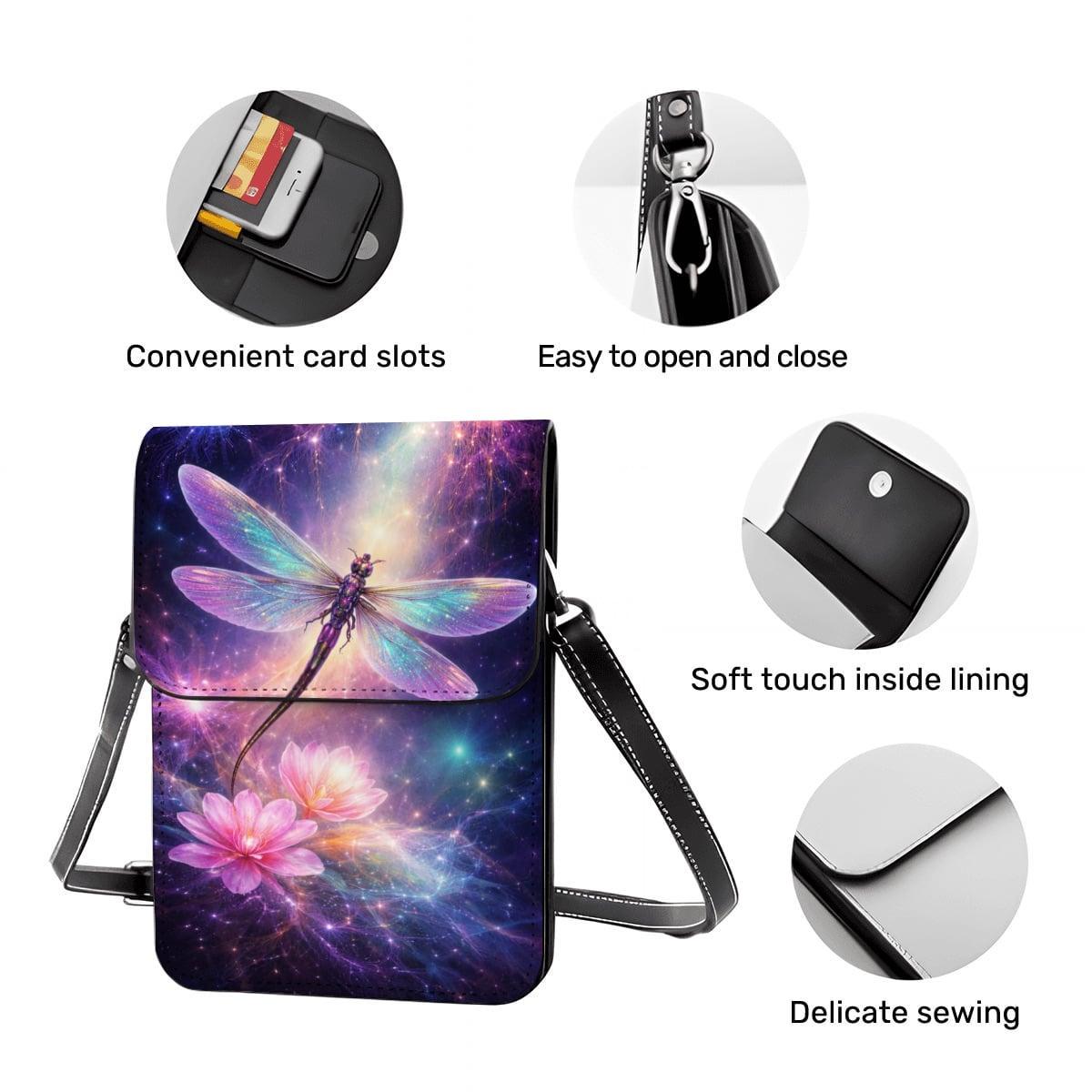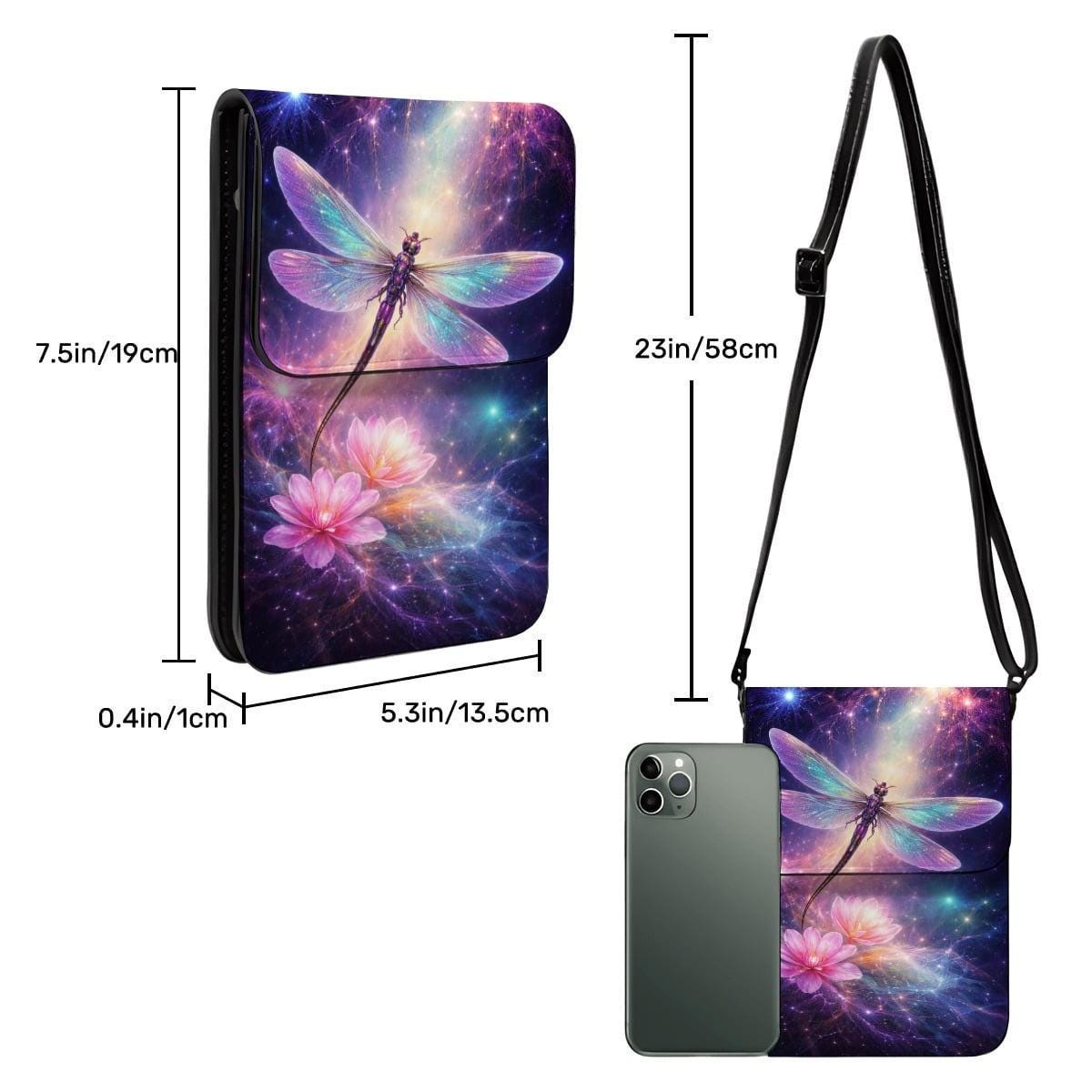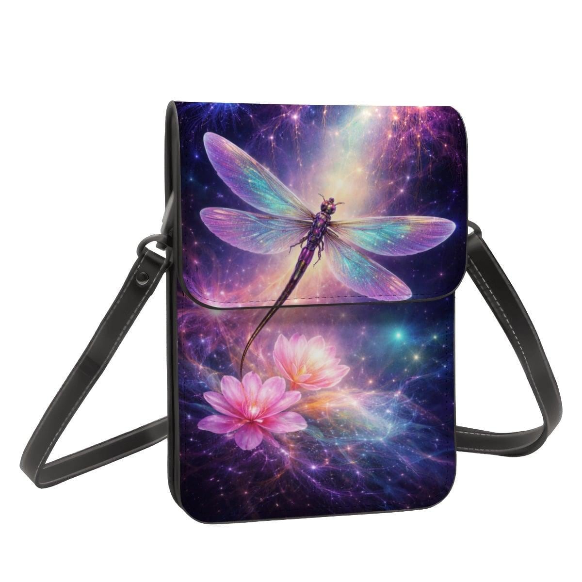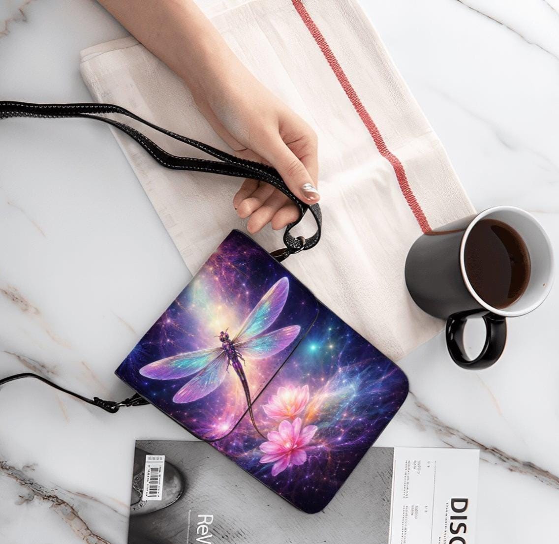 Carry a touch of magic with this dragonfly galaxy cell phone purse, featuring a glowing cosmic dragonfly and floral fantasy artwork exactly as shown. Lightweight, hands-free, and perfect for everyday use or gifting.