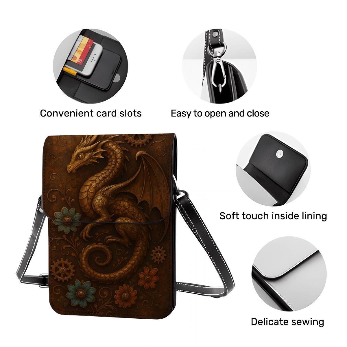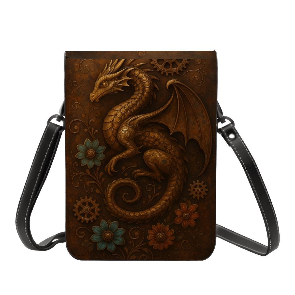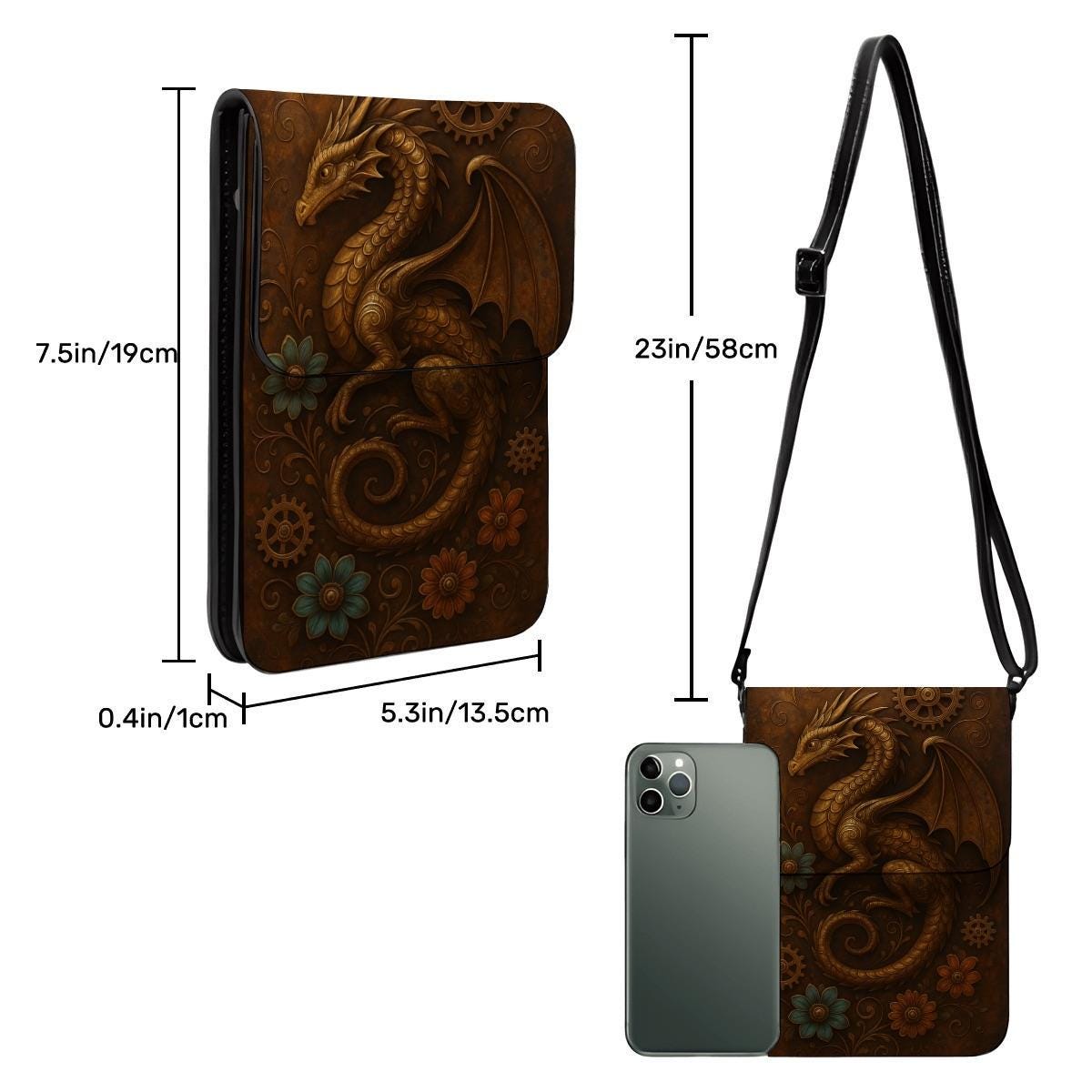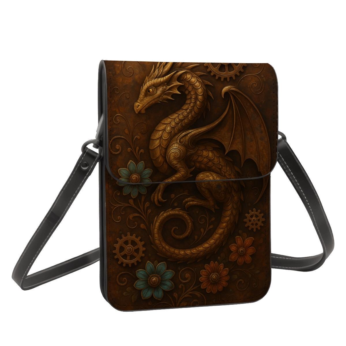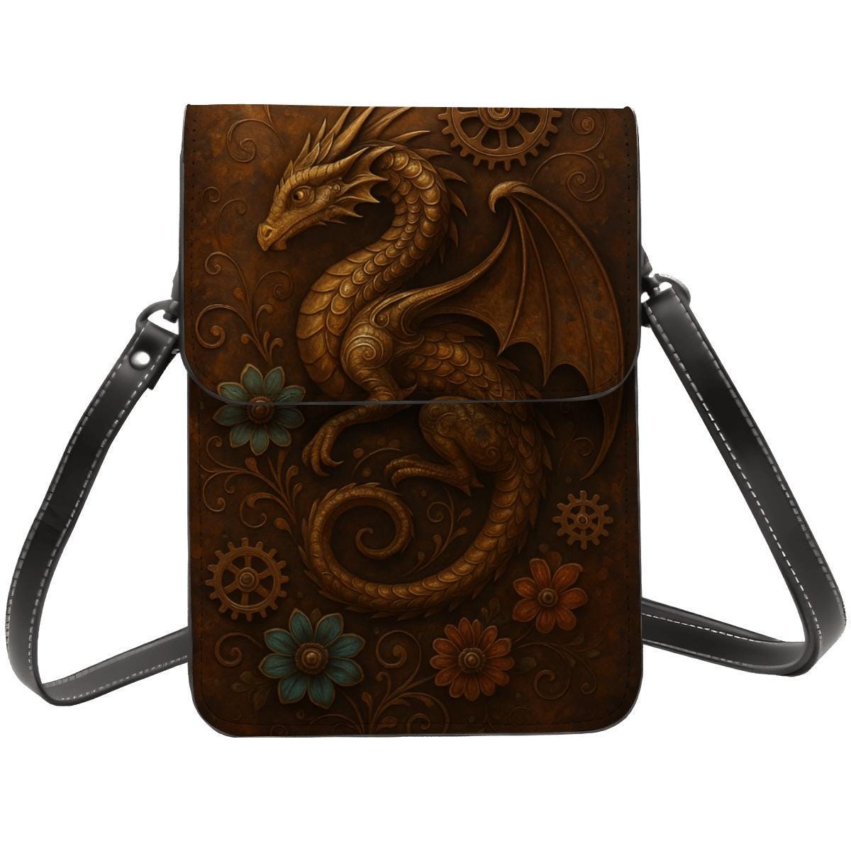 Bold, dark, and powerful — this steampunk dragon cell phone purse features an intricate bronze dragon surrounded by gears and mechanical details, exactly as shown. Lightweight, hands-free, and perfect for everyday wear or gifting.