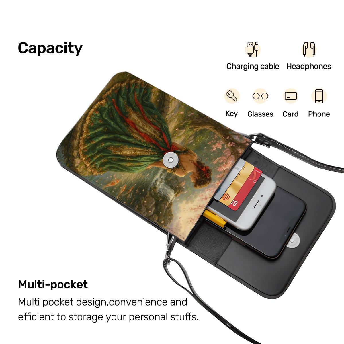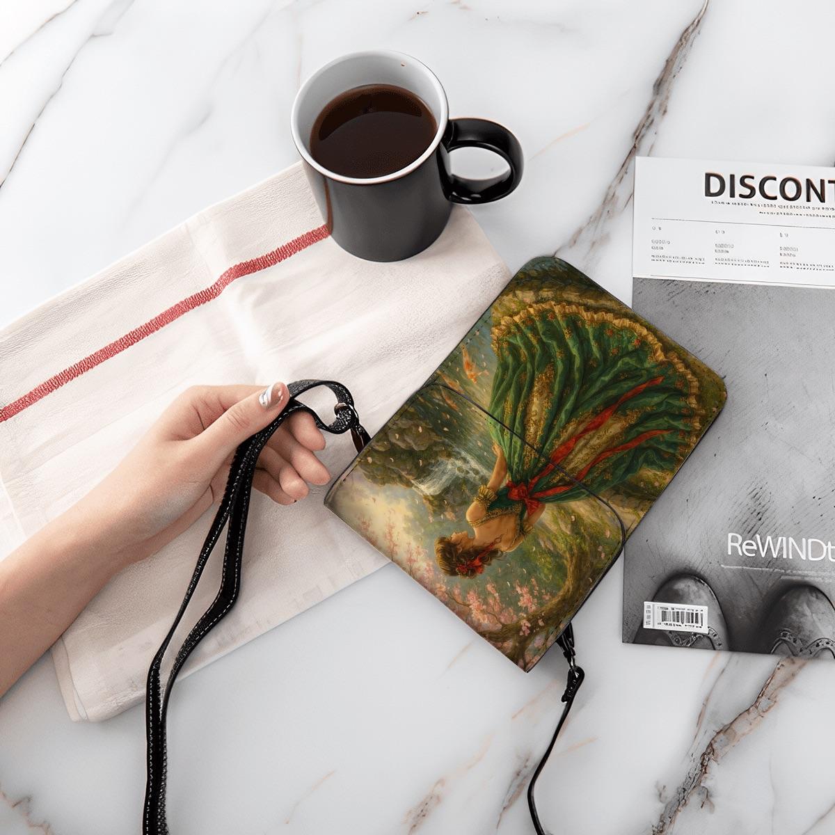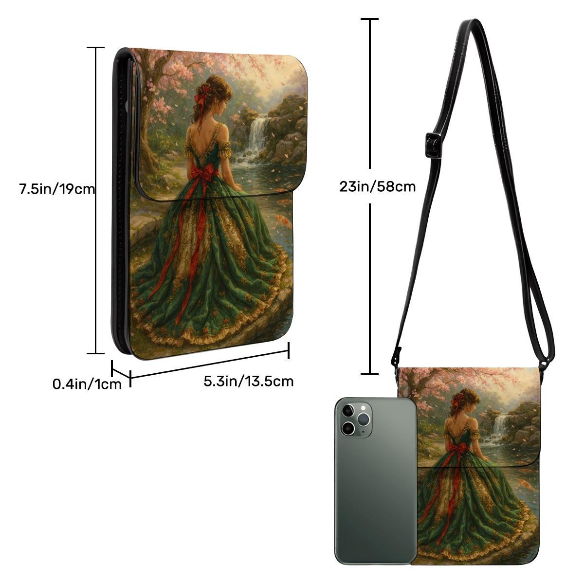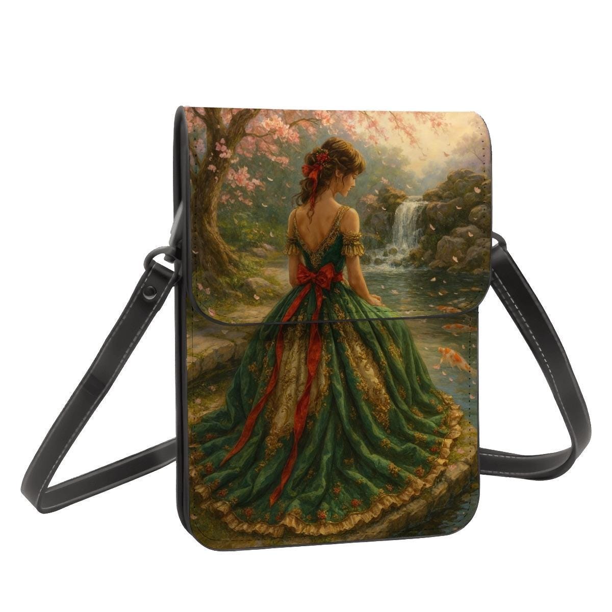 Add timeless elegance to your everyday look with this Victorian lady cell phone purse, featuring a graceful woman in a flowing gown standing in a peaceful koi pond, cherry blossoms, garden landscape. This romantic, vintage-inspired design blends classic beauty with modern functionality, making it a stunning accessory for daily wear or special occasions.