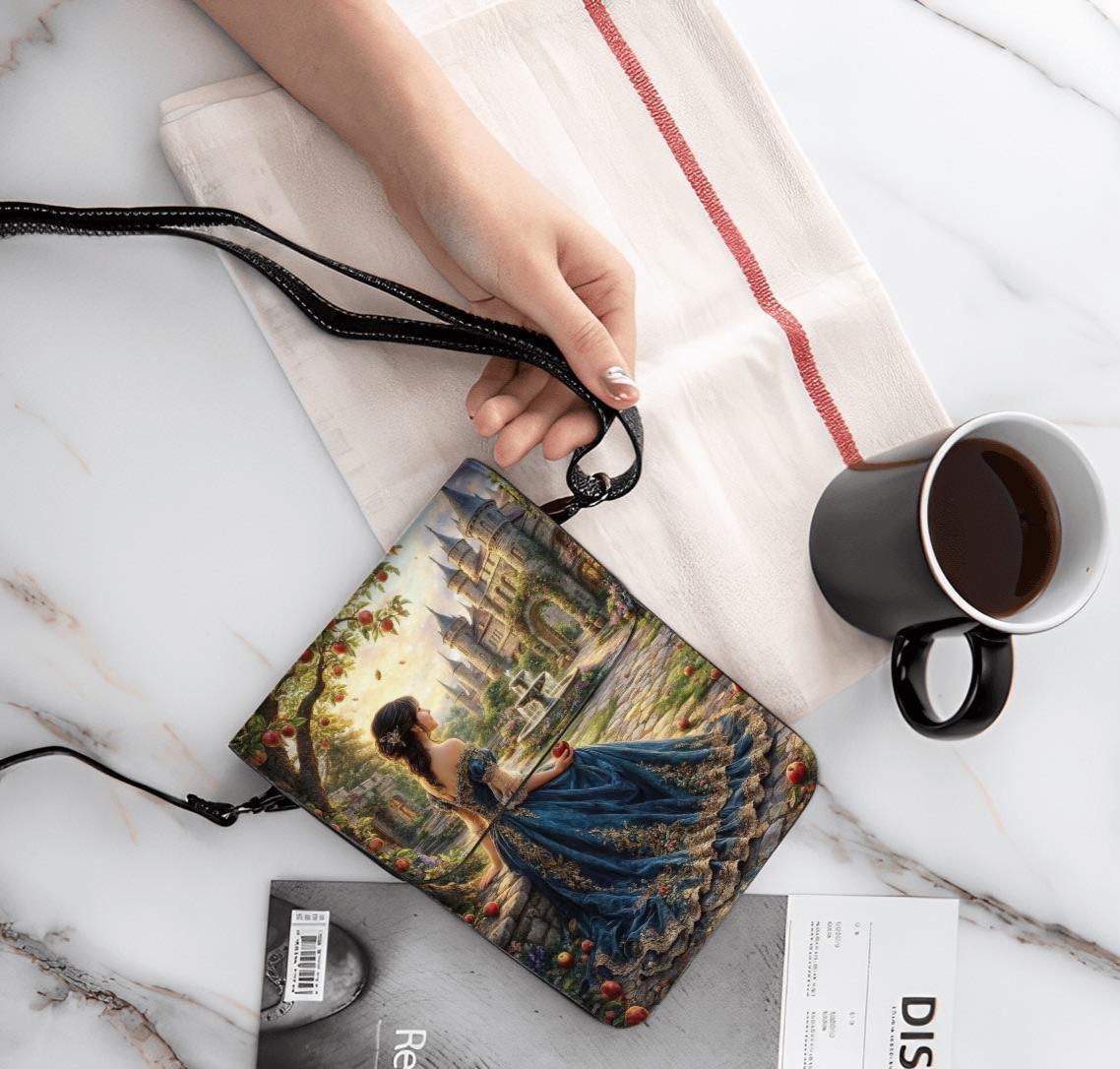 Step into a fairytale ✨ This cottagecore cell phone purse features a romantic medieval woman in a flowing blue gown walking toward a castle garden, exactly as shown. Elegant, lightweight, and perfect for everyday wear or gifting.