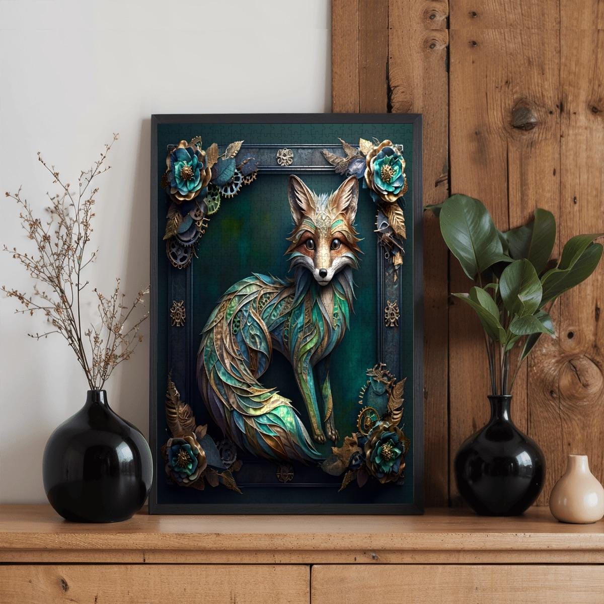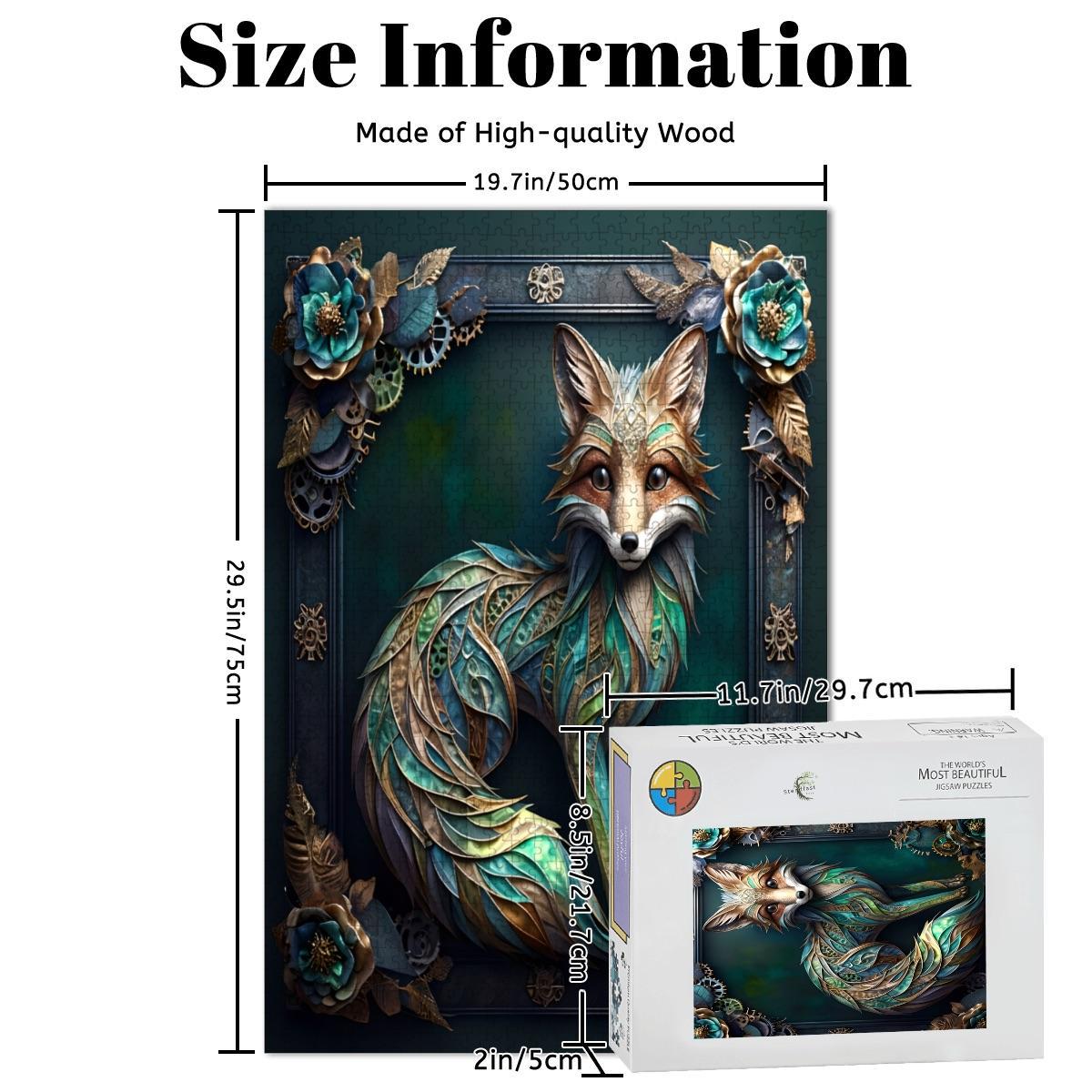 Immerse yourself in artistry and craftsmanship with this Steampunk Fox Wooden Jigsaw Puzzle, made from premium oak wood and printed using vibrant UV technology for rich, long-lasting color.