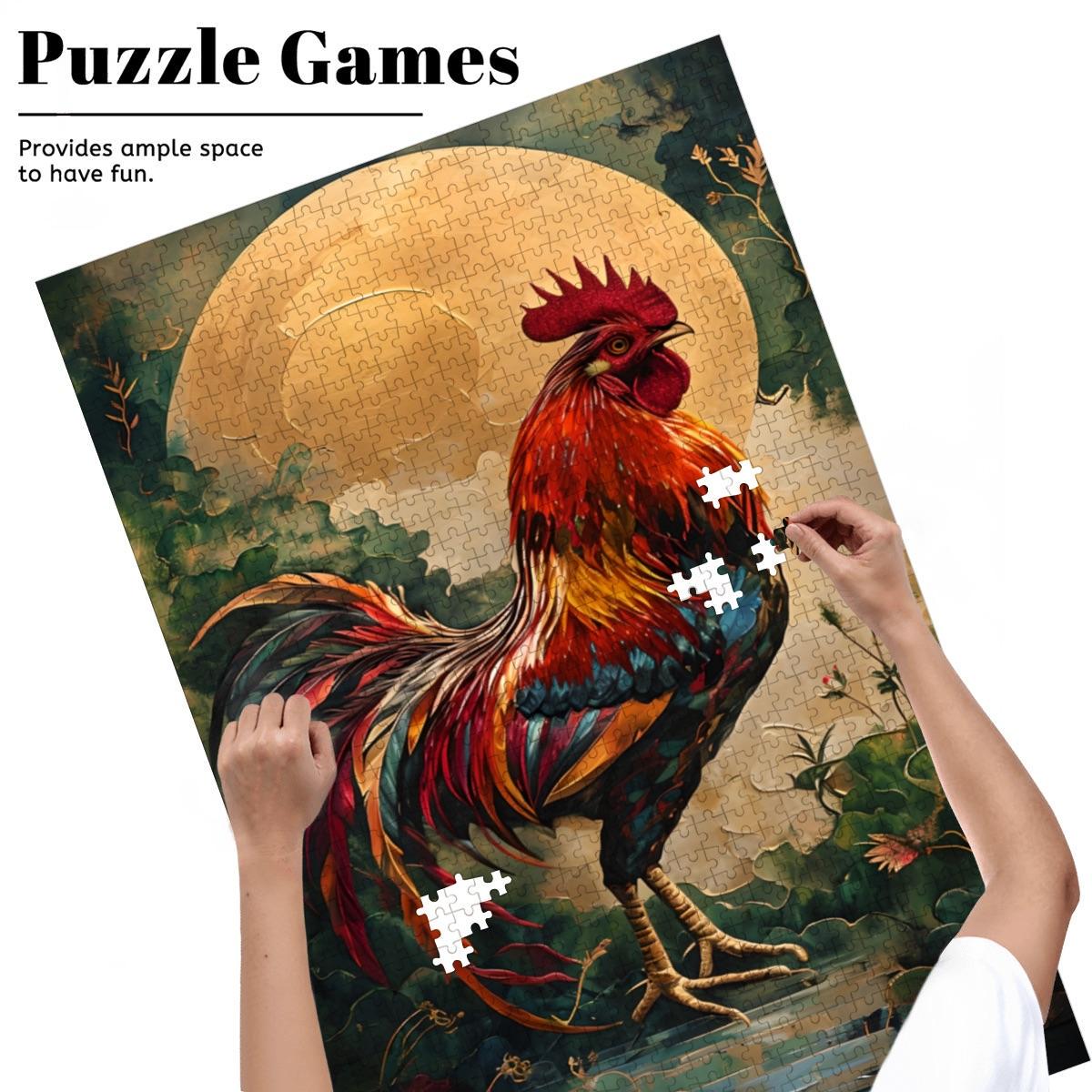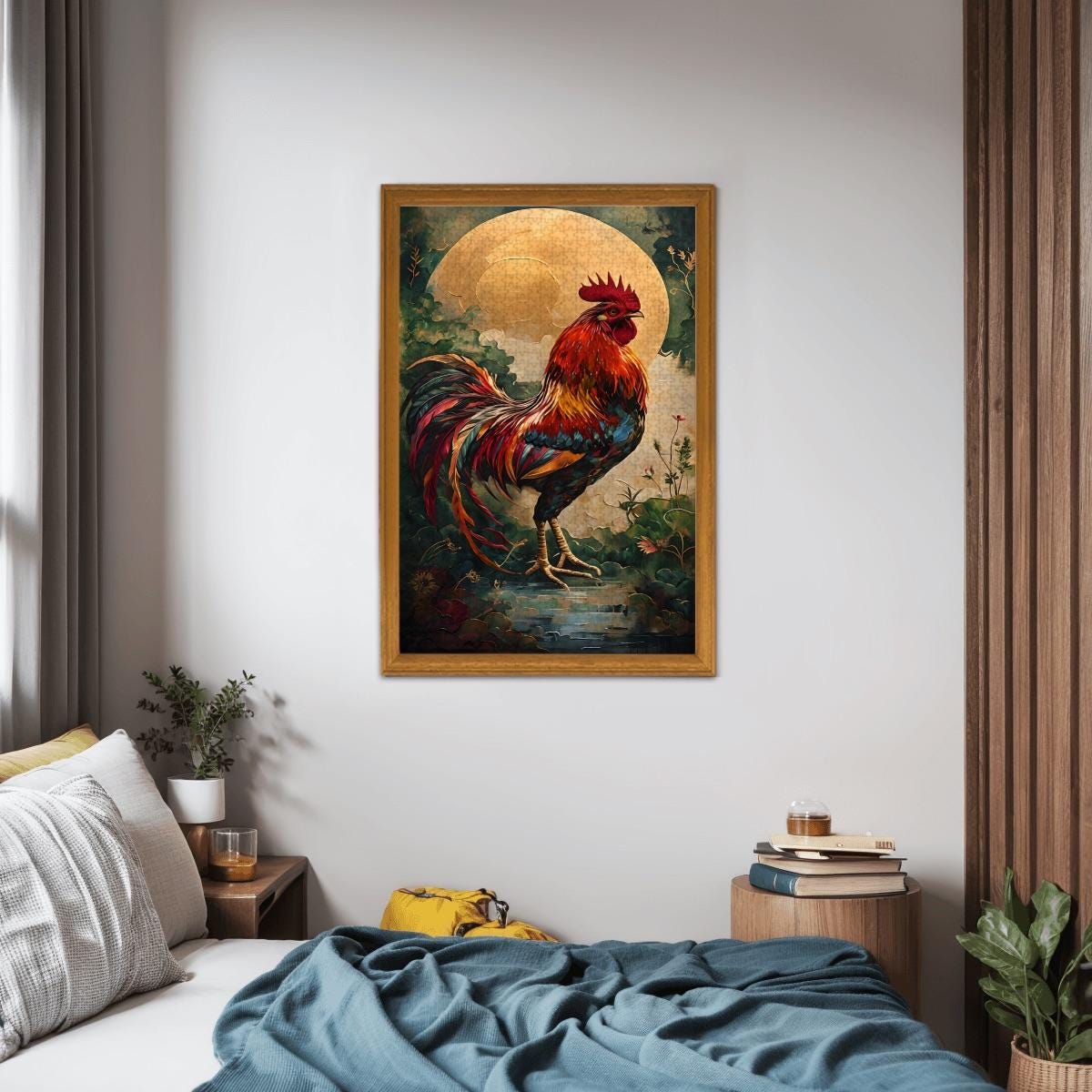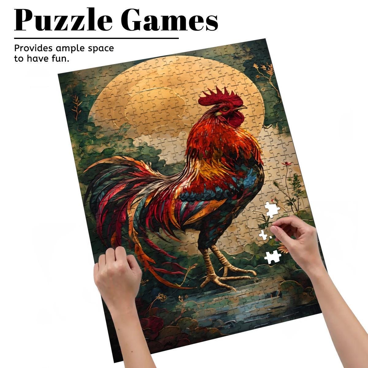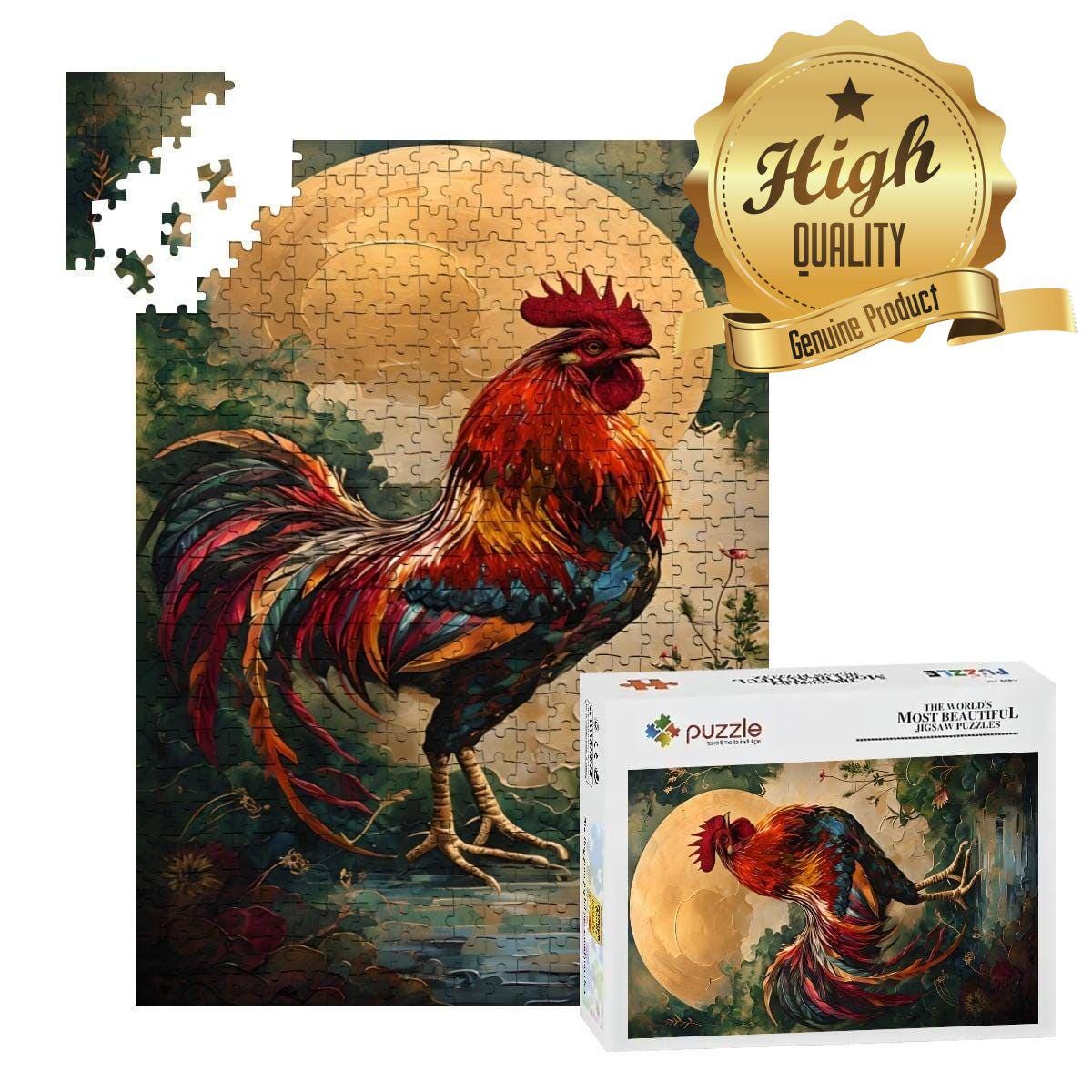 Bring warmth, strength, and rustic charm to your puzzle time with this striking majestic rooster beneath a glowing full moon. Rich colors, painterly texture, and dramatic lighting create a bold, timeless artwork that feels alive as you assemble it piece by piece.