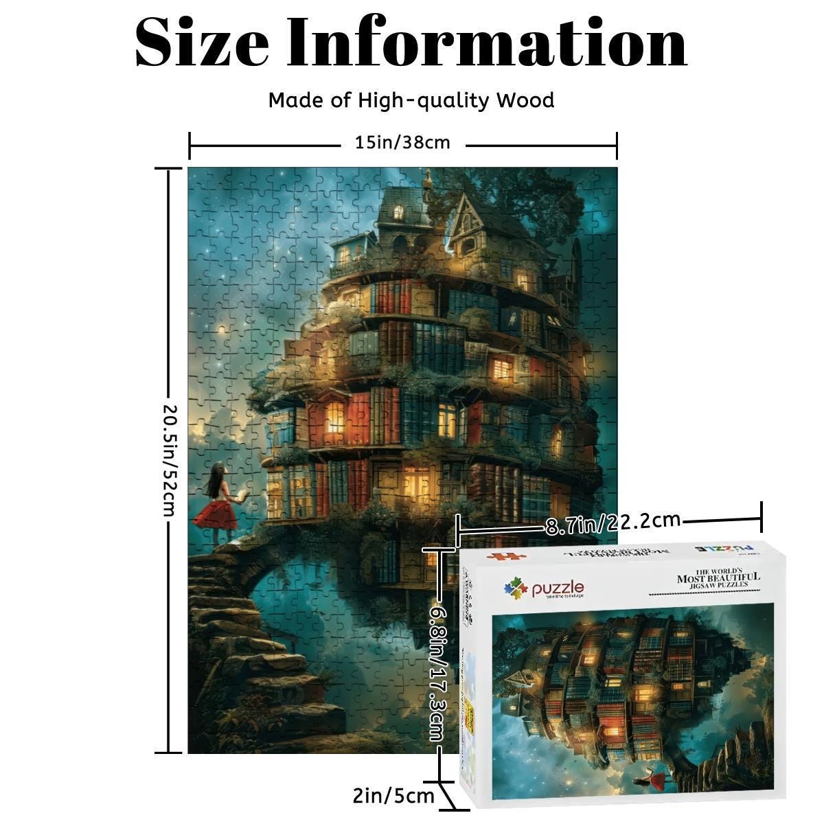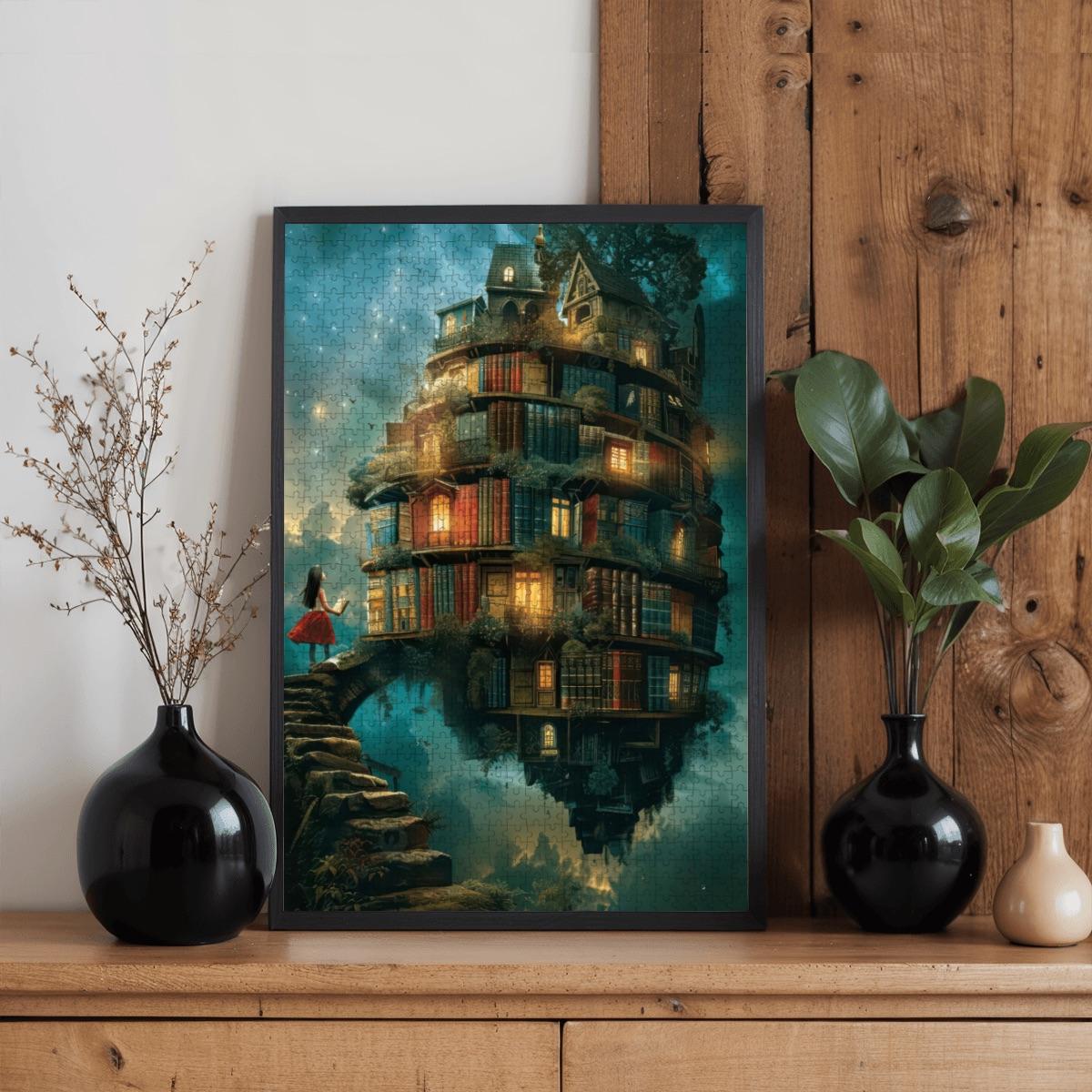 Once completed, this puzzle looks stunning framed as wall art — a magical floating library that adds warmth and wonder to any room.
