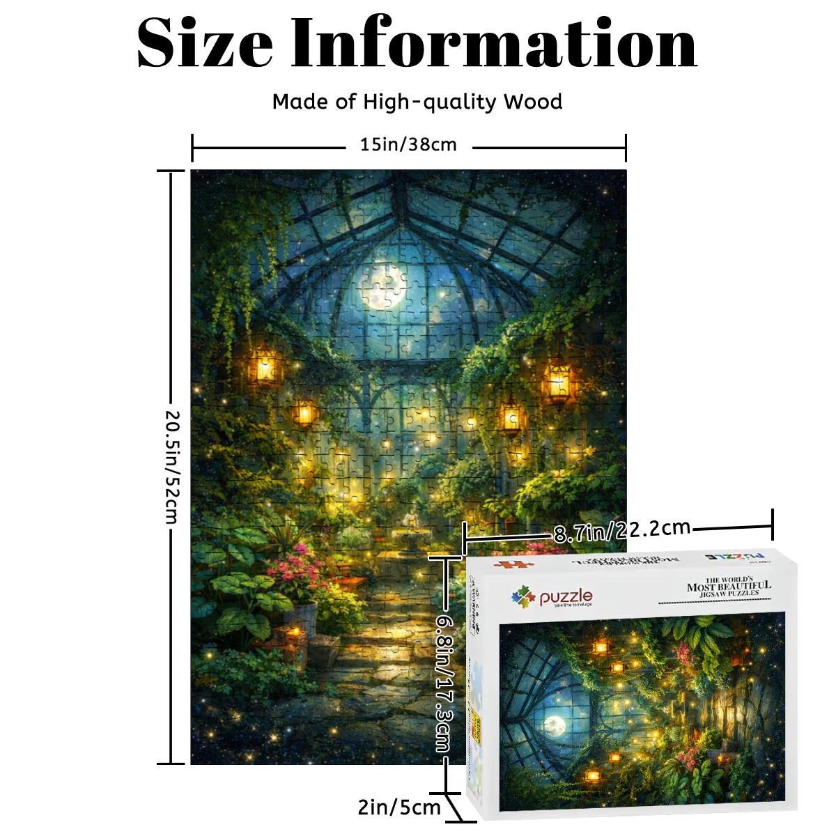 Step into a magical nighttime escape with this Enchanted Greenhouse Wooden Jigsaw Puzzle, crafted from premium oak wood and printed using vibrant UV technology for rich, glowing color.