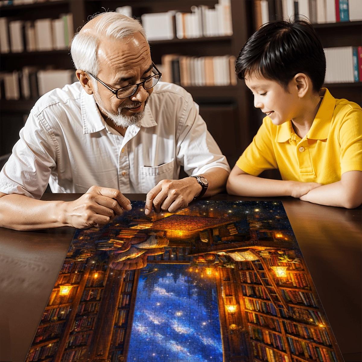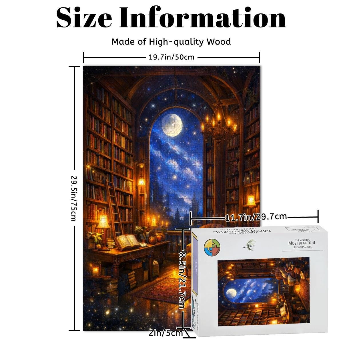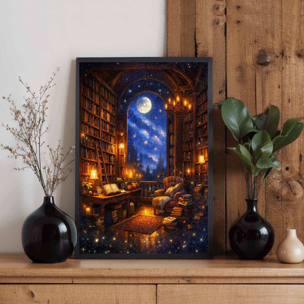 Step into a dreamlike world of glowing lanterns, towering bookshelves, and a moonlit sky beyond a magical library window. This premium wooden jigsaw puzzle transforms relaxation into an immersive fantasy escape β perfect for quiet evenings, mindful play, or gifting someone who loves art and imagination.