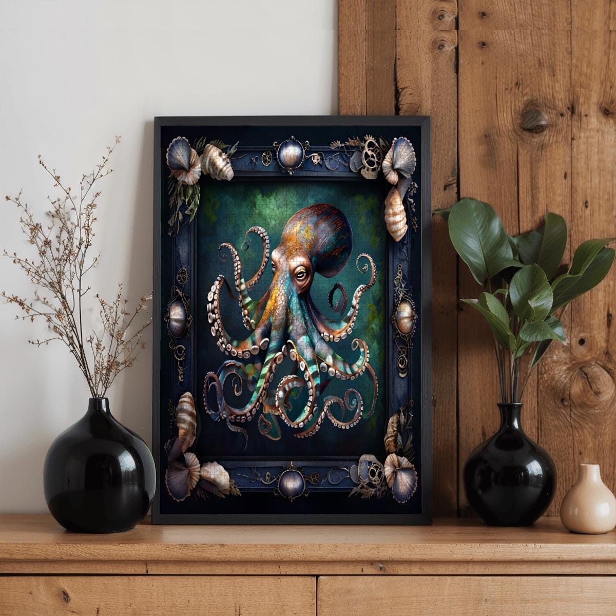 Dive into a world of imagination and craftsmanship with this Steampunk Octopus Wooden Jigsaw Puzzle, crafted from premium oak wood and printed with vibrant UV artwork for rich, lasting color.