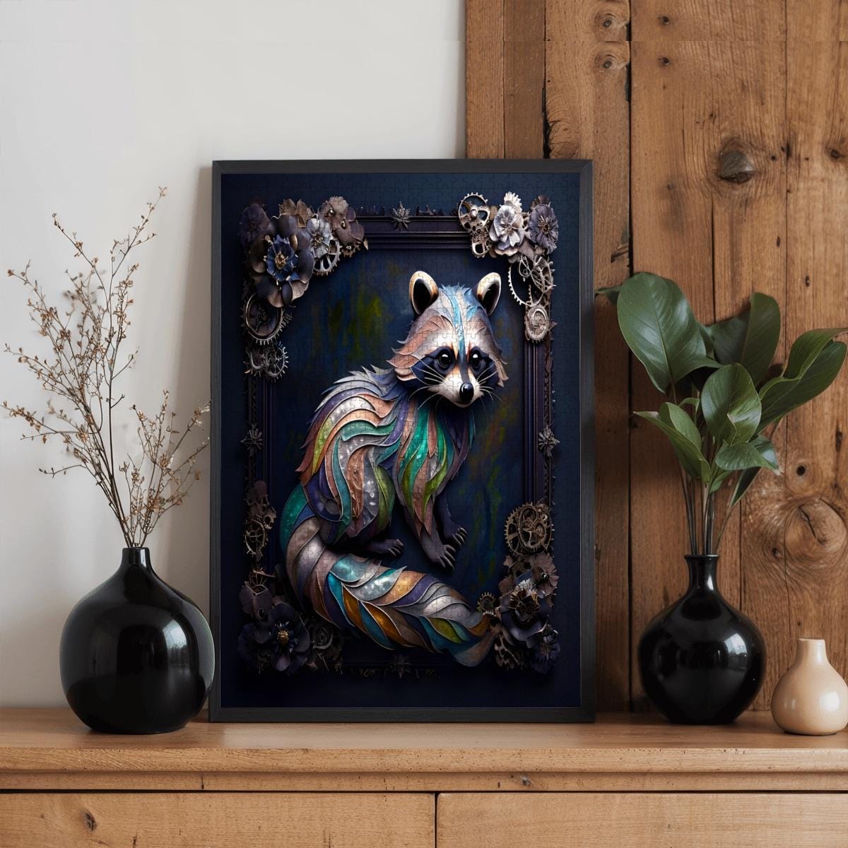 Bring imagination and craftsmanship together with this Steampunk Raccoon Wooden Jigsaw Puzzle, made from premium oak wood and printed using vibrant UV technology for long-lasting color and detail.