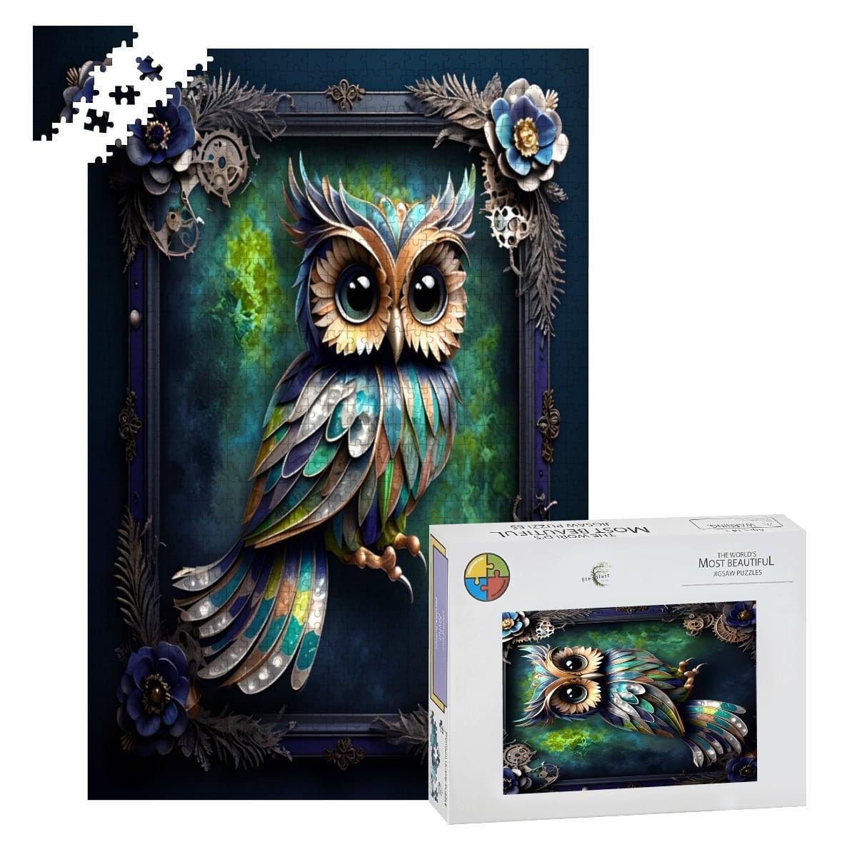 Step into a world of imagination and intricate detail with this striking steampunk owl, blending mechanical elements, glowing accents, and rich jewel tones. This bold fantasy artwork creates a mesmerizing puzzling experience where art, creativity, and relaxation come together.