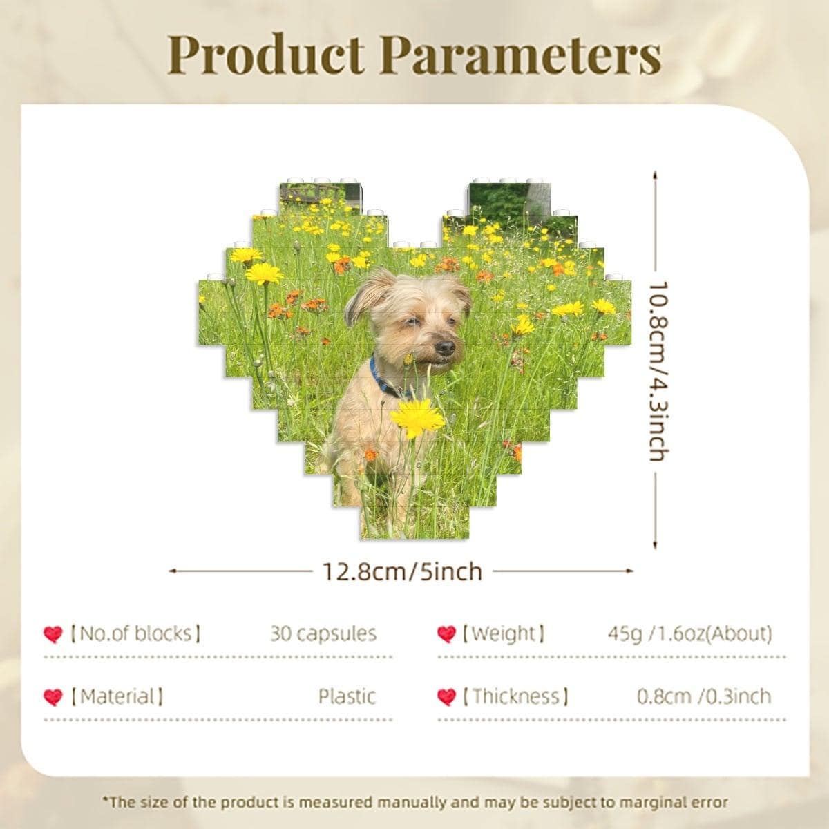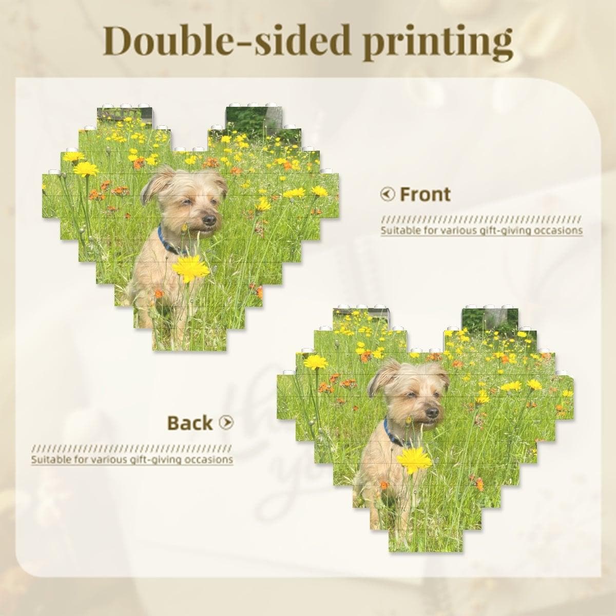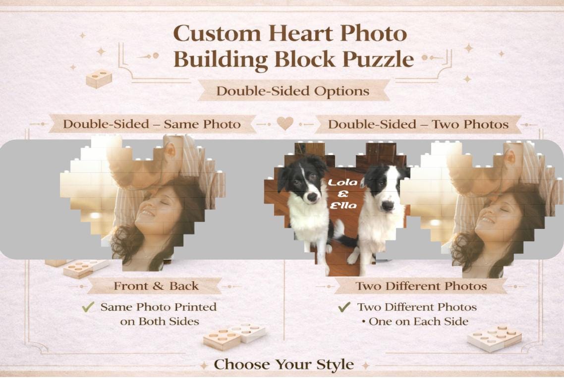 • Custom double-sided heart photo building block puzzle