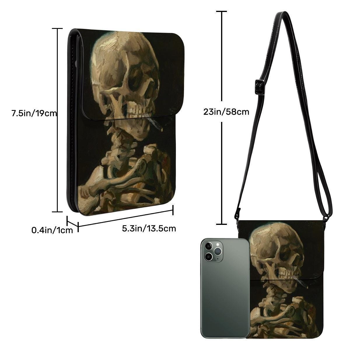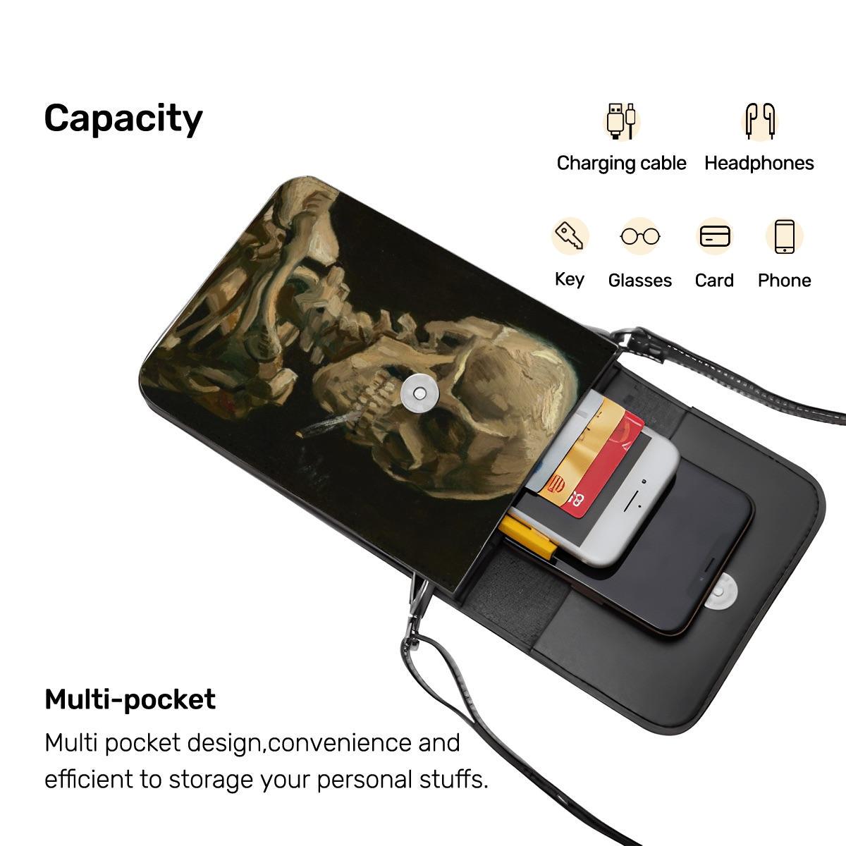 💀🖤 Skull Cell Phone Crossbody Purse – Fine Art Style