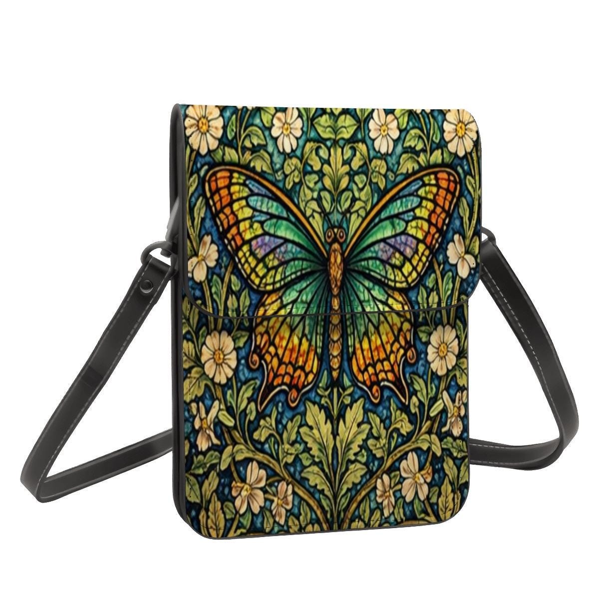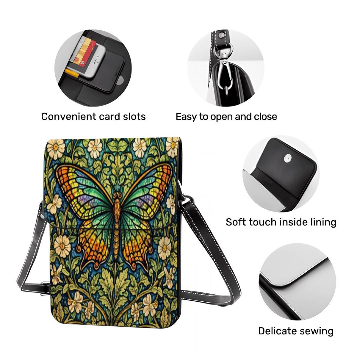 Carry beauty and functionality together with this stained-glass butterfly cell phone purse. Featuring a vibrant butterfly design inspired by classic stained-glass art and nature motifs, this compact crossbody bag is perfect for everyday errands, travel, festivals, or casual outings. William Morris Style Artwork.