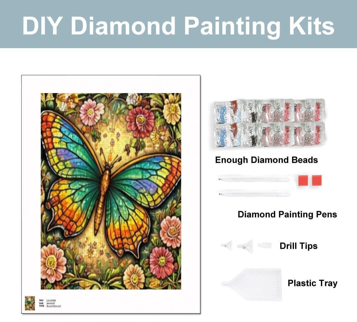 Create a beautiful and detailed masterpiece with this stunning Butterfly Diamond Painting Kit featuring a colorful butterfly surrounded by floral accents. This full-drill canvas design is perfect for relaxing crafting sessions and elegant home dΓ©cor once completed.