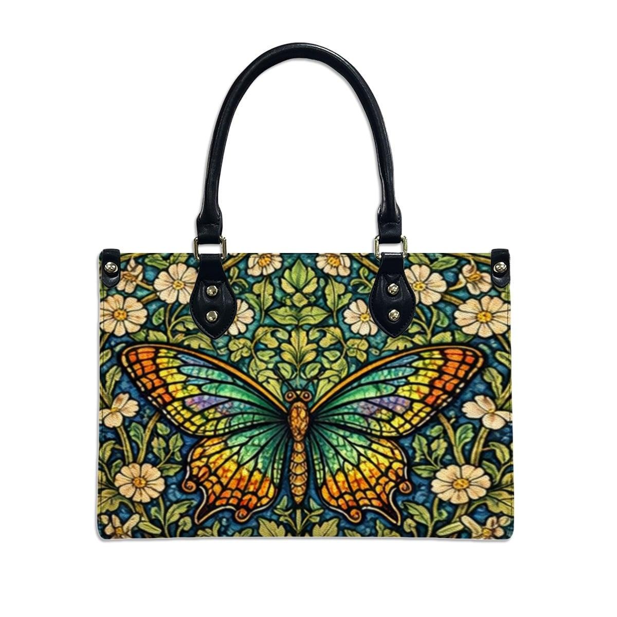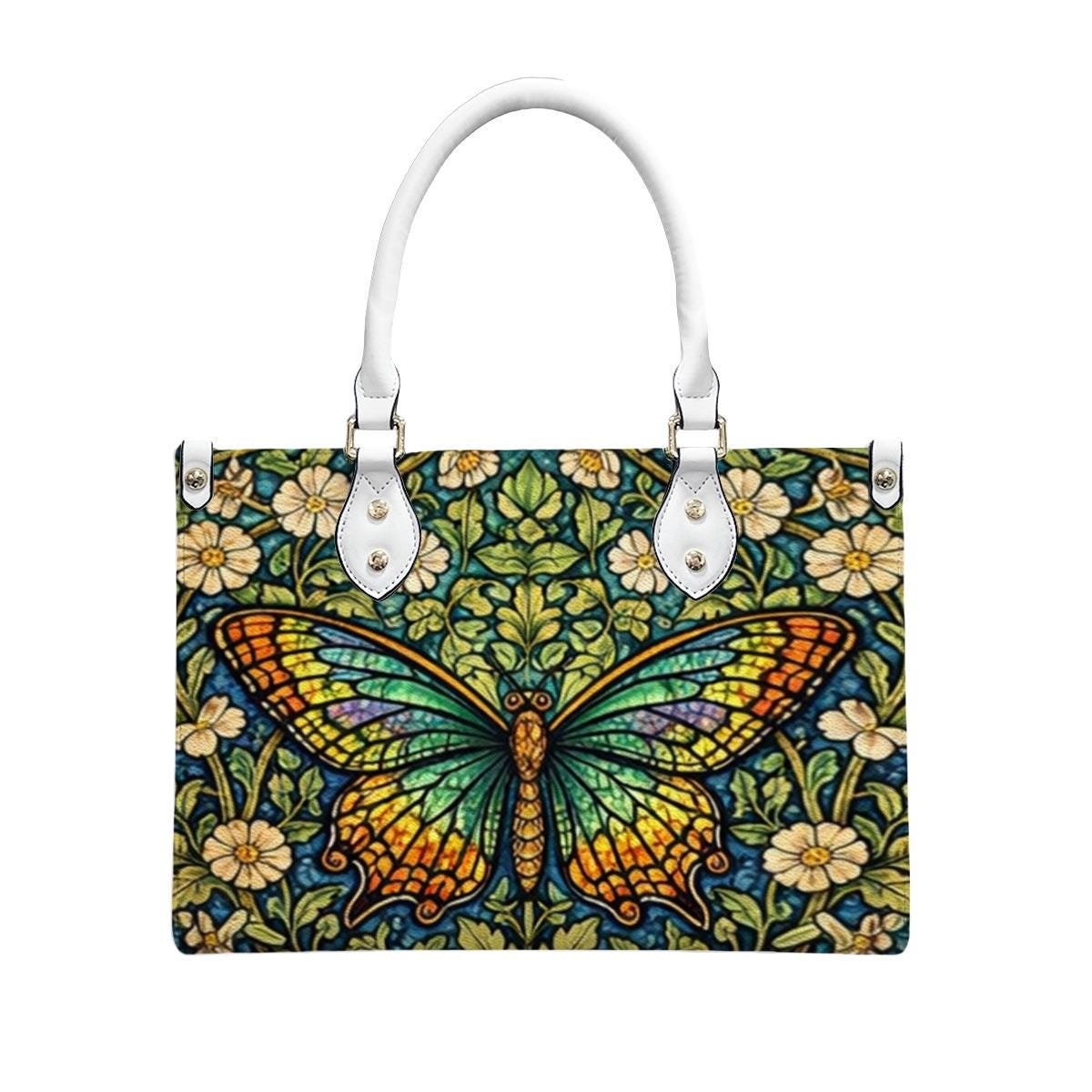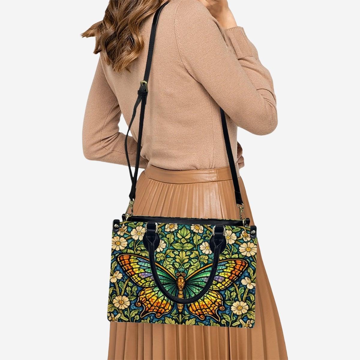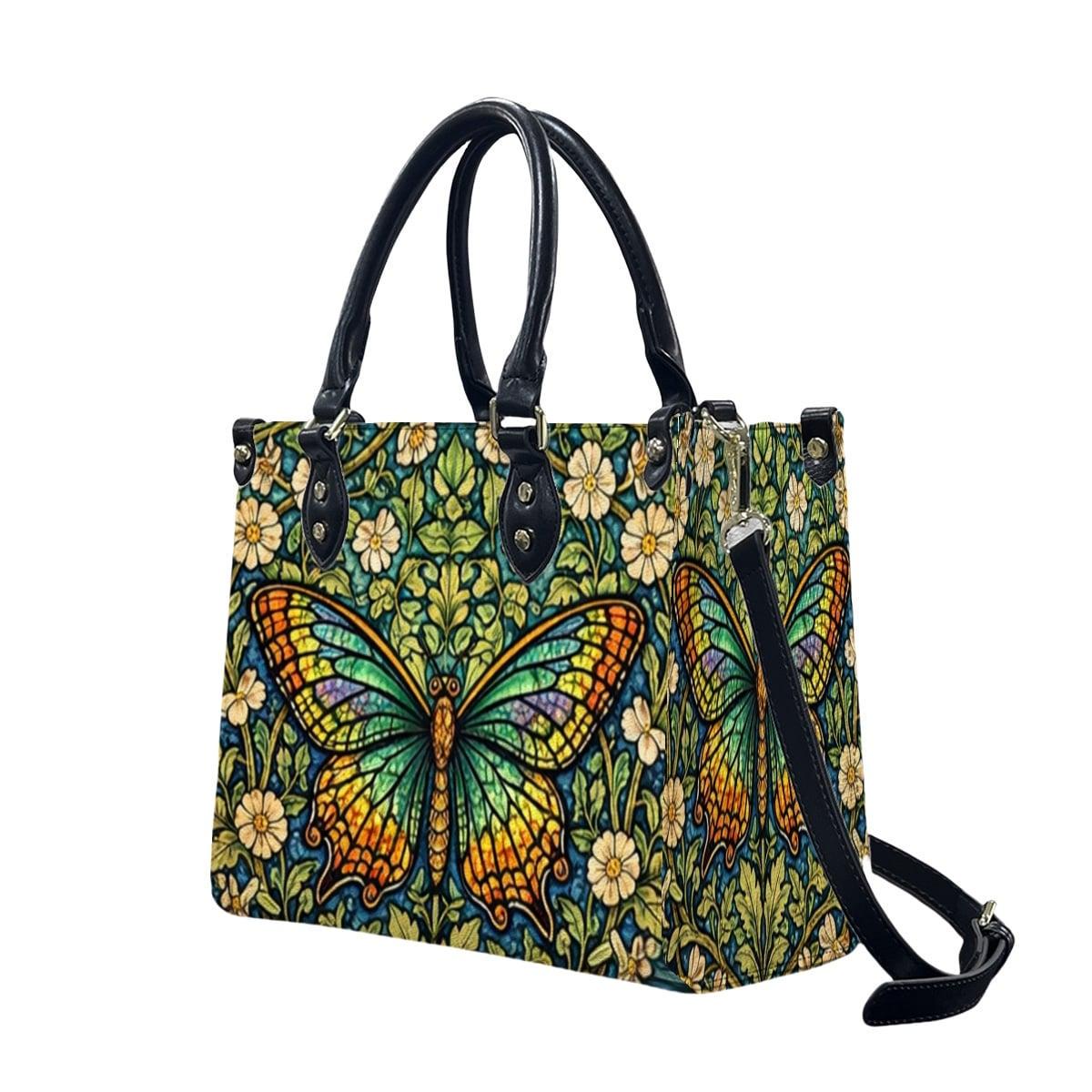 π Stained Glass Butterfly Leather Handbag β PU Tote Bag β Crossbody Option β Nature Art Purse