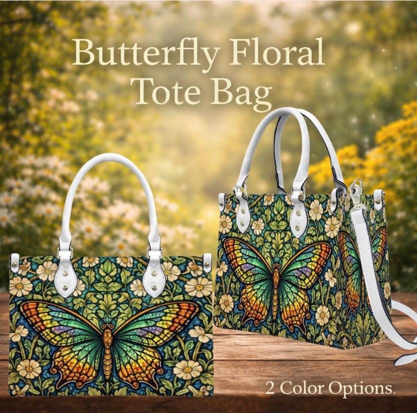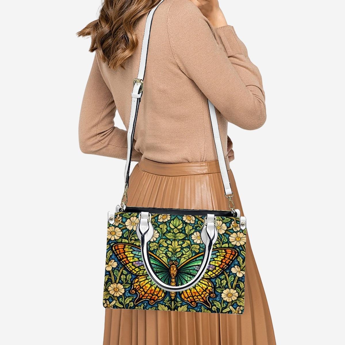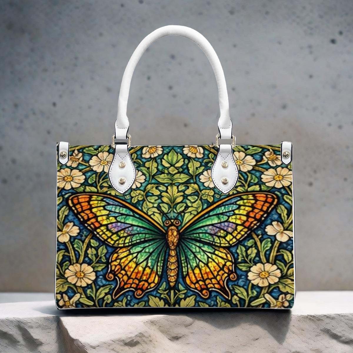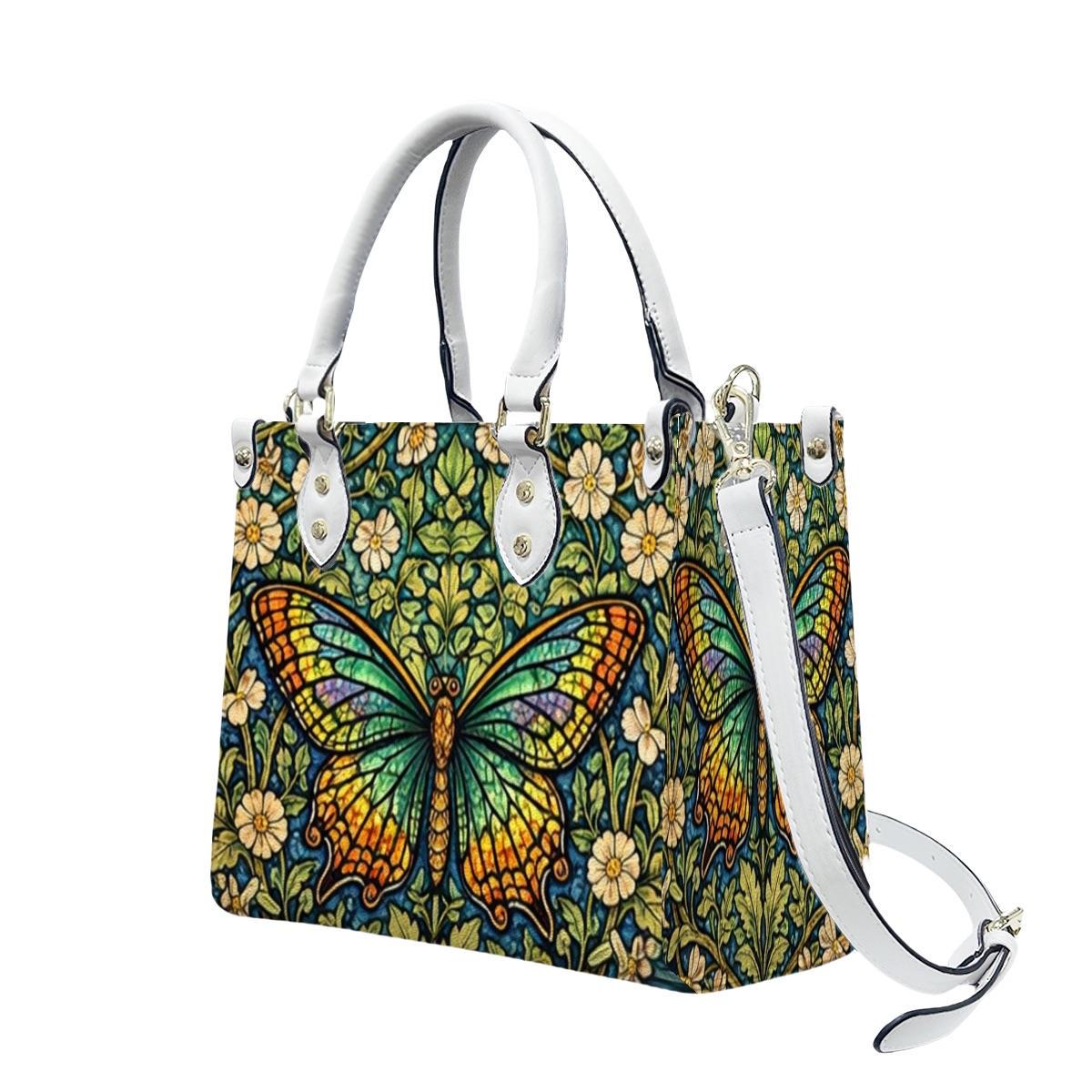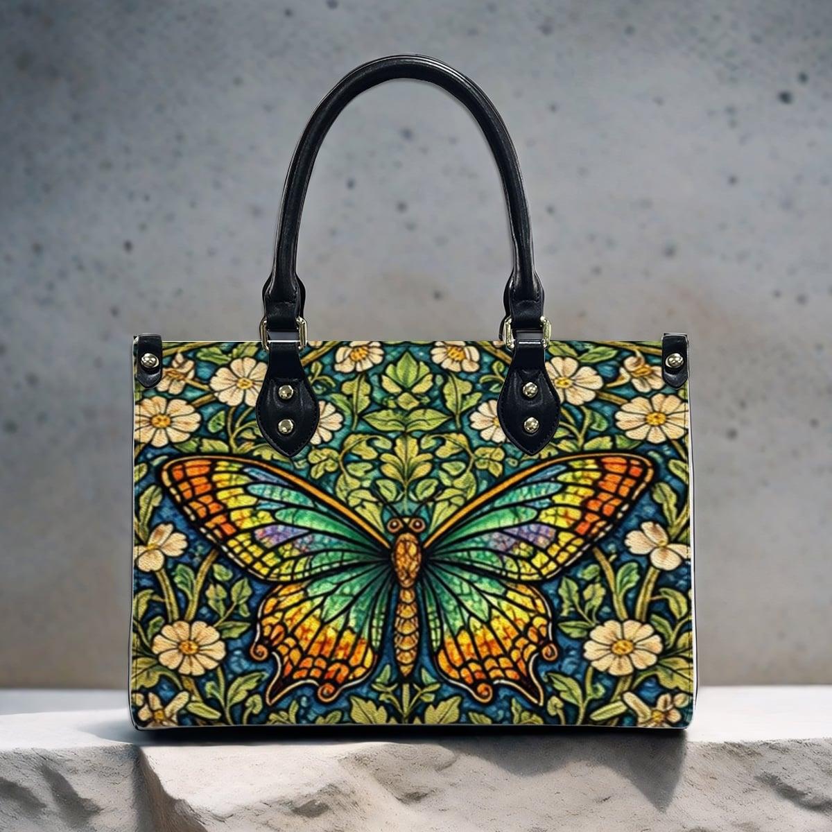 π Stained Glass Butterfly Leather Handbag β PU Tote Bag β Crossbody Option β Nature Art Purse