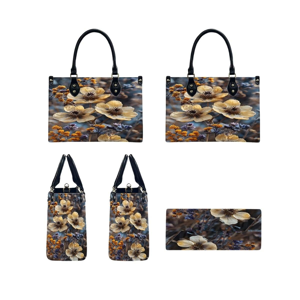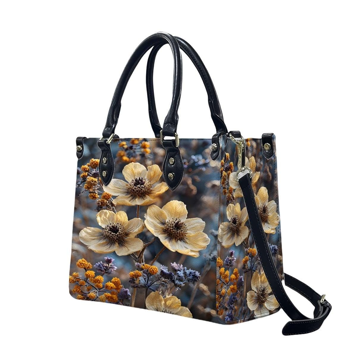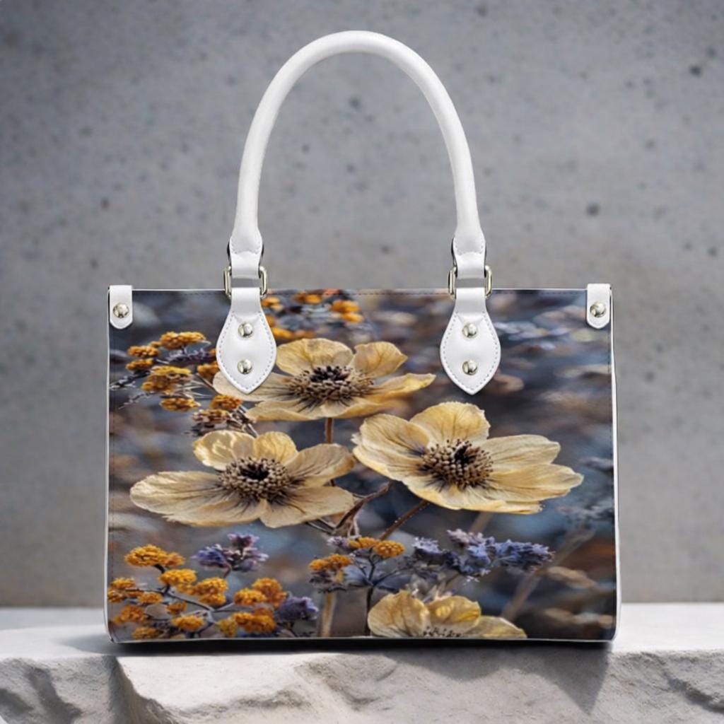 👜 Wildflower Leather Handbag – Floral Art Tote – PU Leather Crossbody Bag – Nature Inspired Purse