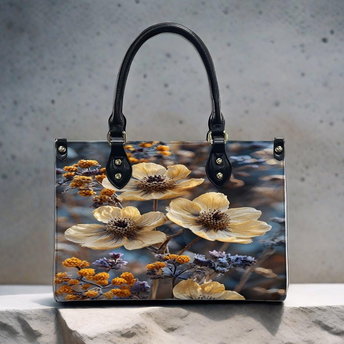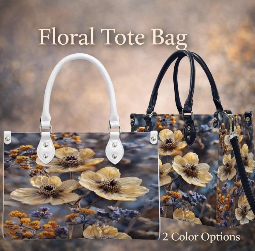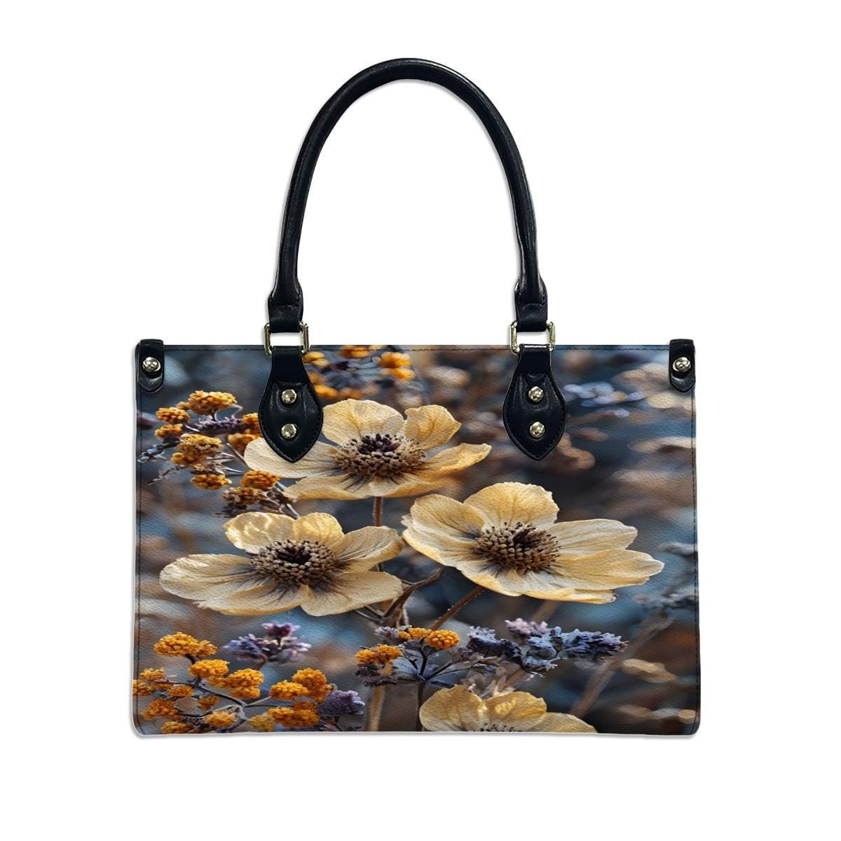 👜 Wildflower Leather Handbag – Floral Art Tote – PU Leather Crossbody Bag – Nature Inspired Purse