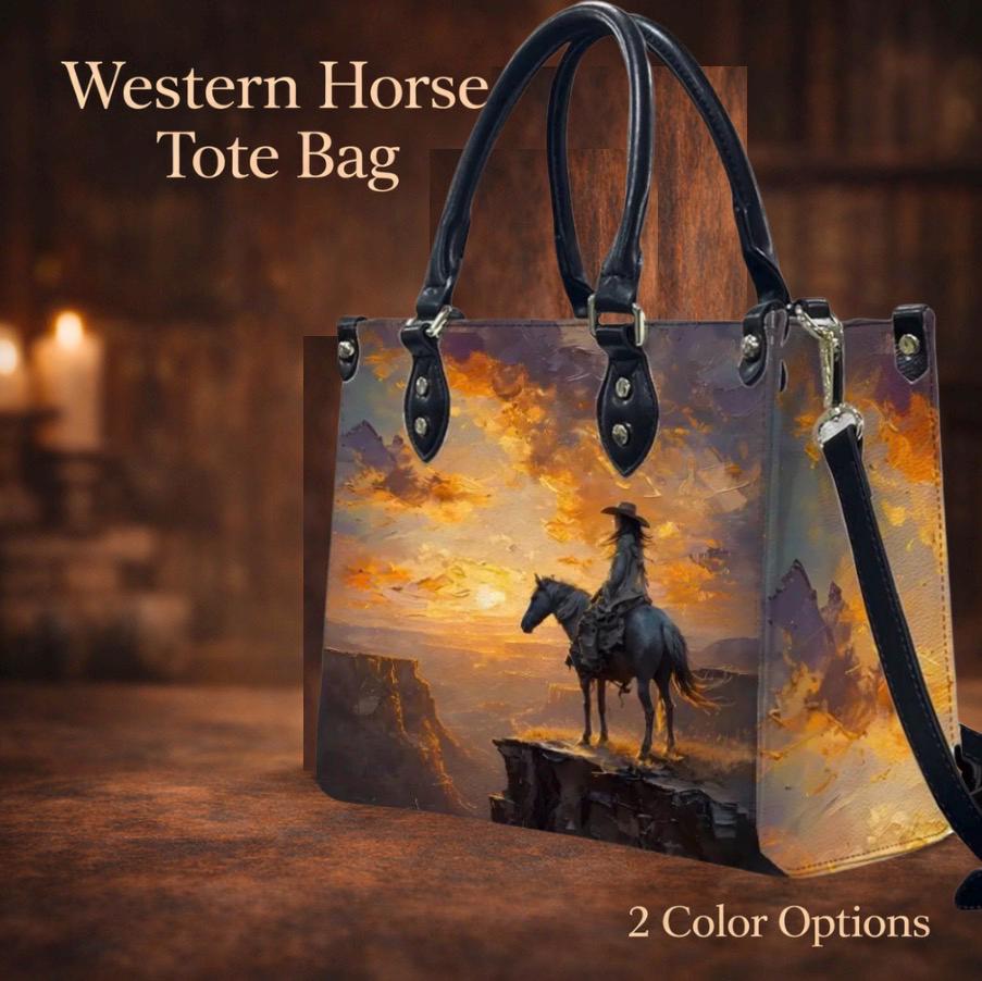 π Western Cowboy Leather Handbag β Horse Sunset Tote β PU Leather Crossbody Bag β Western Art Purse