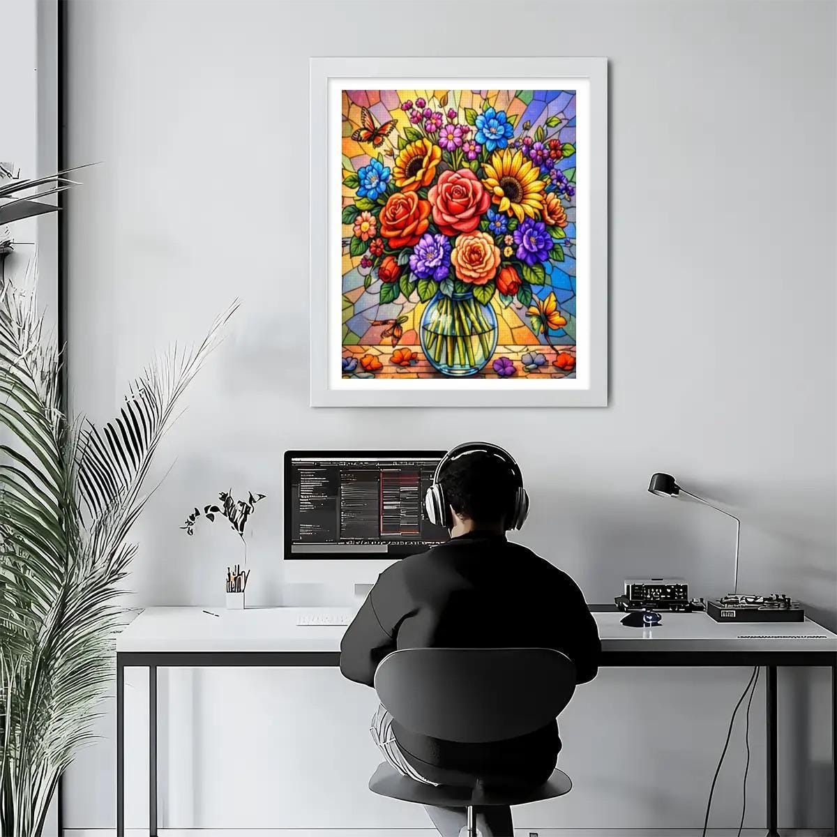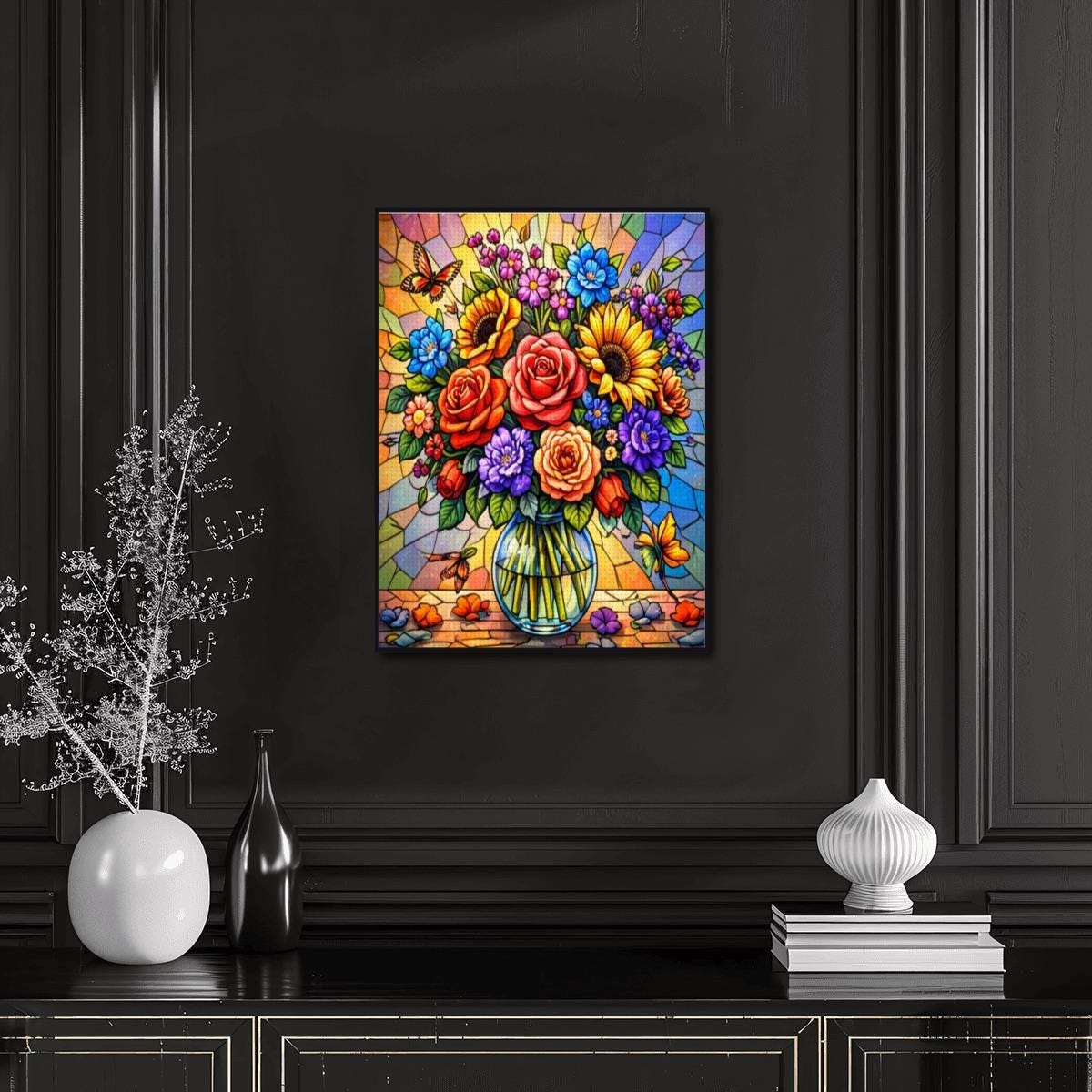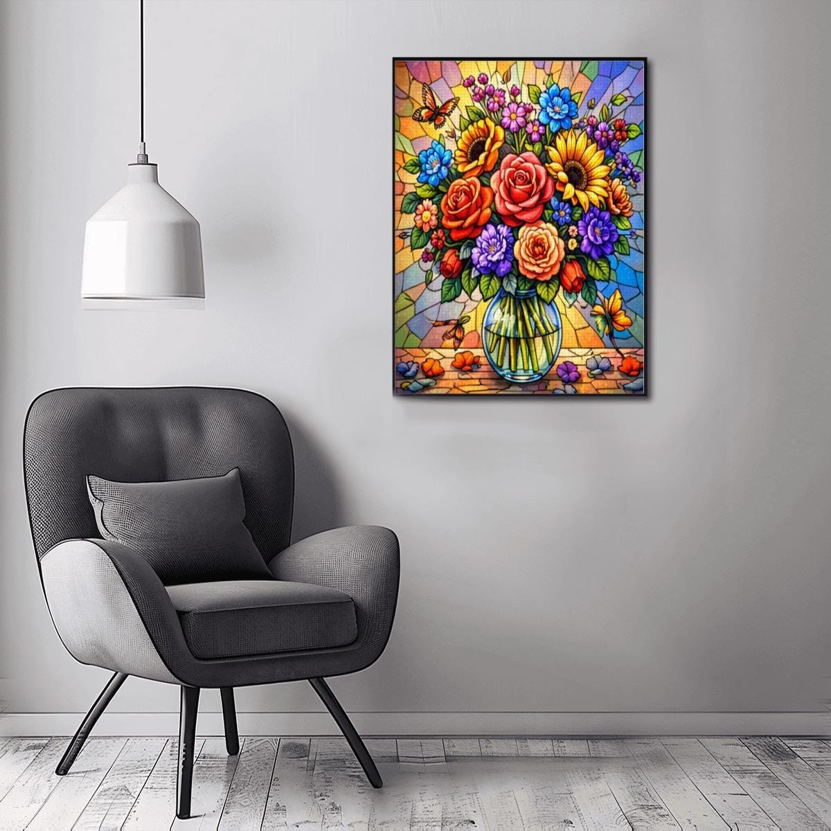 Stained Glass Floral Diamond Painting Kit – DIY Flower Wall Art