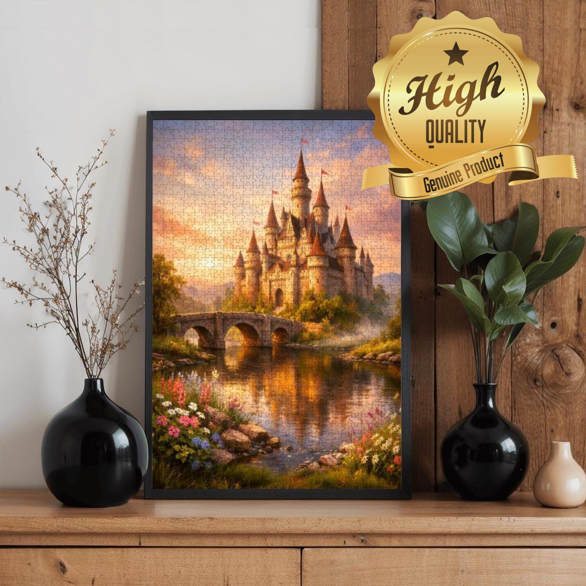 This stunning castle artwork features warm golden light, reflective water, and storybook charm, creating a peaceful and immersive puzzle experience. Designed for adults and families, this puzzle offers both a relaxing challenge and a beautiful finished piece that can be framed and displayed as wall art.
