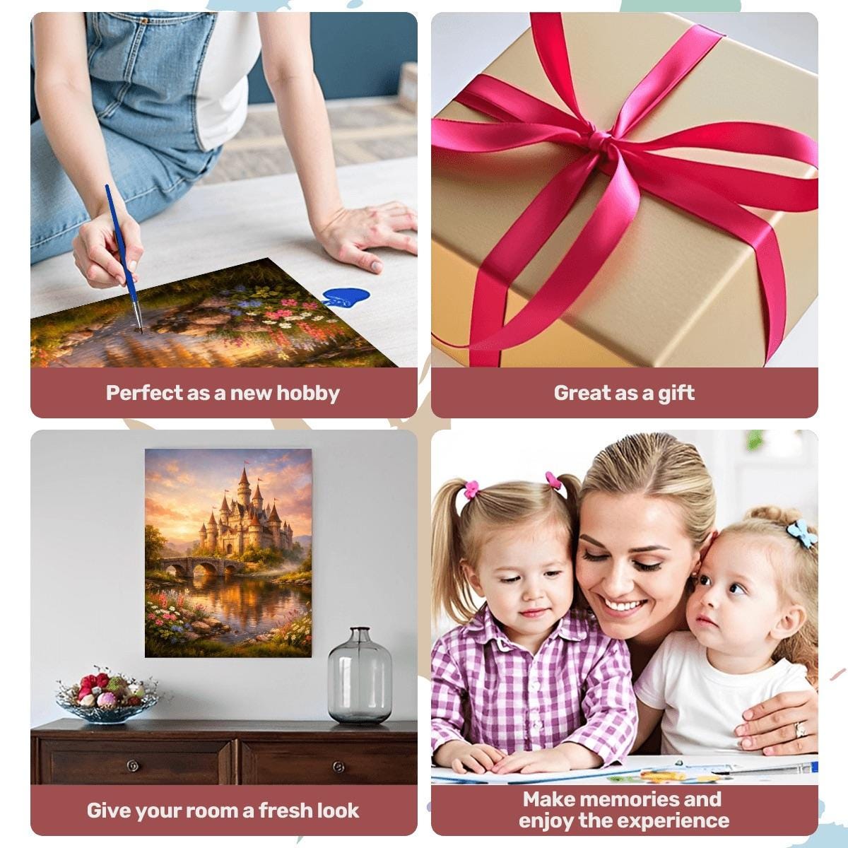 This relaxing DIY painting kit includes 48 vibrant acrylic paint colors and easy-to-follow numbered sections, making it perfect for beginners and experienced painters alike. Once finished, it becomes stunning handmade wall art that brings warmth, imagination, and storybook charm to any space.