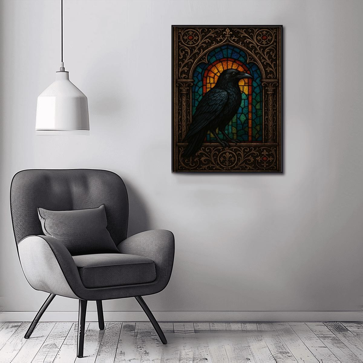 Stained Glass Raven Diamond Painting Kit – Gothic Crow Art