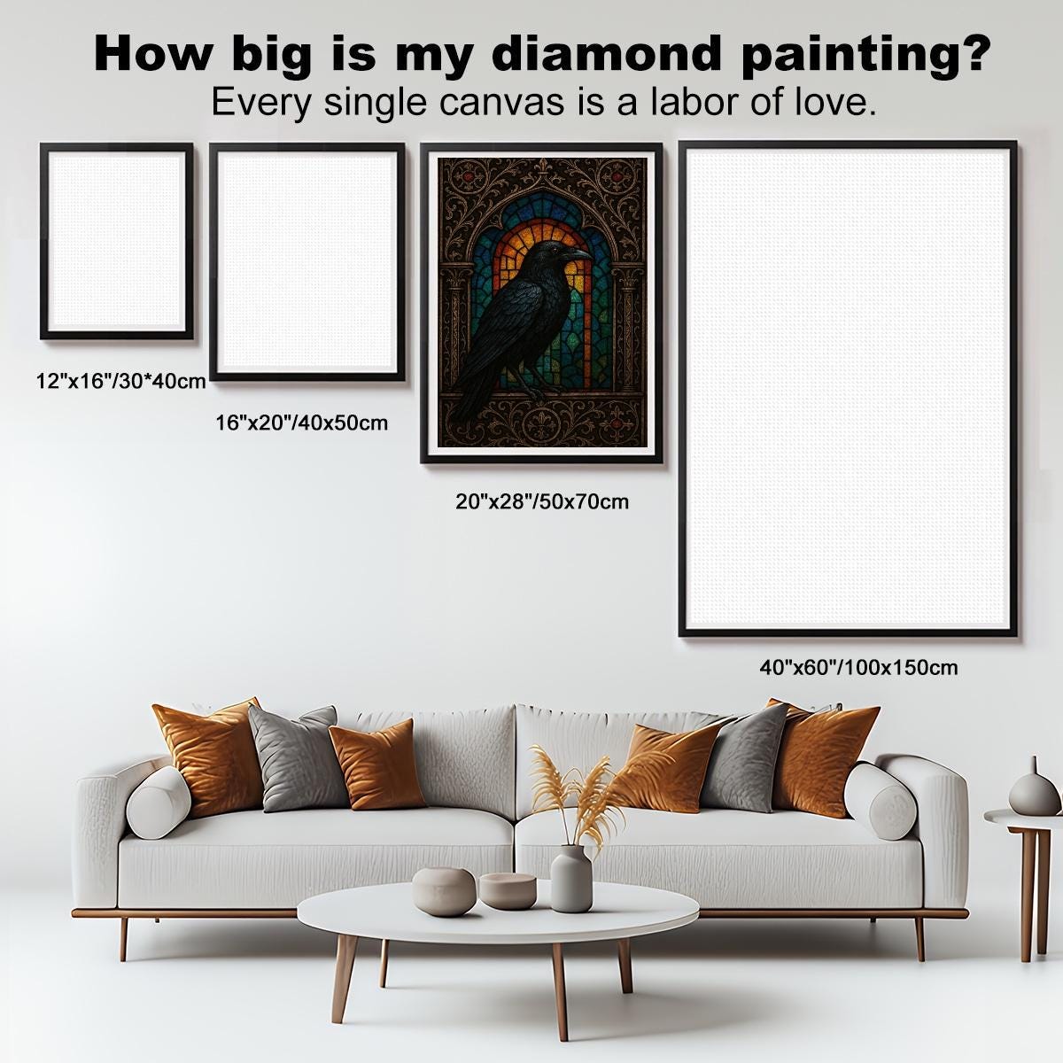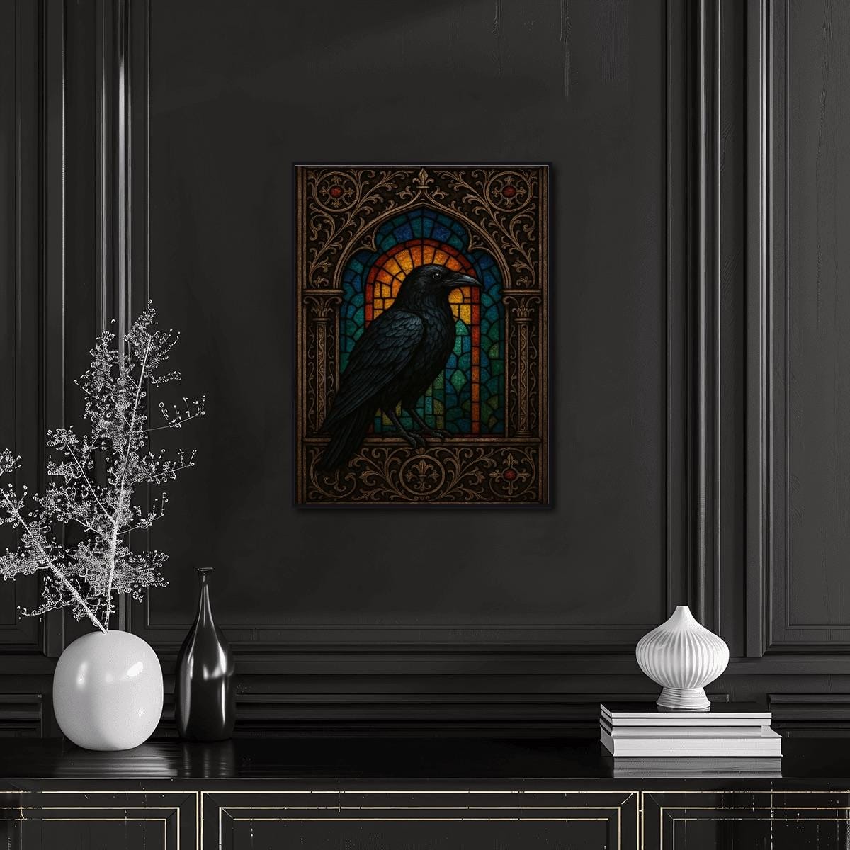 Finished artwork looks stunning in bedrooms, reading rooms, offices, gothic-inspired spaces, or as seasonal décor.