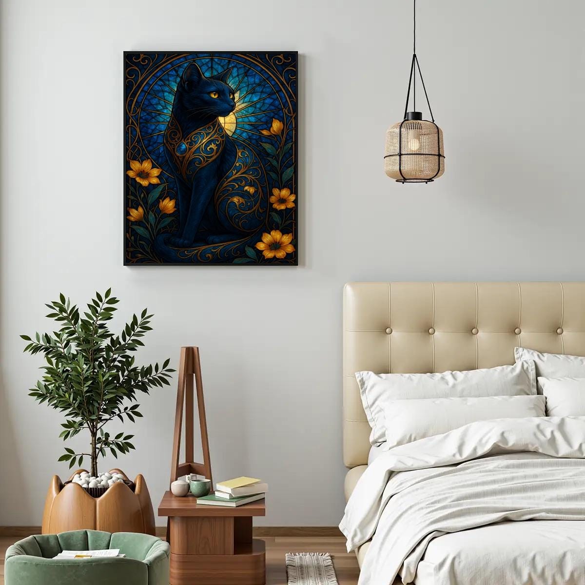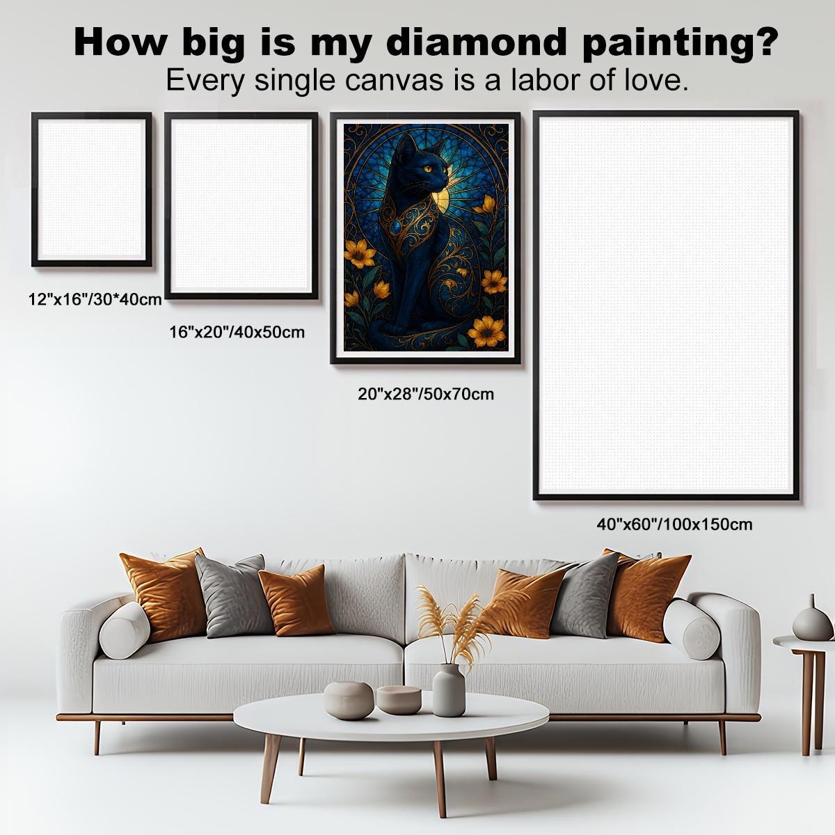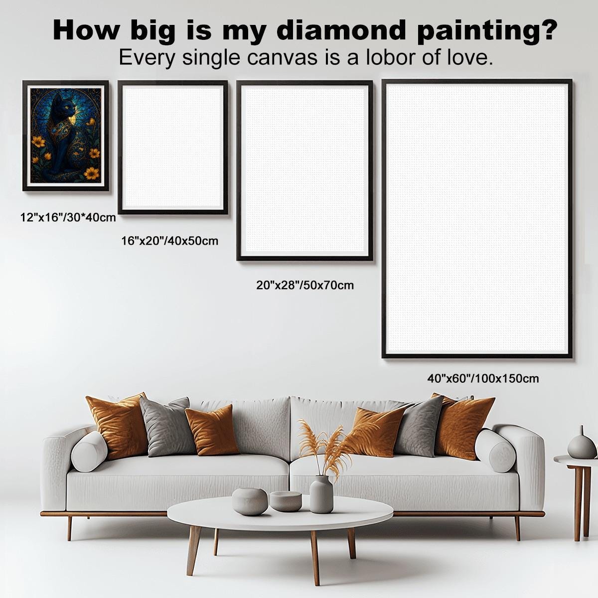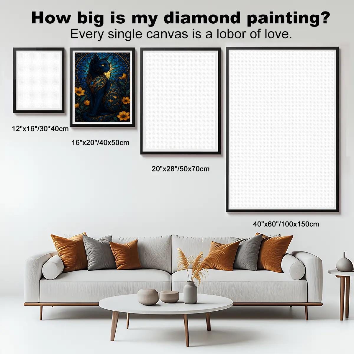 Finished artwork can be framed and displayed in living rooms, bedrooms, offices, or creative spaces.