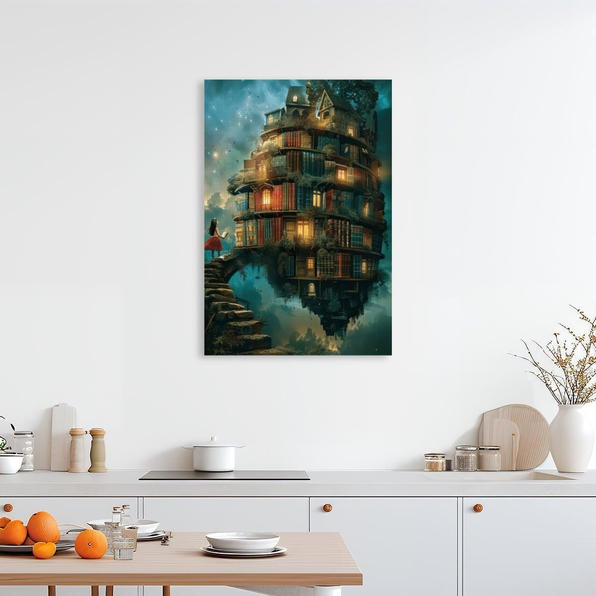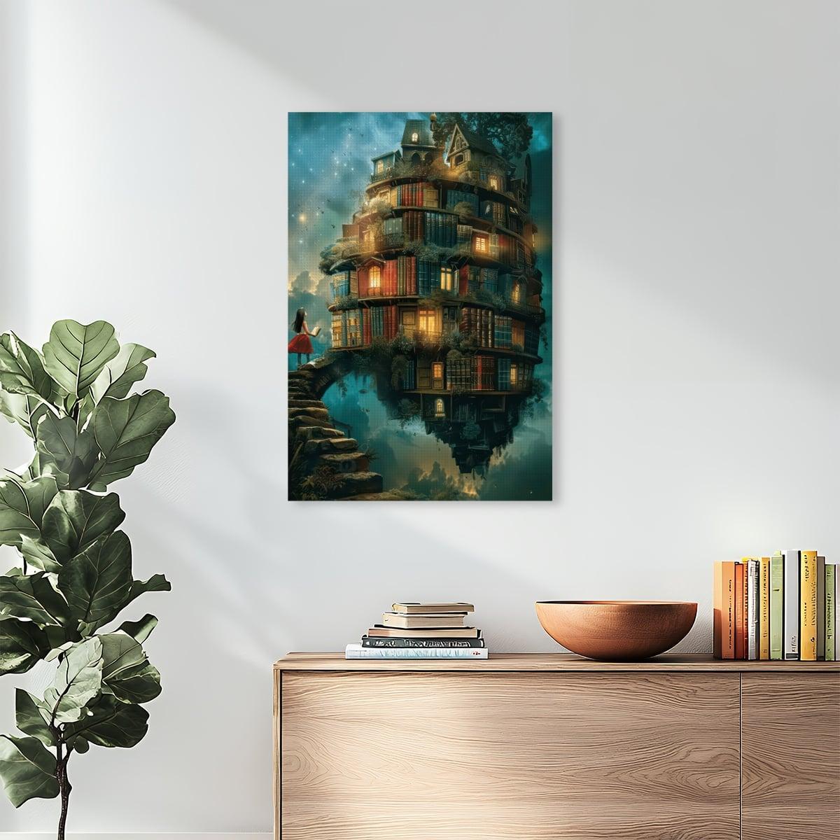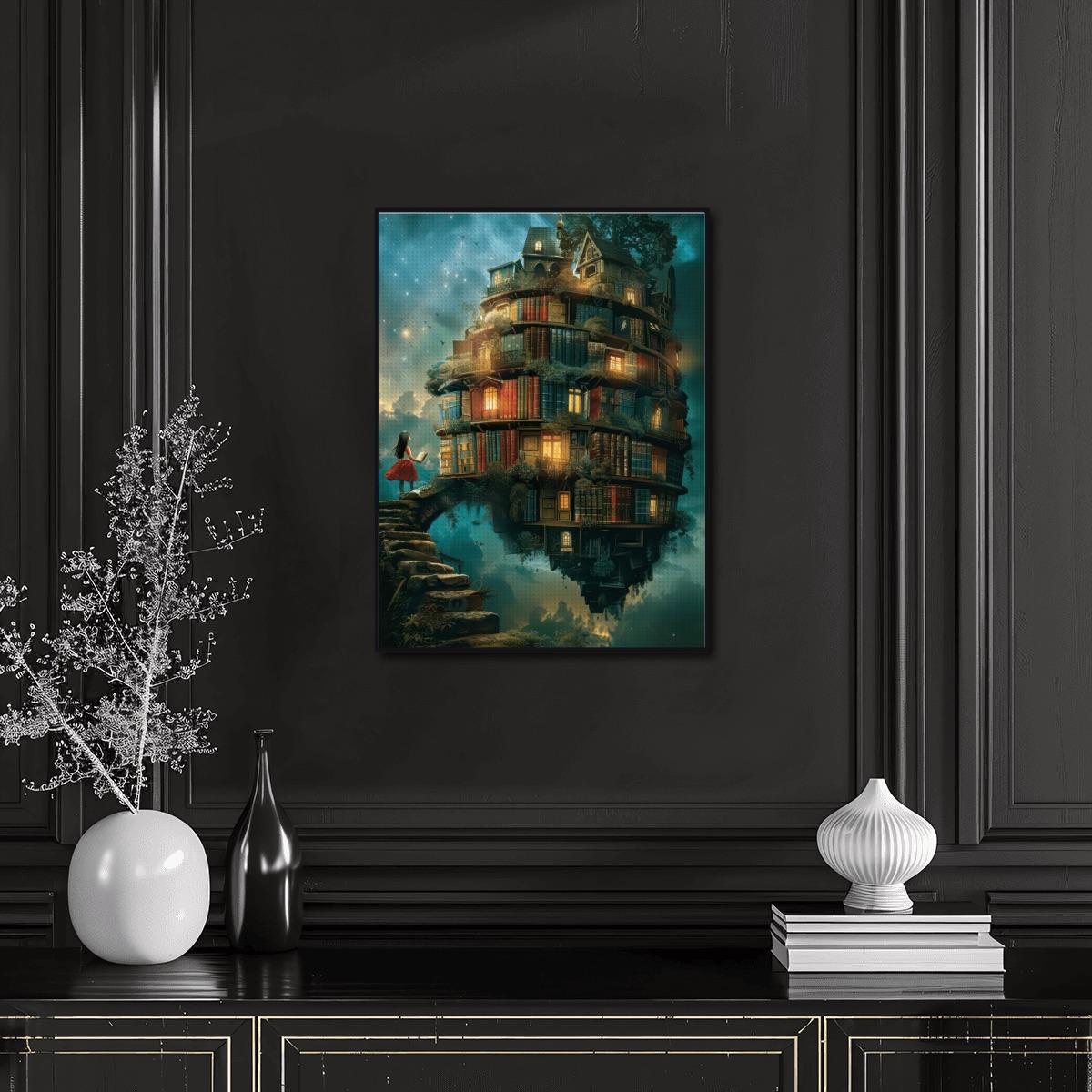 Fantasy Floating Library Diamond Painting Kit – Magical Book House Art