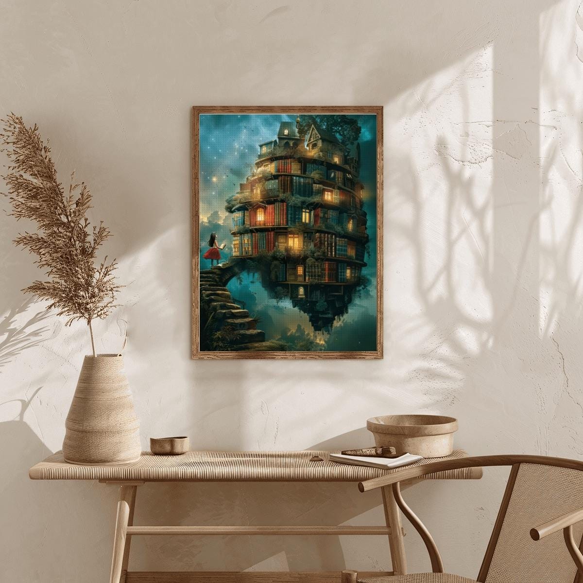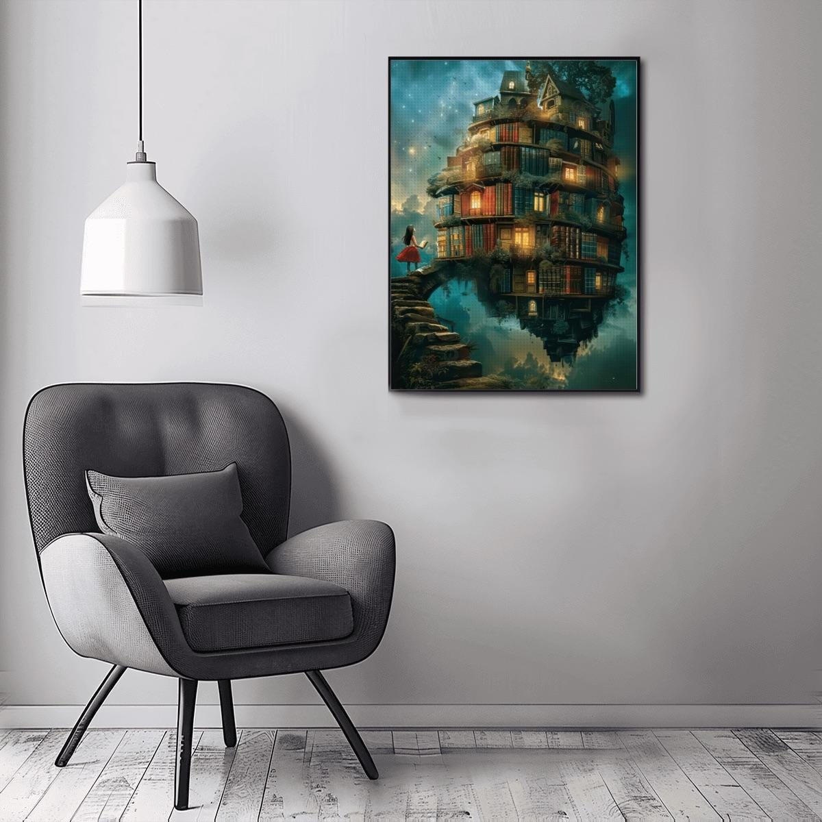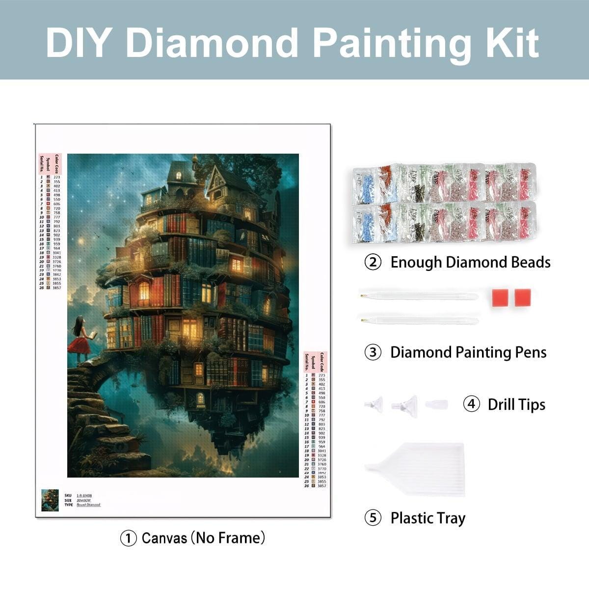 Fantasy Floating Library Diamond Painting Kit – Magical Book House Art