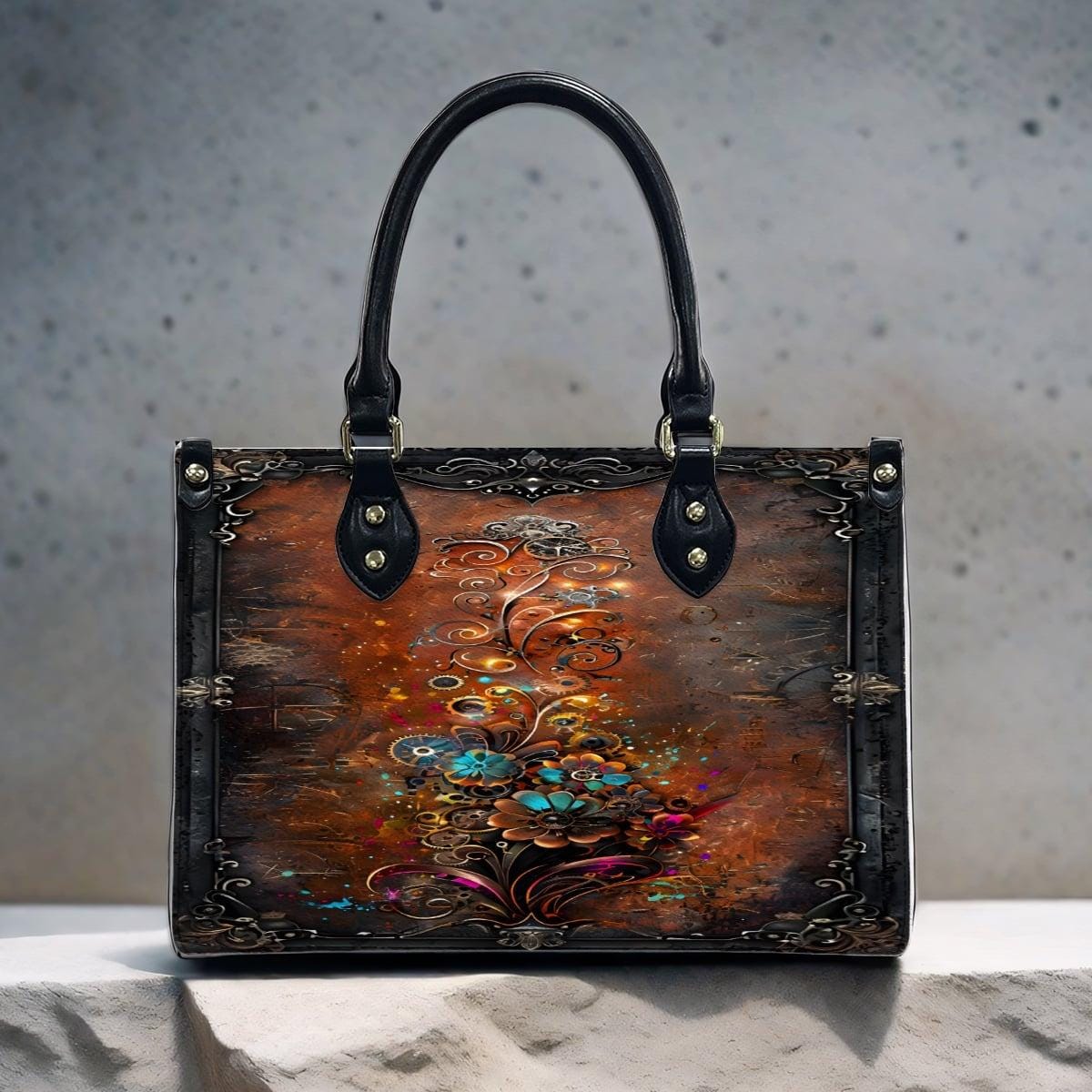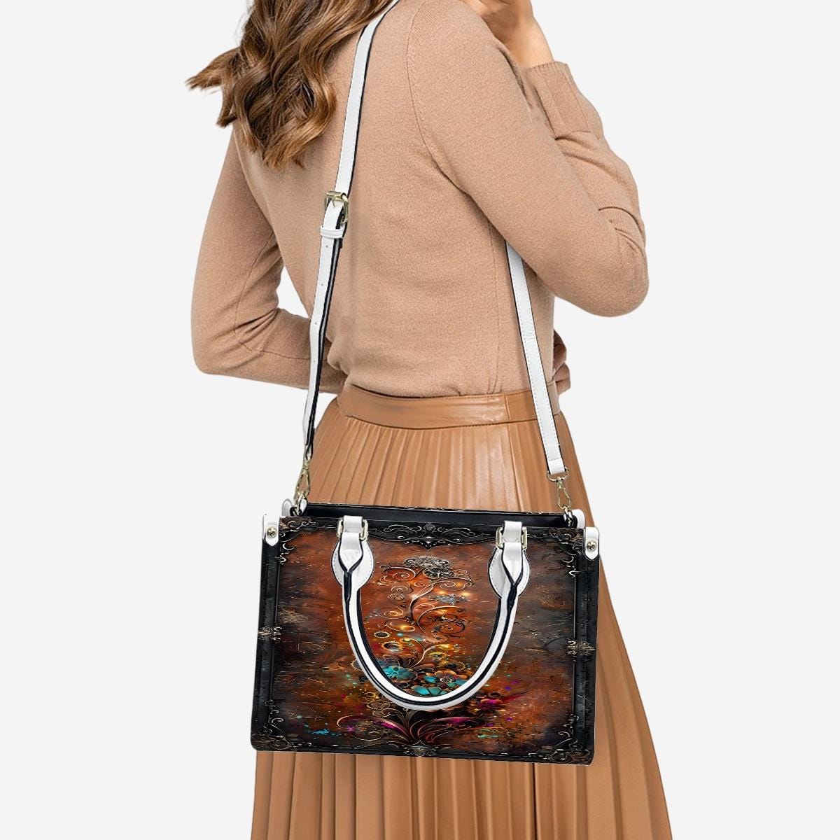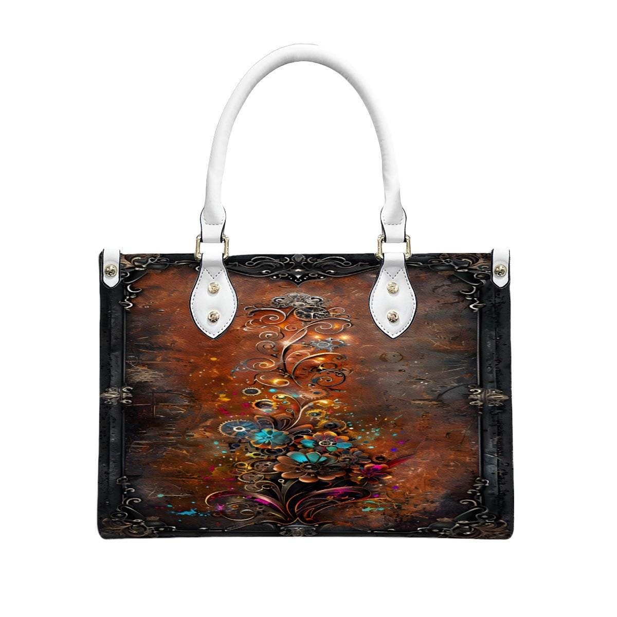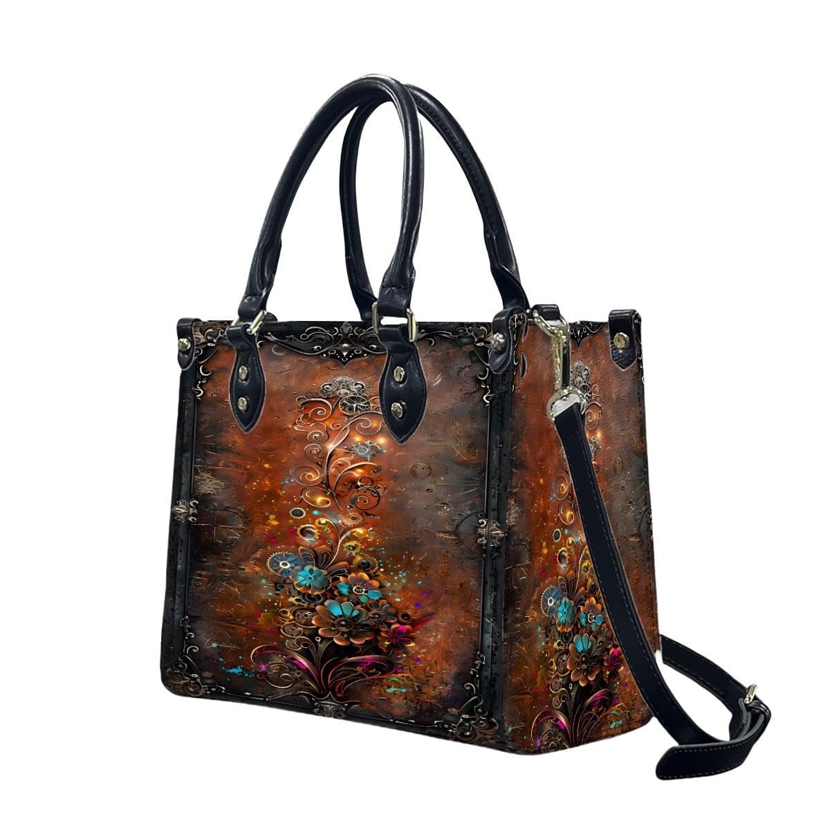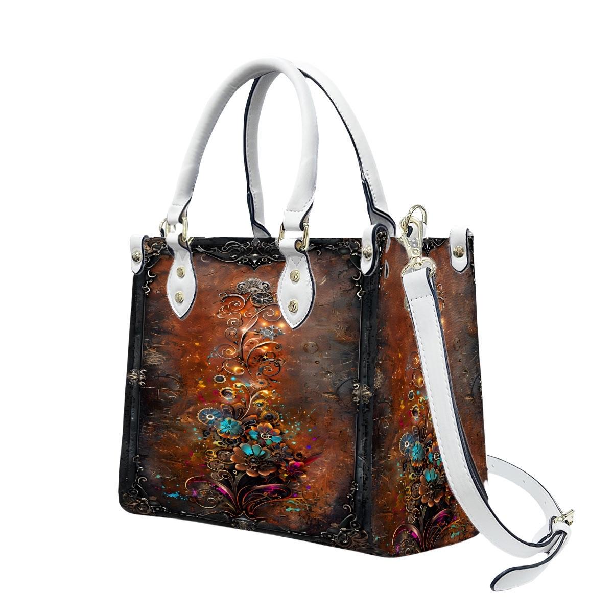 ๐ Steampunk Mechanical Floral Leather Handbag โ Vintage Industrial Tote โ PU Crossbody Bag โ SteadfastDay Design