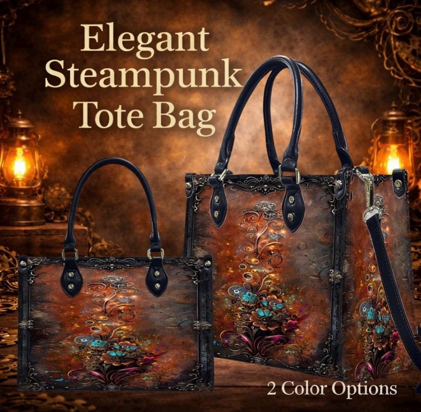 ๐ Steampunk Mechanical Floral Leather Handbag โ Vintage Industrial Tote โ PU Crossbody Bag โ SteadfastDay Design