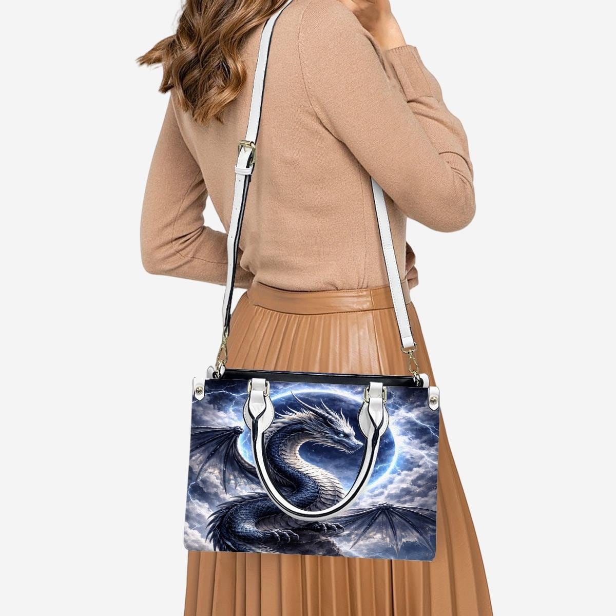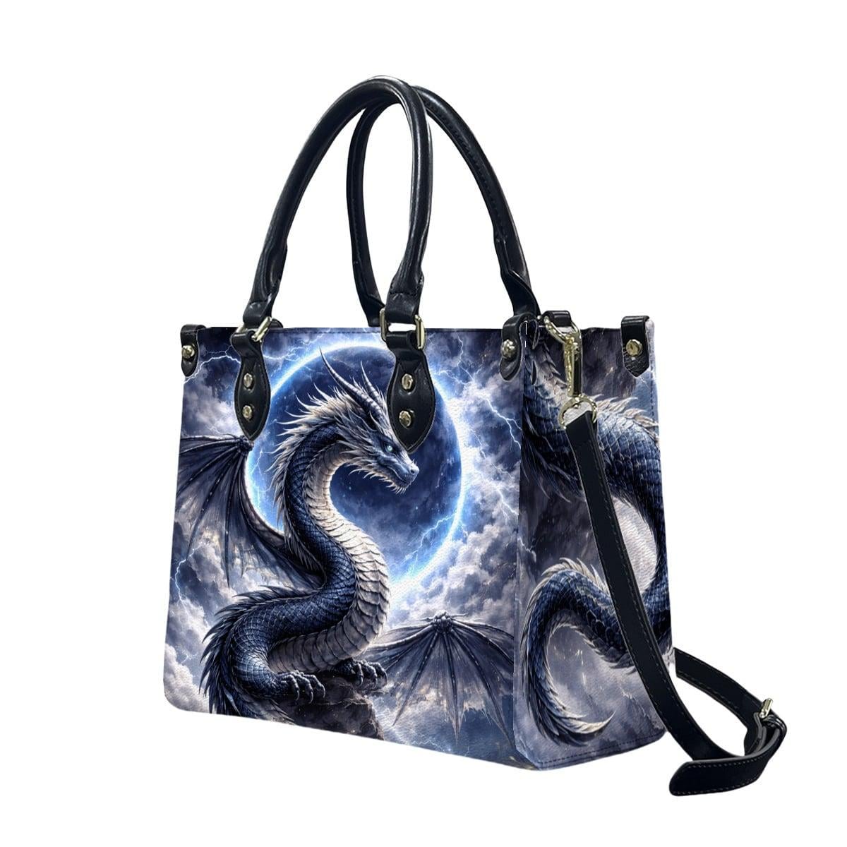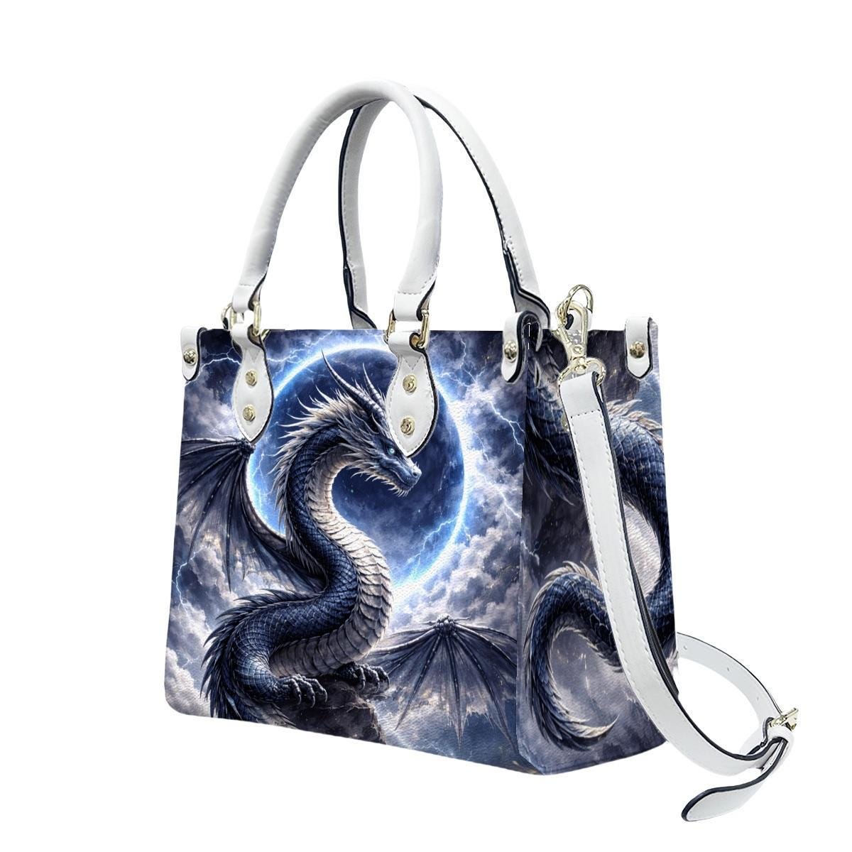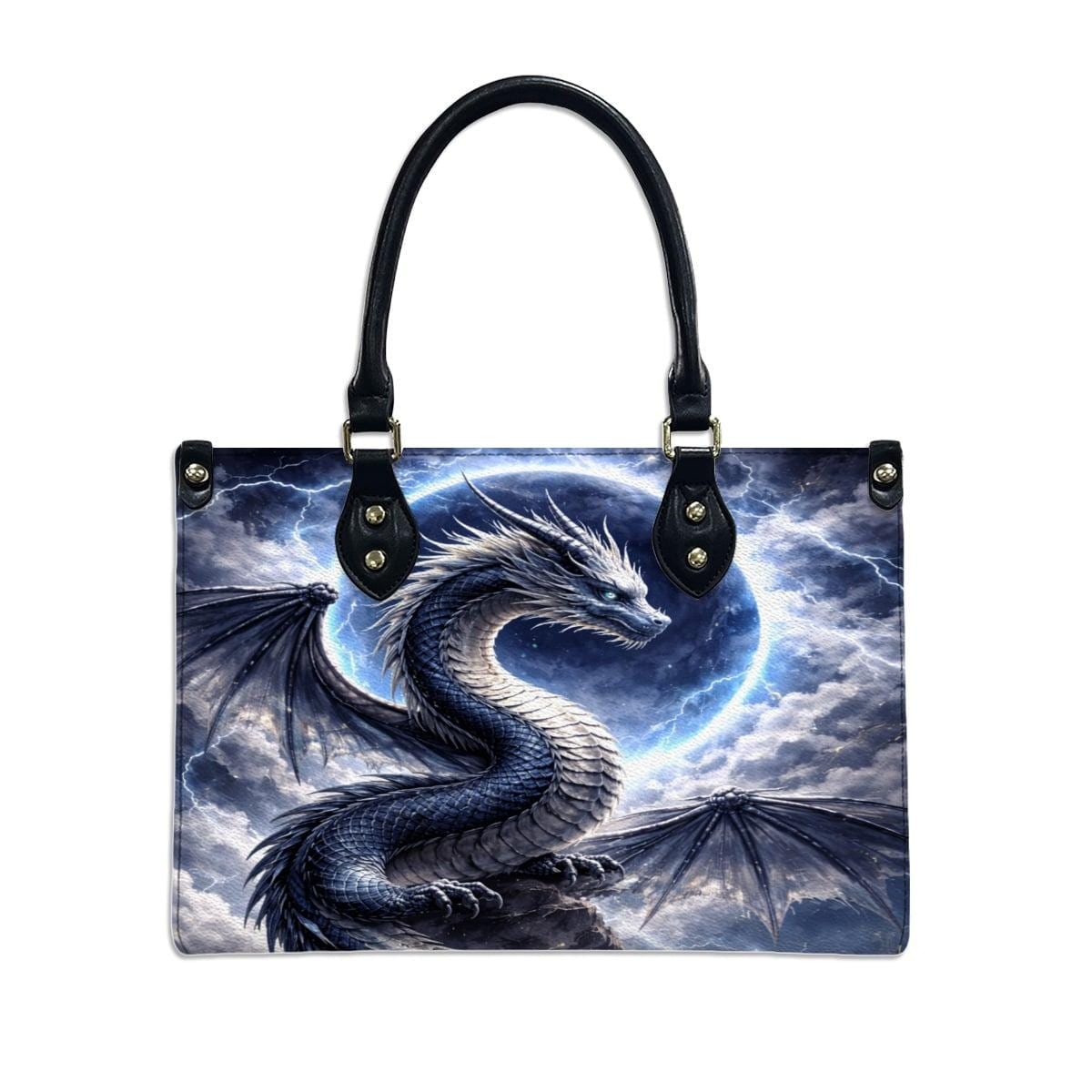 ❄️ Blue Lightning Dragon Handbag – Fantasy Storm Tote Bag – PU Leather Crossbody Purse – Mythical Ice Dragon Shoulder Bag for Women