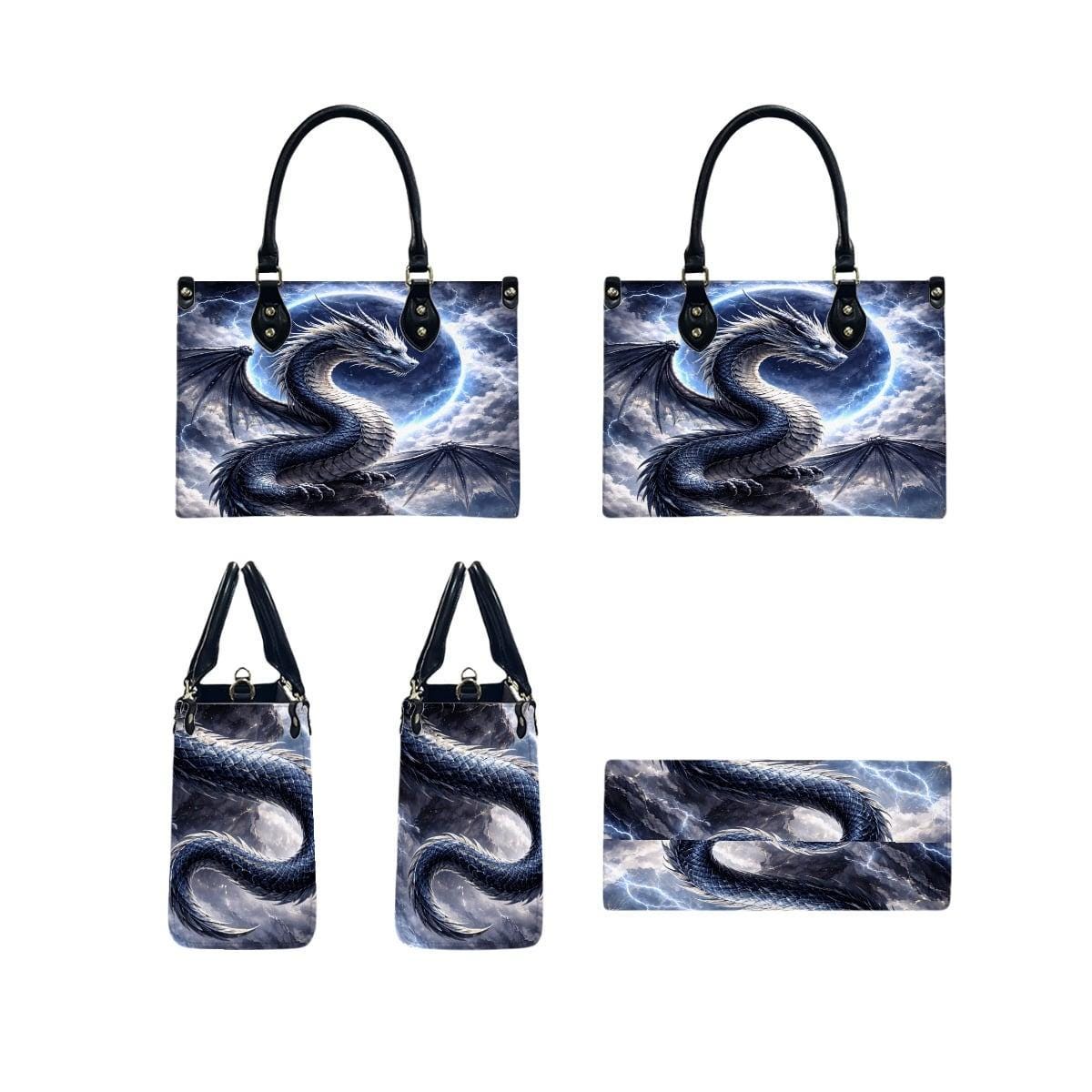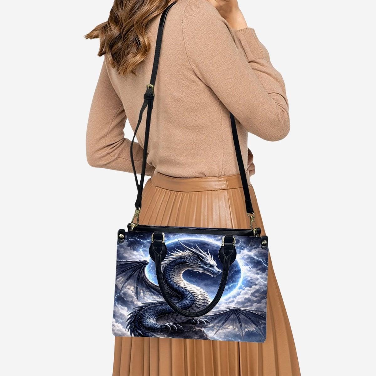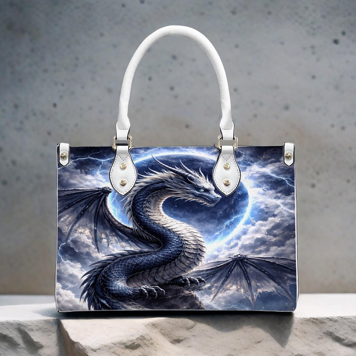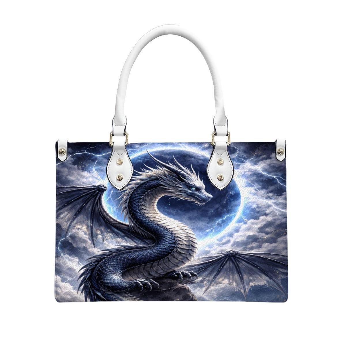 ❄️ Blue Lightning Dragon Handbag – Fantasy Storm Tote Bag – PU Leather Crossbody Purse – Mythical Ice Dragon Shoulder Bag for Women