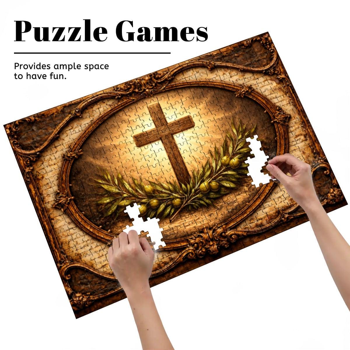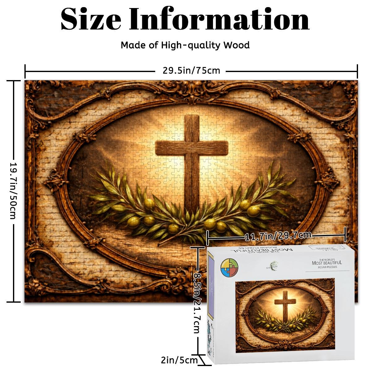 Christian Cross Wooden Puzzle 500 or 1000 Piece Jigsaw Puzzle Cross and Olive Branch Faith Puzzle Religious Gift Christian Home Decor