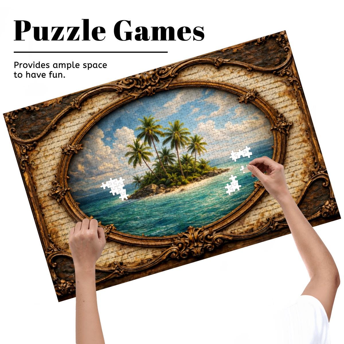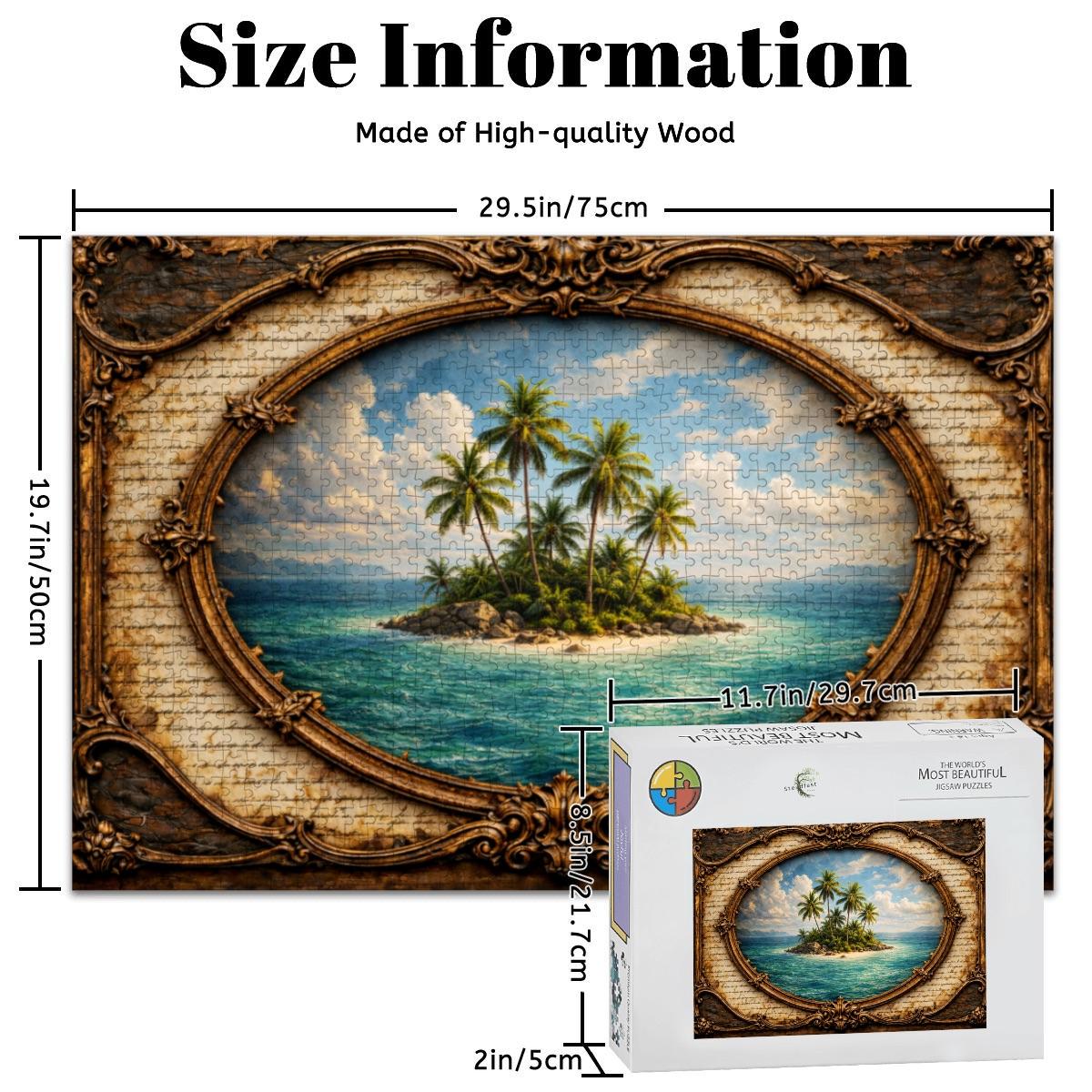 Tropical Island Wooden Puzzle 500 or 1000 Piece Jigsaw Puzzle Palm Tree Island Ocean Puzzle Beach Paradise Puzzle Adult Puzzle Gift