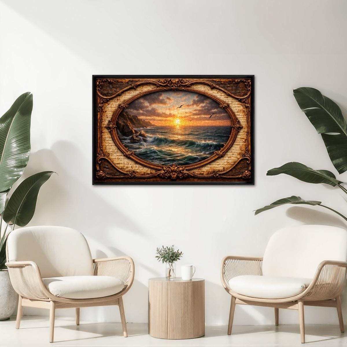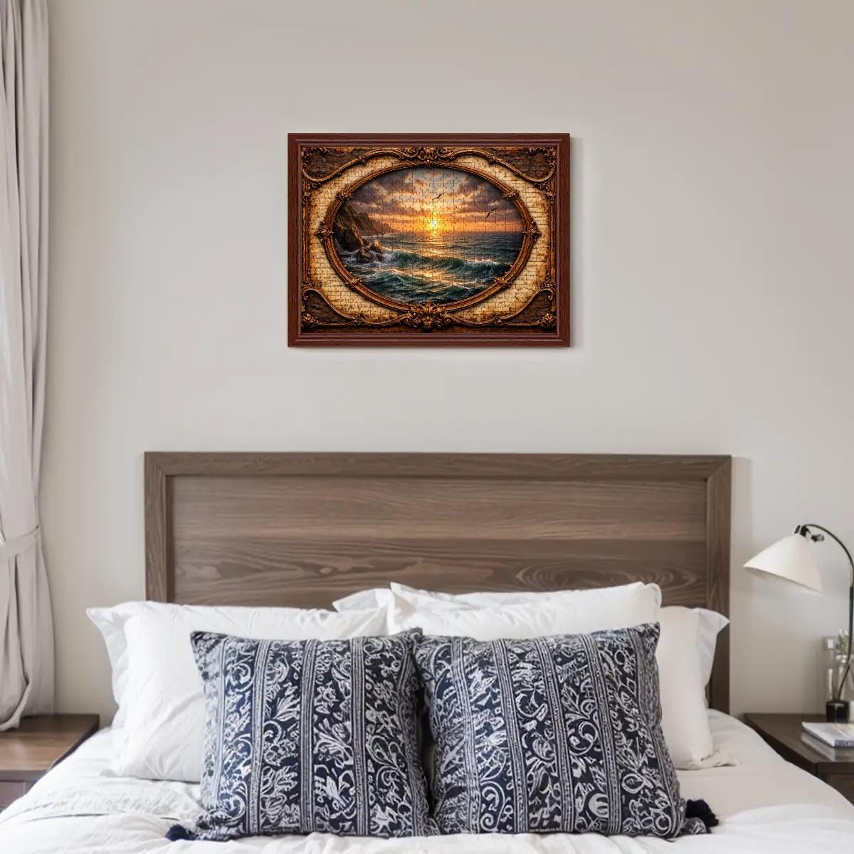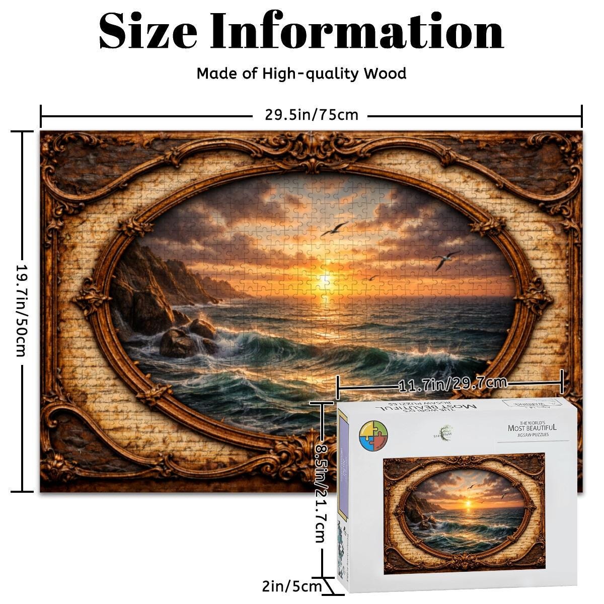 Ocean Sunset Wooden Puzzle 500 or 1000 Piece Jigsaw Puzzle Coastal Nature Puzzle Vintage Frame Artwork Adult Puzzle Gift