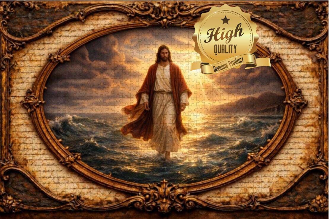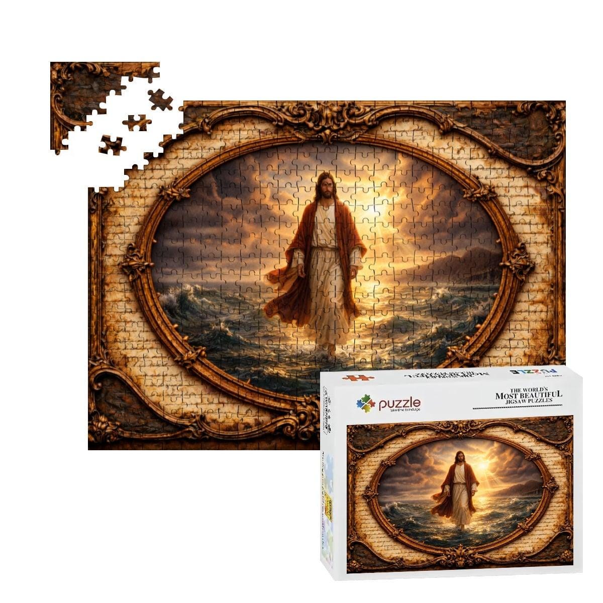Jesus Walking on Water Wooden Puzzle 500 or 1000 Piece Christian Jigsaw Puzzle Faith Puzzle Religious Art Puzzle Christian Gift