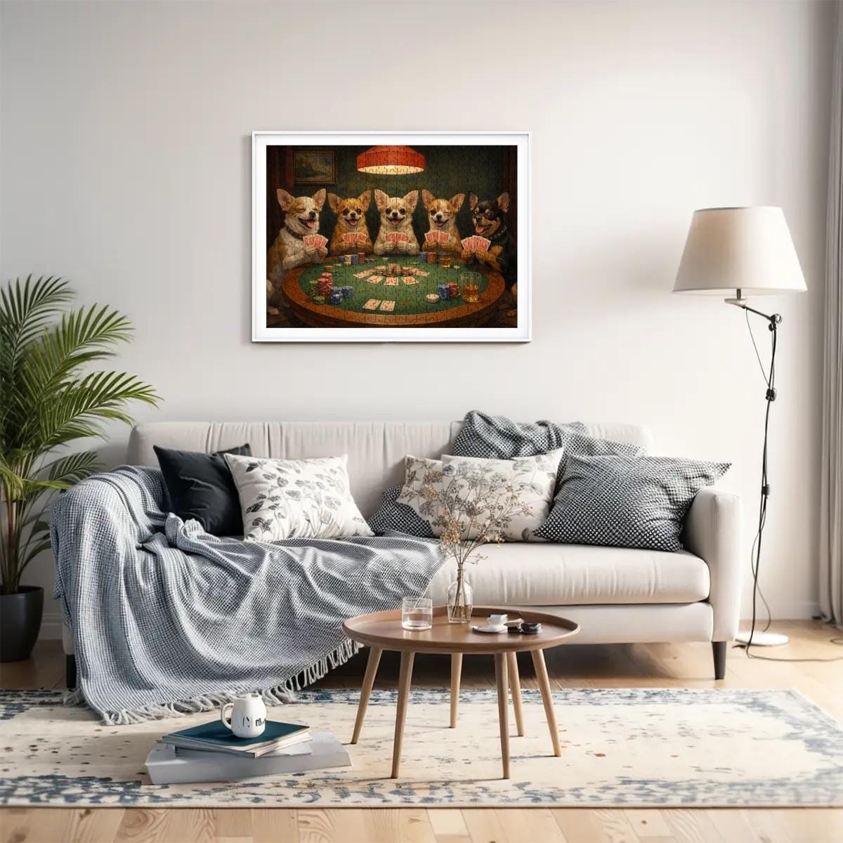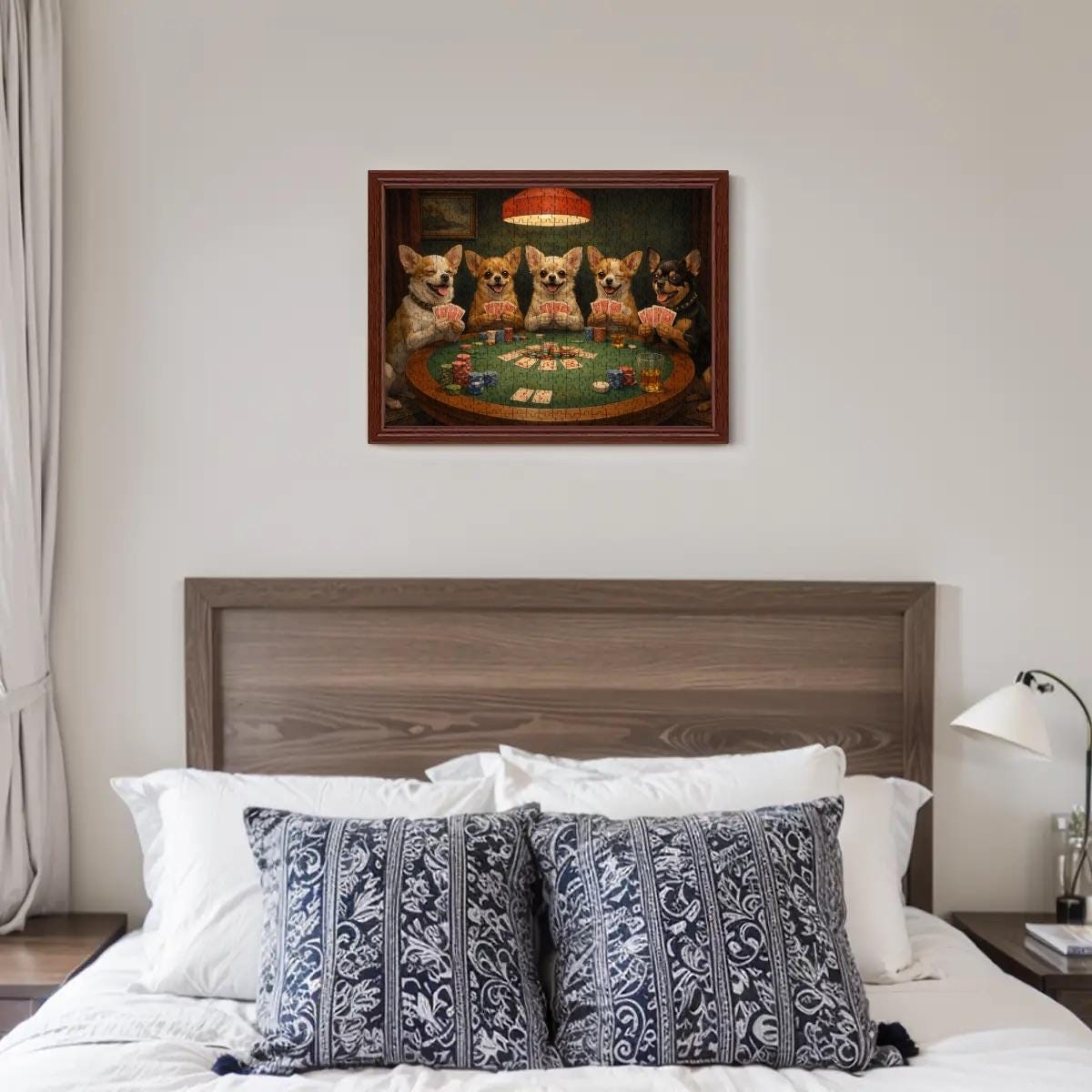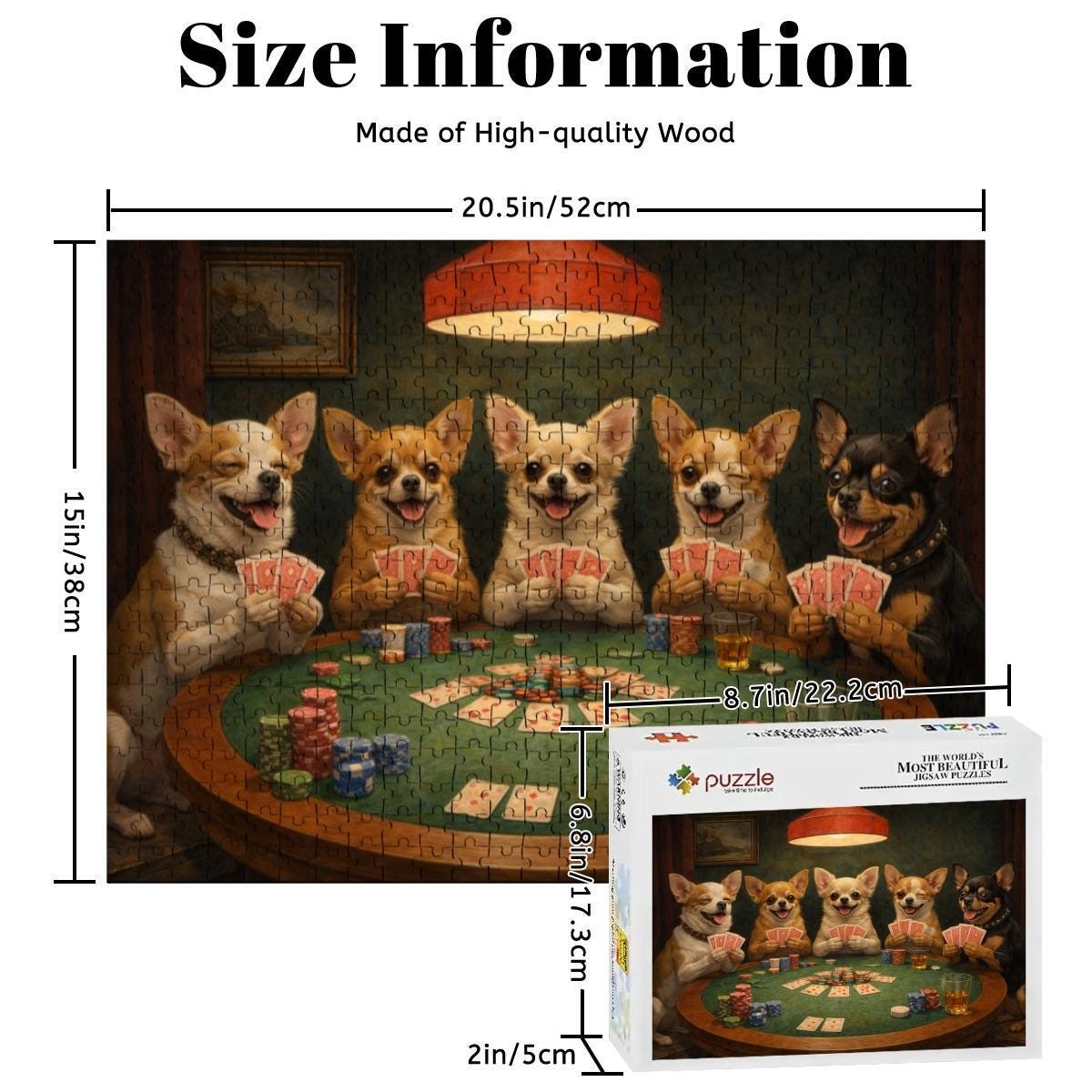Get ready for a hilarious game night with this Chihuahua Poker Puzzle featuring a group of adorable dogs gathered around a poker table.