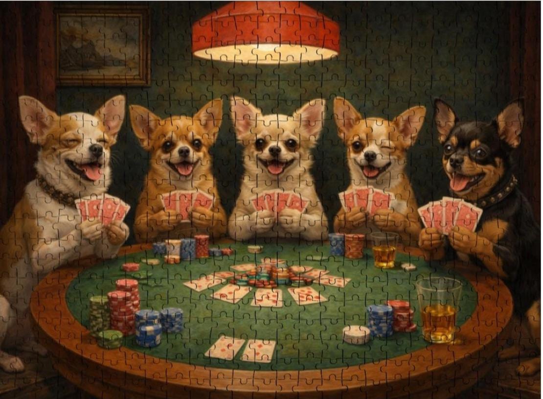 The rich colors, detailed expressions, and entertaining scene make this puzzle both fun and satisfying to complete. It’s the perfect puzzle for dog lovers, game night fans, and anyone who enjoys humorous artwork.