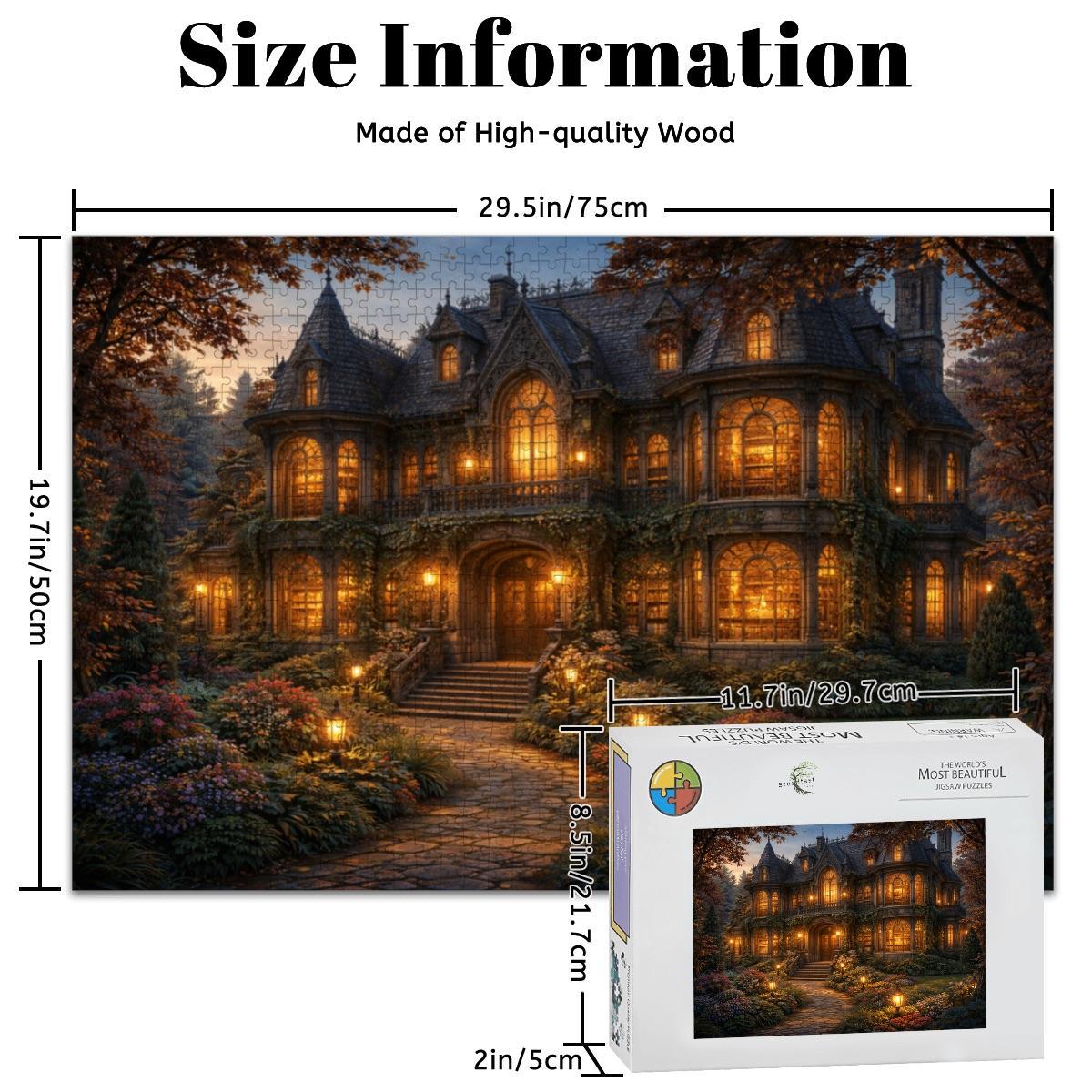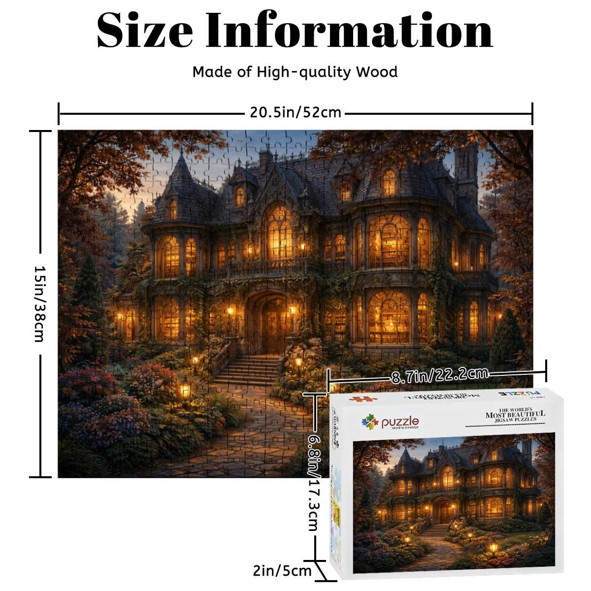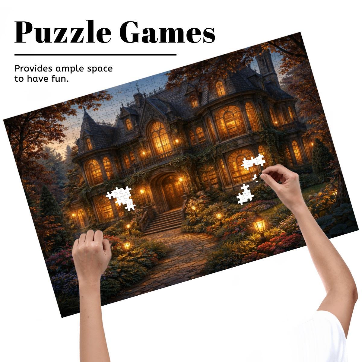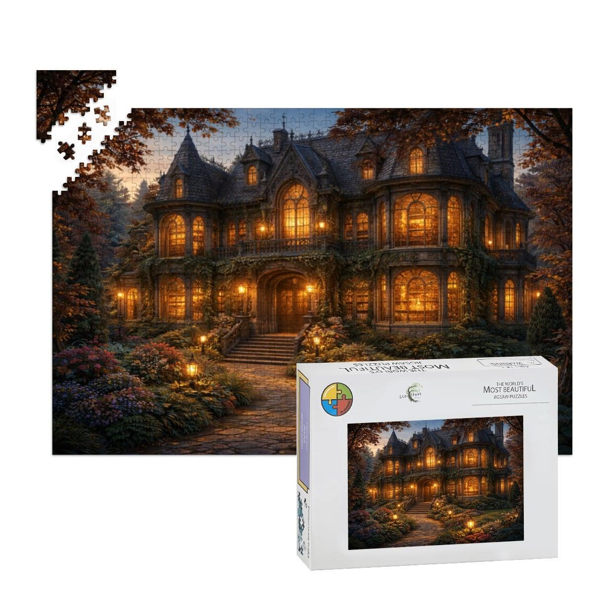 Cozy Cottage Mansion Puzzle, Gothic Cottage Puzzle, 500 or 1000 Piece Jigsaw Puzzle, Warm Light House Puzzle, Cottagecore Puzzle Gift