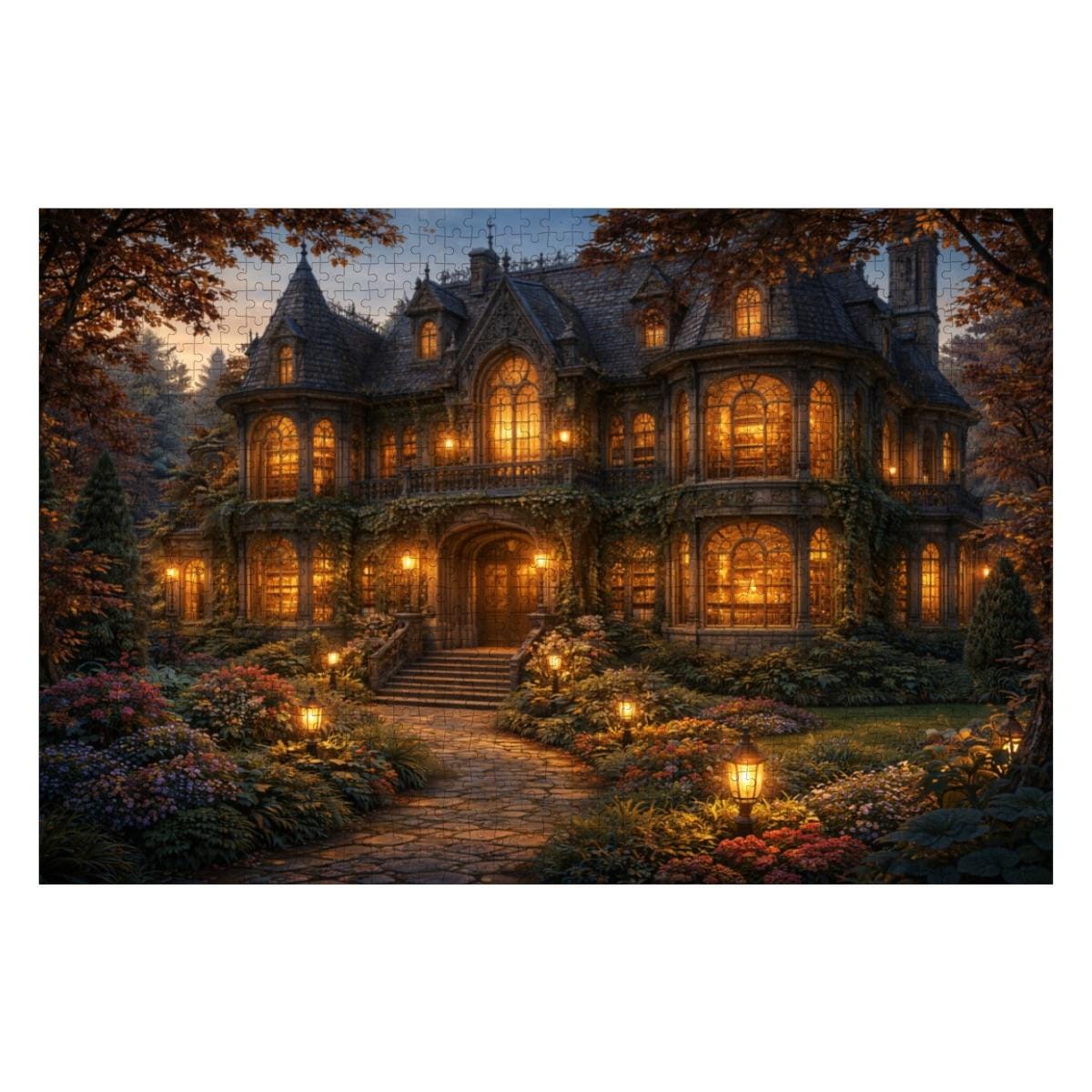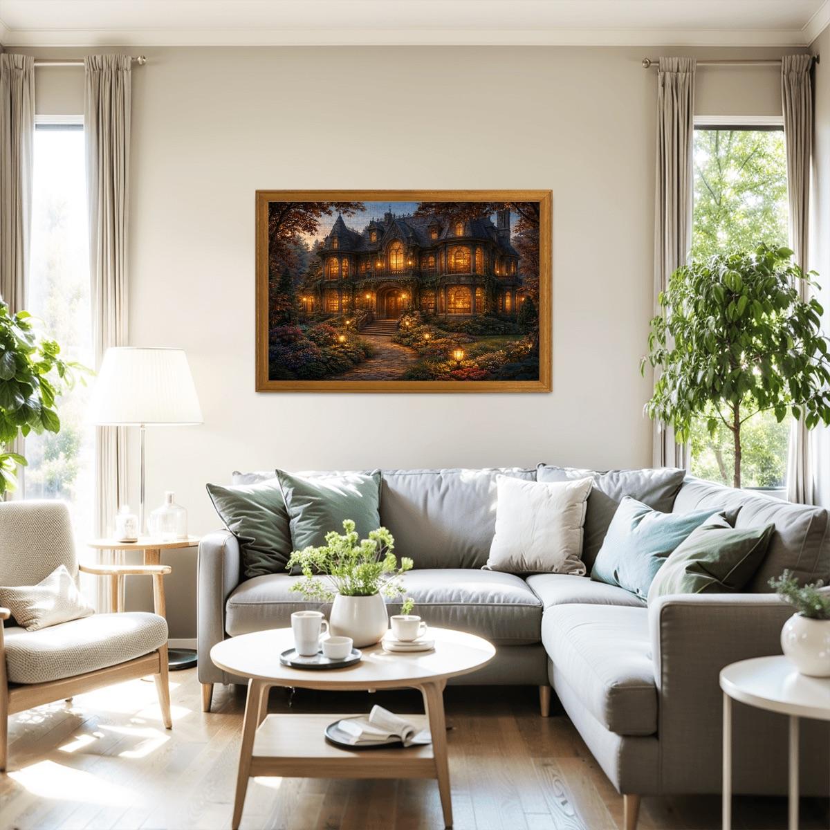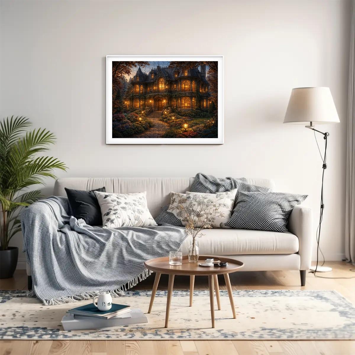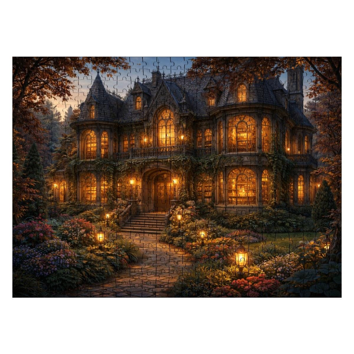 Cozy Cottage Mansion Puzzle, Gothic Cottage Puzzle, 500 or 1000 Piece Jigsaw Puzzle, Warm Light House Puzzle, Cottagecore Puzzle Gift