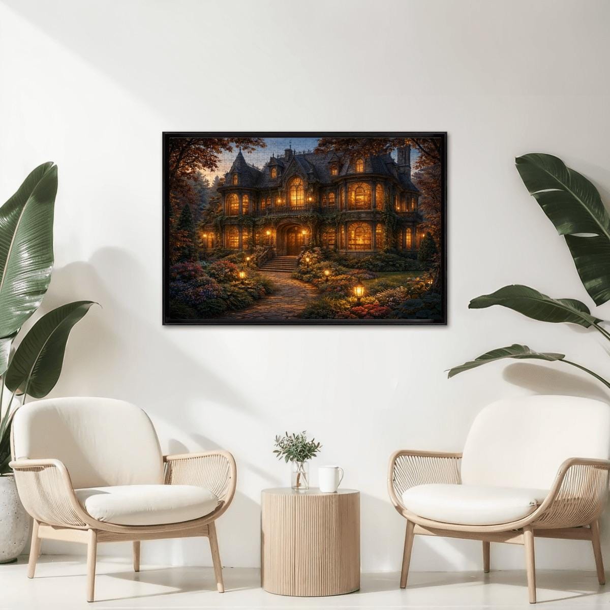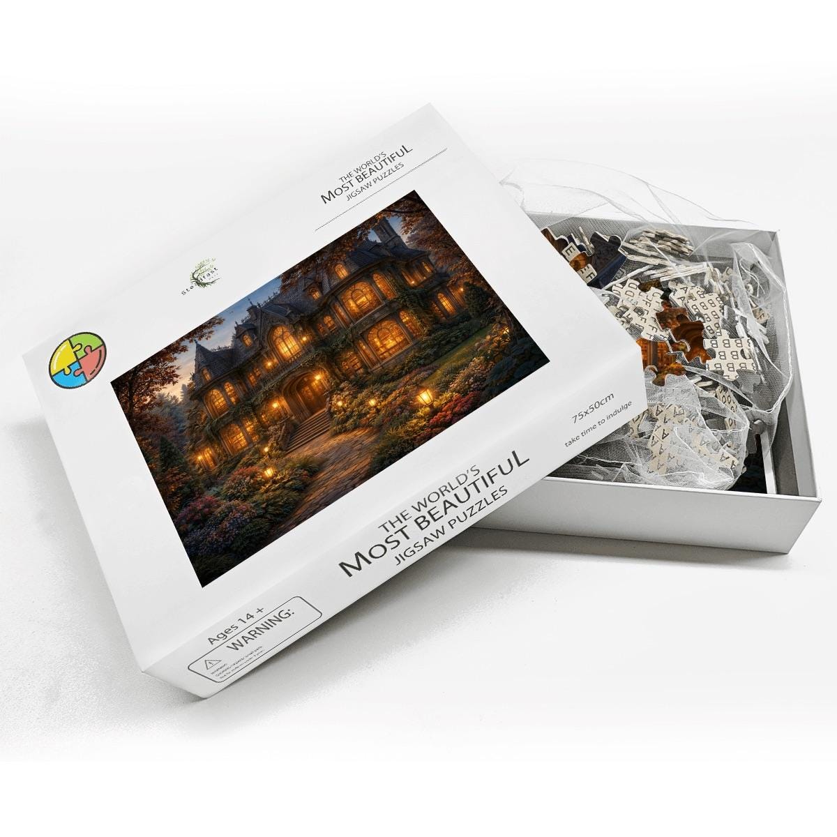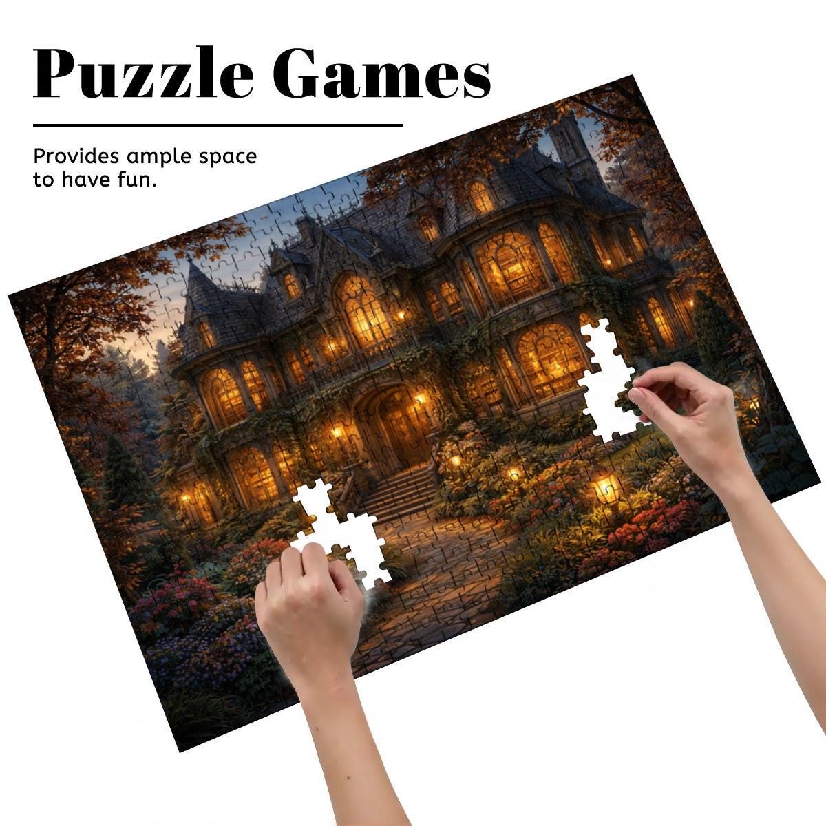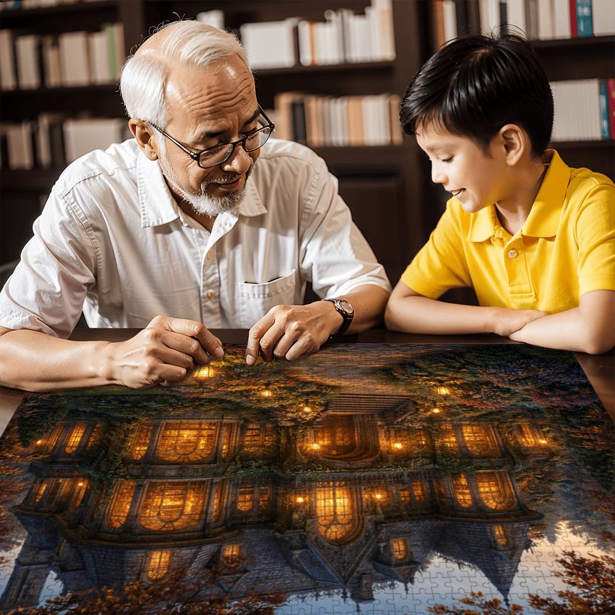 Cozy Cottage Mansion Puzzle, Gothic Cottage Puzzle, 500 or 1000 Piece Jigsaw Puzzle, Warm Light House Puzzle, Cottagecore Puzzle Gift