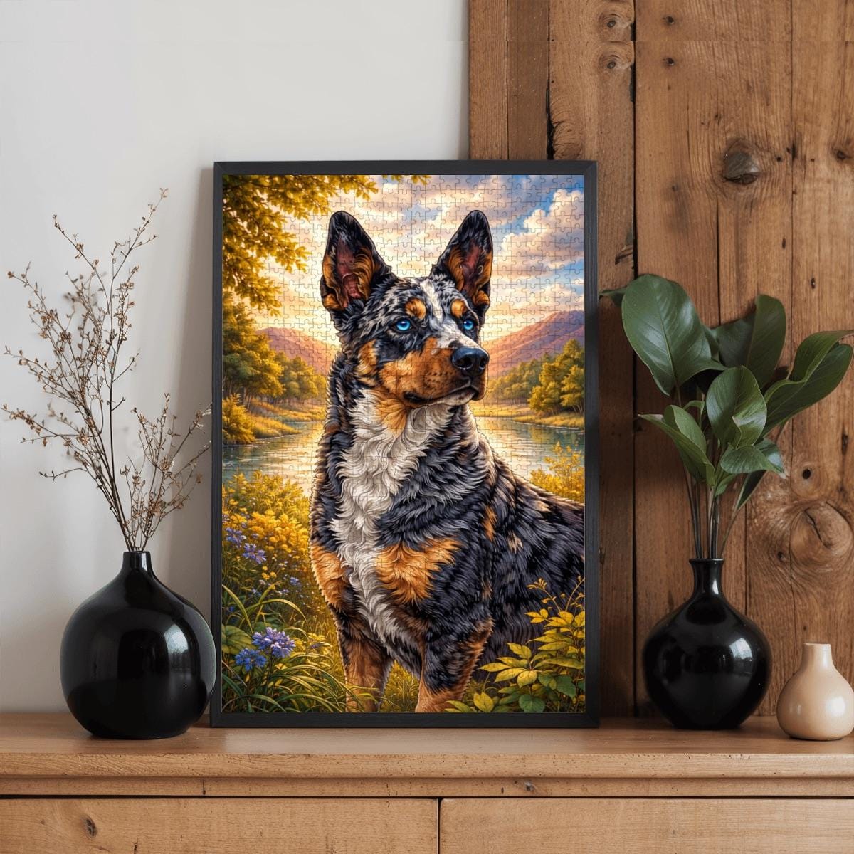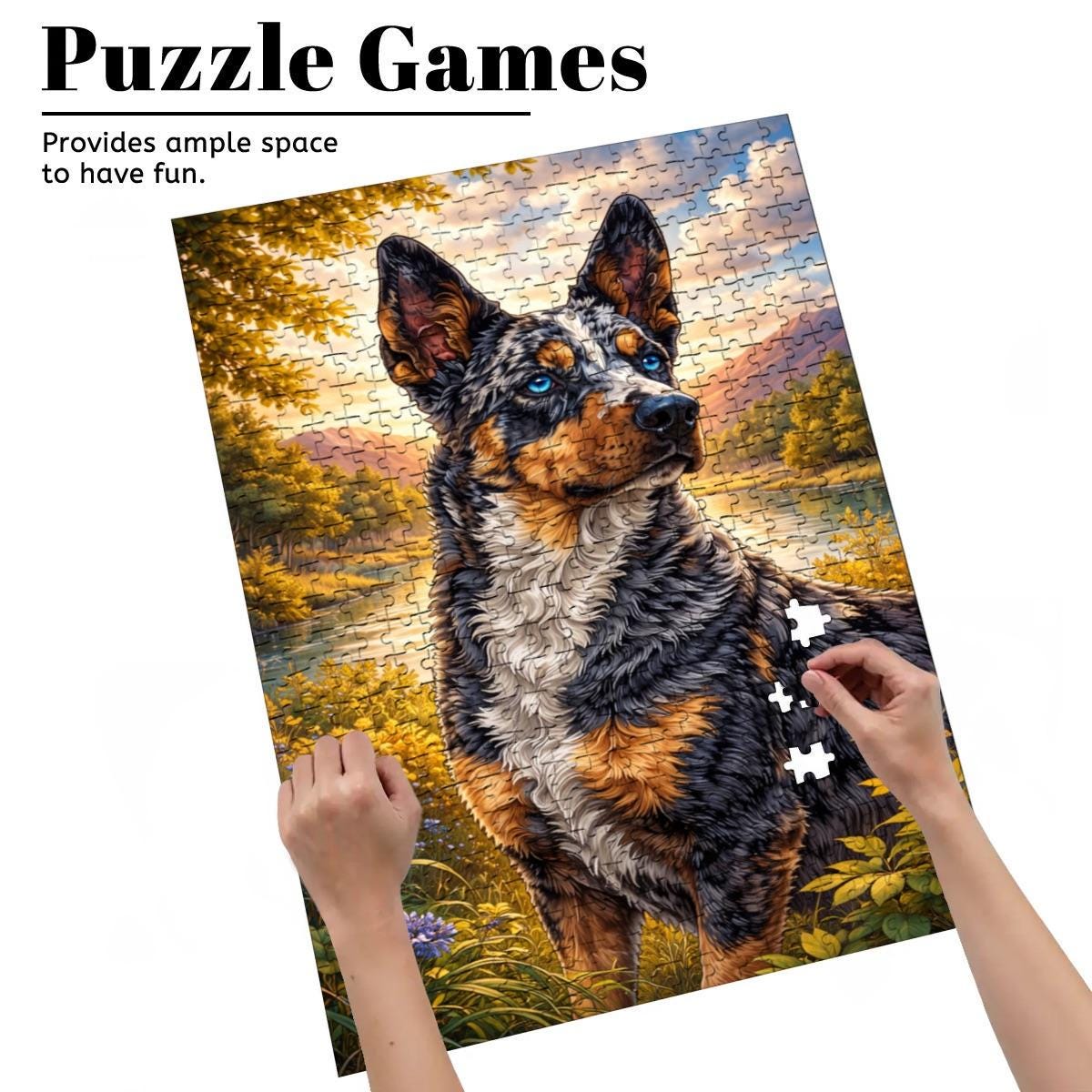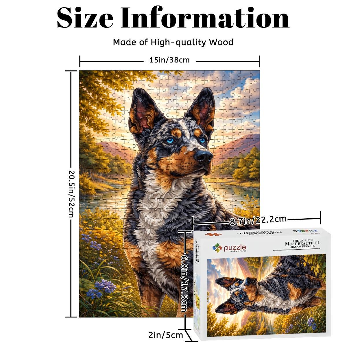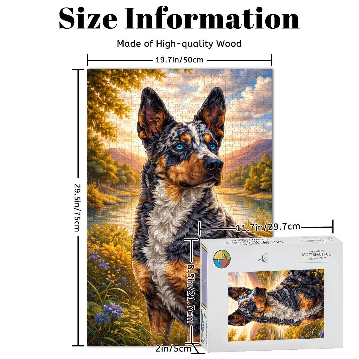 Celebrate the loyalty and charm of the beloved Australian Cattle Dog / Blue Heeler with this stunning wooden jigsaw puzzle featuring vibrant artwork and rich detail. Perfect for dog lovers, puzzle enthusiasts, and Blue Heeler owners alike.